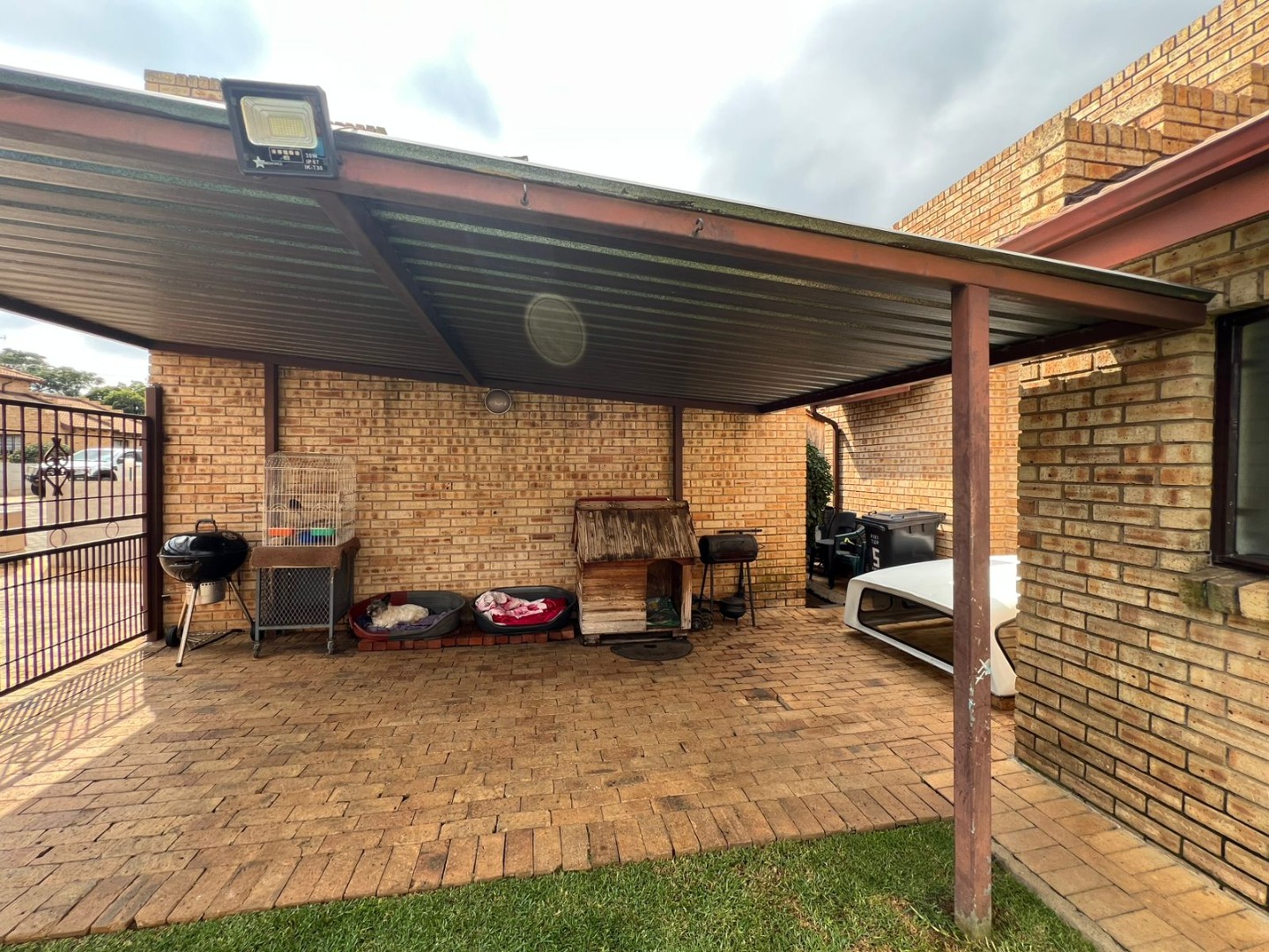 Security is well-addressed with 24-hour security, an access gate, and a security gate, ensuring peace of mind. Parking is secure with a garage and an additional covered carport. This pet-friendly home benefits from low monthly levies, presenting exceptional value in a convenient location.