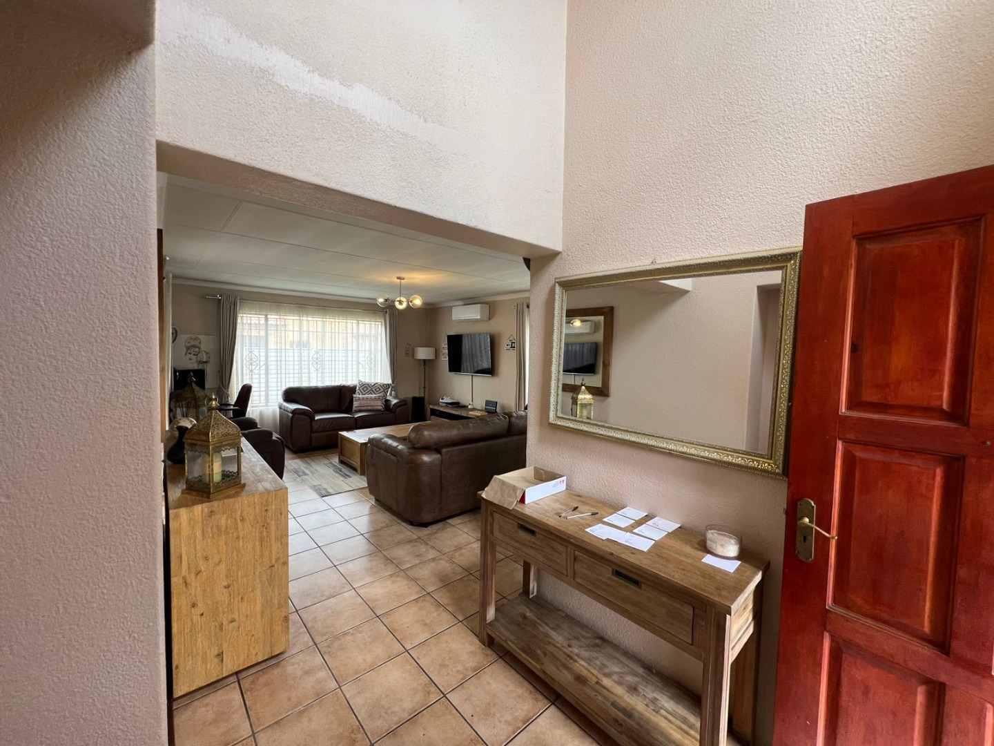 Enhancing the appeal of this residence is a private swimming pool, perfect for enjoying warm South African days. Modern conveniences include air conditioning for year-round comfort and fibre internet connectivity, catering to contemporary living needs. The property also boasts a private garden, offering a tranquil outdoor retreat without extensive upkeep.