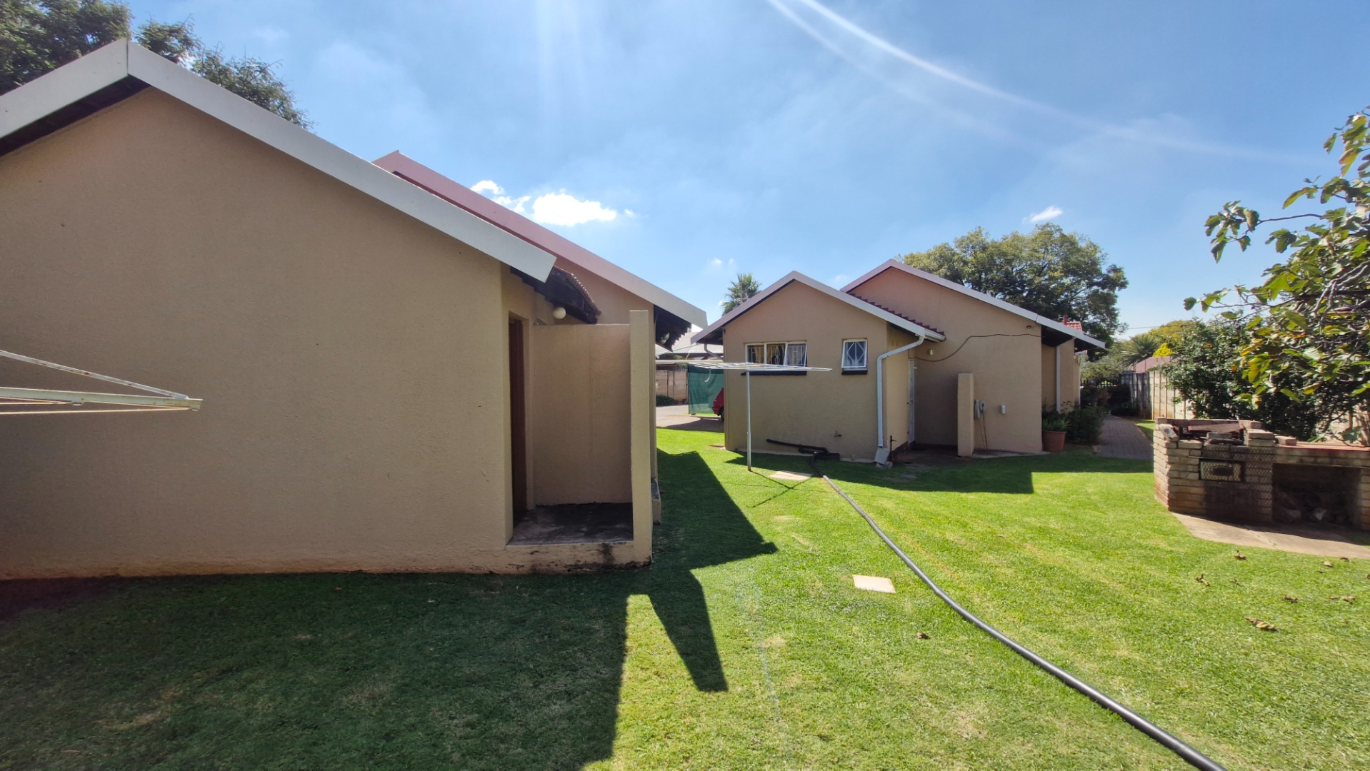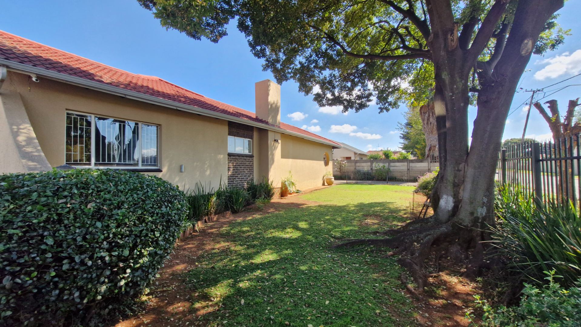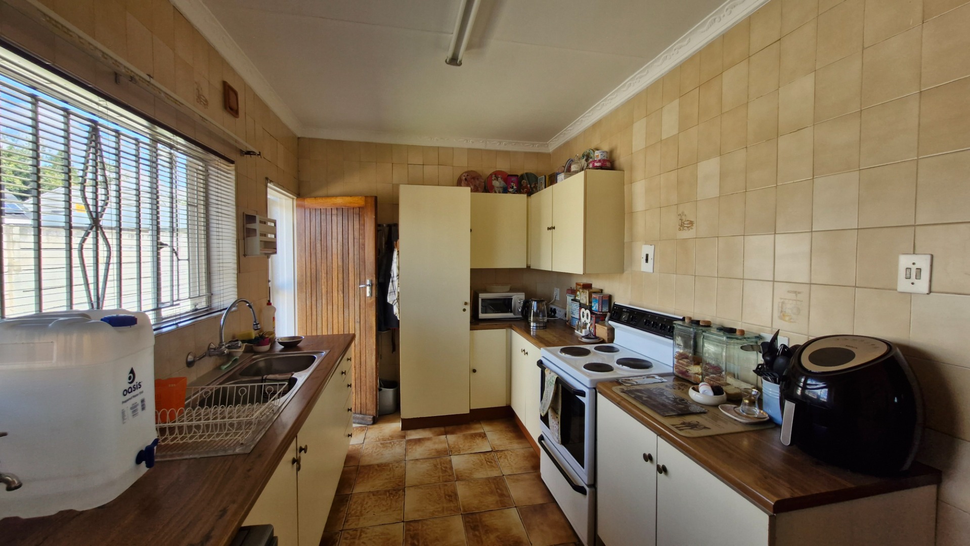 The fitted kitchen is both functional and inviting, offering ample cupboard space and complemented by separate scullery area to keep the main kitchen neat and organized. Outdoors, the covered patio overlooks a beautifully established garden, offering a tranquil setting for entertainment or quiet retreat.