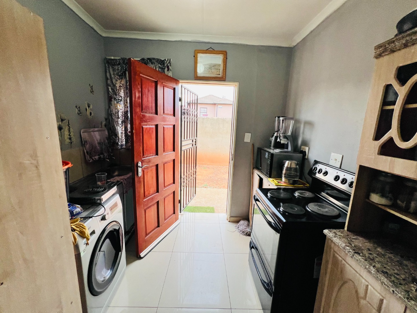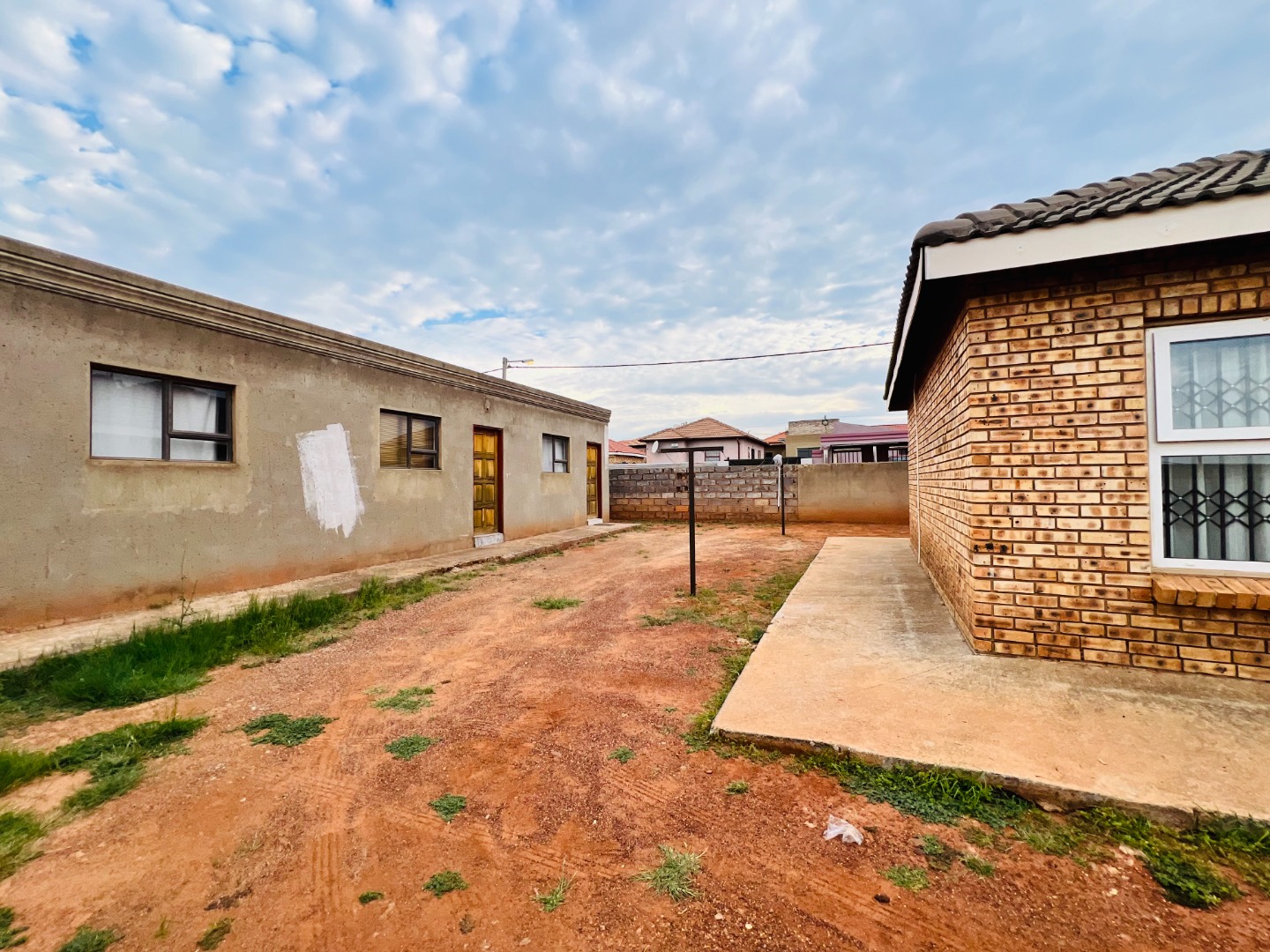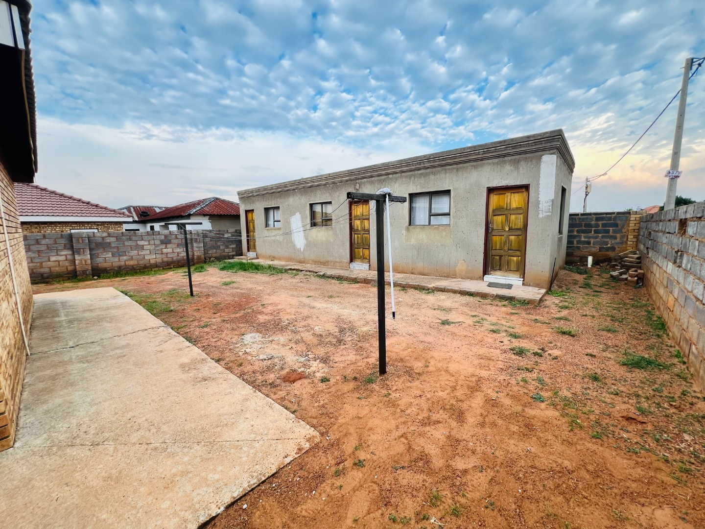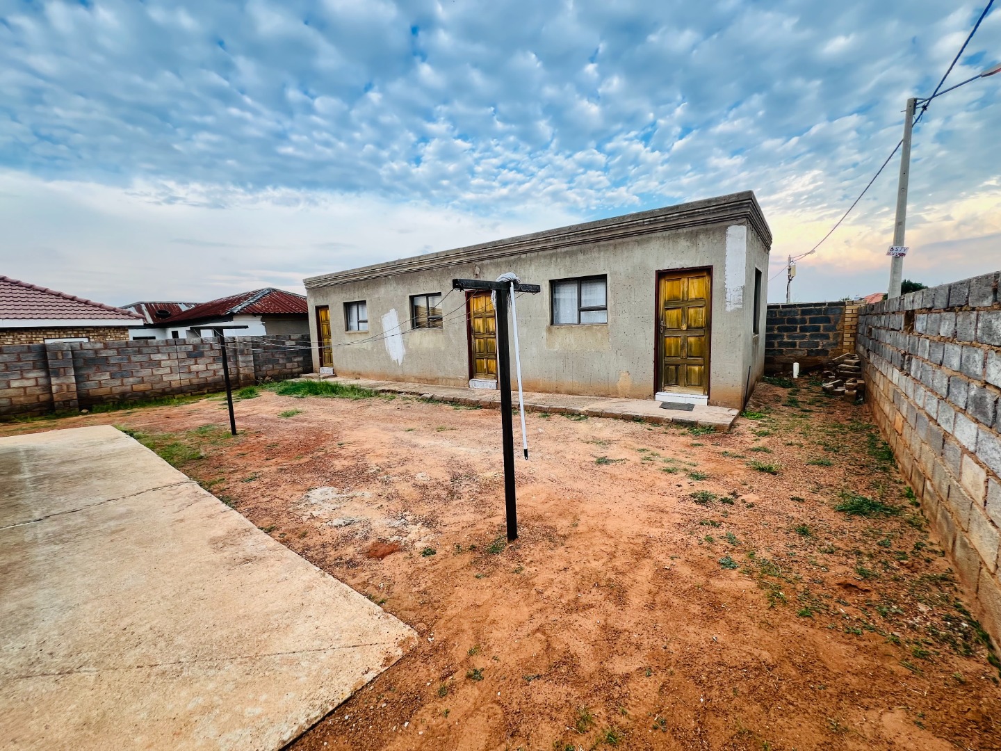 Discover this versatile property located in the established residential area of Lehae, Johannesburg. This home offers a practical layout with two comfortable bedrooms and two bathrooms, complemented by an additional guest toilet and outside toilets for convenience. The interior features an open-plan design, a functional kitchen, and two lounges, providing ample living space. A dedicated study offers a quiet area for work or hobbies, while integrated storage solutions enhance practicality. Situated on a generous 420 sqm erf with a floor size of 270 sqm, the property boasts significant outdoor potential. The large, currently unlandscaped yard presents a blank canvas for customisation, allowing for the creation of a dream garden or additional outdoor living spaces. With capacity for up to 12 open parking bays, accommodating vehicles is effortless. The presence of a flatlet and additional structures offers flexibility, whether for extended family, rental income, or dedicated workspaces. Sustainability and security are key features, with a solar geyser contributing to energy efficiency. The property is totally walled and equipped with burglar bars, ensuring peace of mind. Fibre connectivity is available, catering to modern communication needs. This home is also wheelchair-friendly and allows pets, making it suitable for a diverse range of residents. This property represents an excellent opportunity for those seeking a home with significant potential for personalisation and expansion in a growing community. Key Features: * 2 Bedrooms, 2 Bathrooms * 2 Lounges, 1 Kitchen * Dedicated Study & Storage * 420 sqm Erf, 270 sqm Floor Size * 12 Open Parking Bays * Flatlet & Outside Toilets * Solar Geyser & Fibre Ready * Totally Walled with Burglar Bars * Wheelchair Friendly & Pet-Friendly