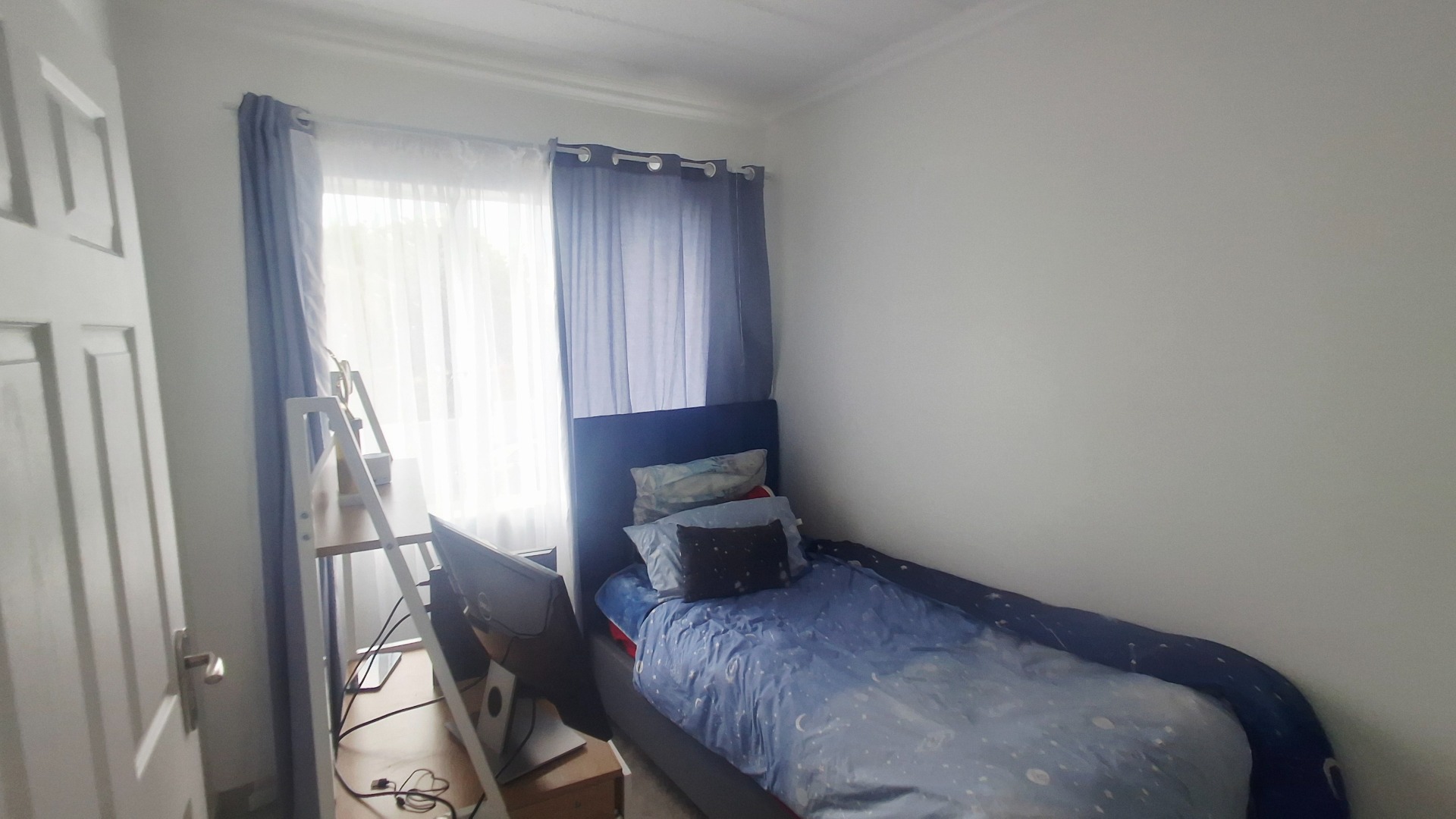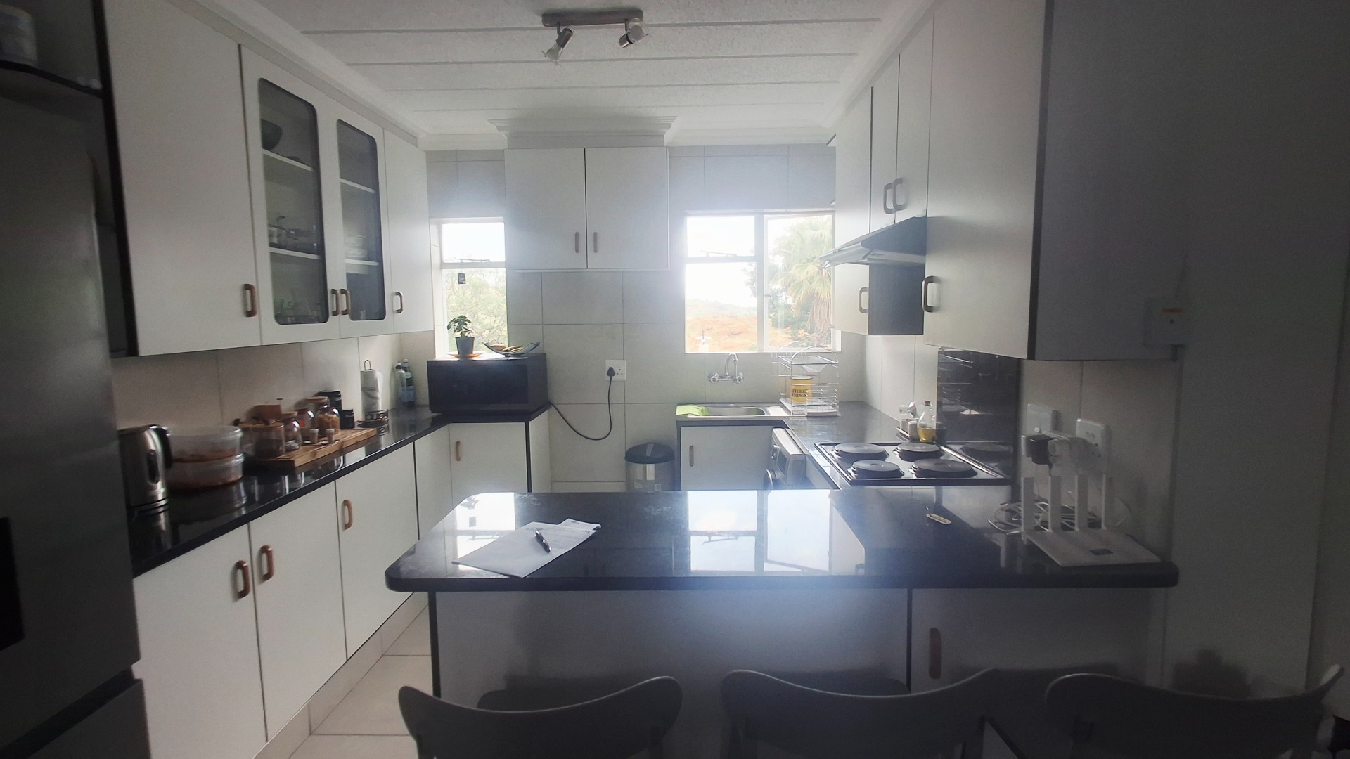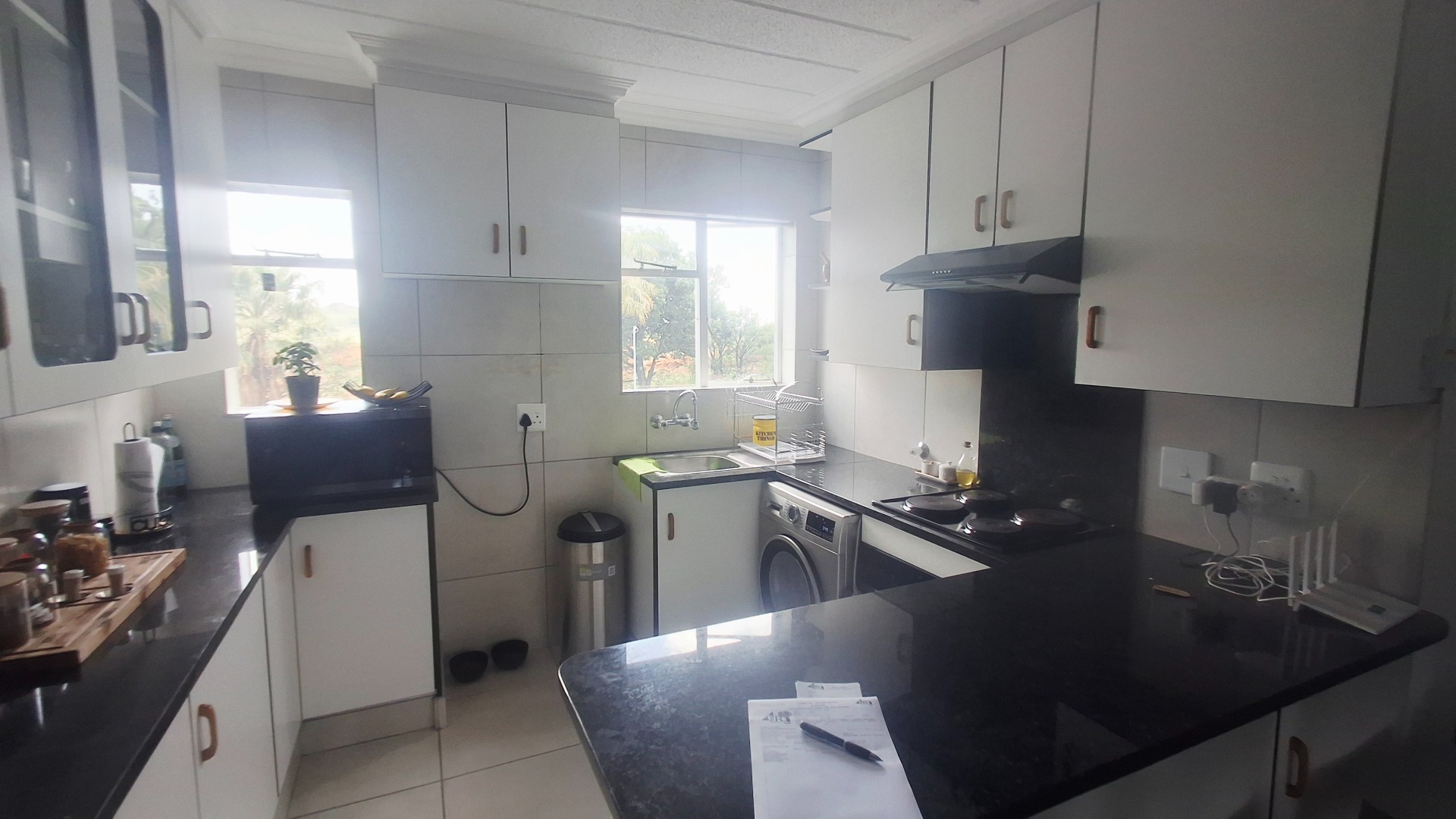 The contemporary kitchen offers sleek white cabinetry, dark countertops, a breakfast bar, and built?in appliances, along with dedicated space for a washing machine. Two well?proportioned bedrooms provide a clean and calming aesthetic, with the main bedroom offering generous built?in storage. A neat, well?appointed bathroom serves both bedrooms. Residents also enjoy access to a clubhouse, while 24?hour security, electric fencing, and security gates ensure peace of mind.