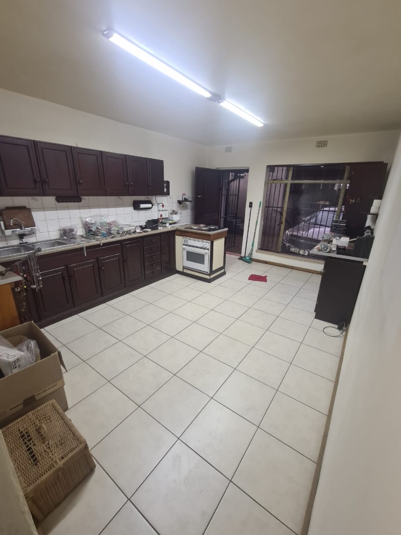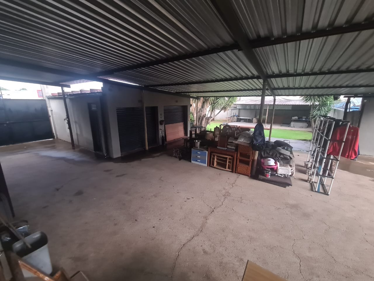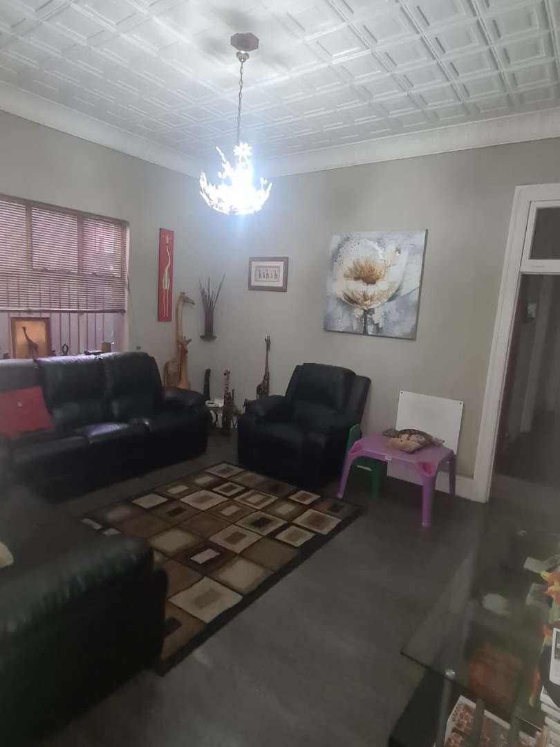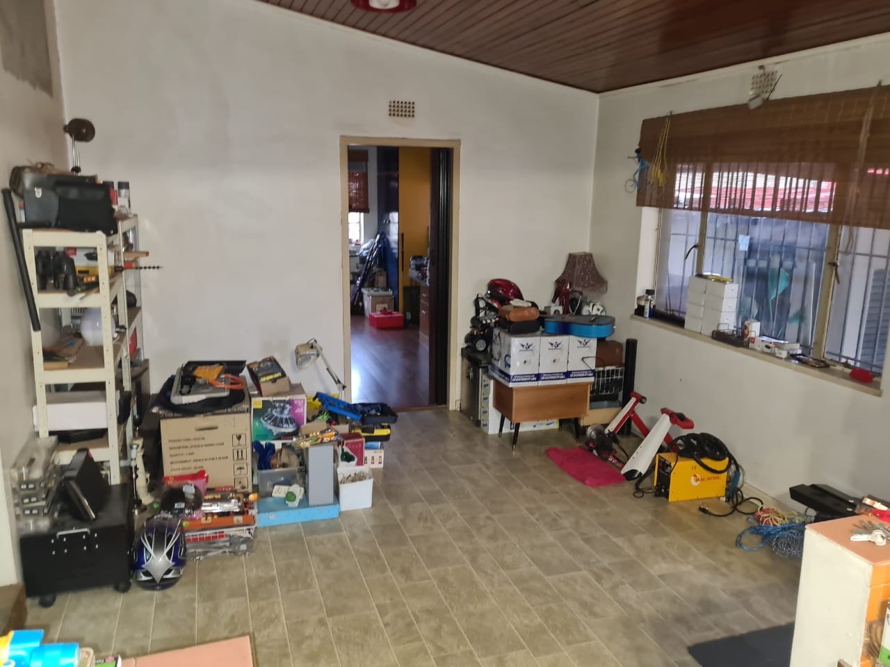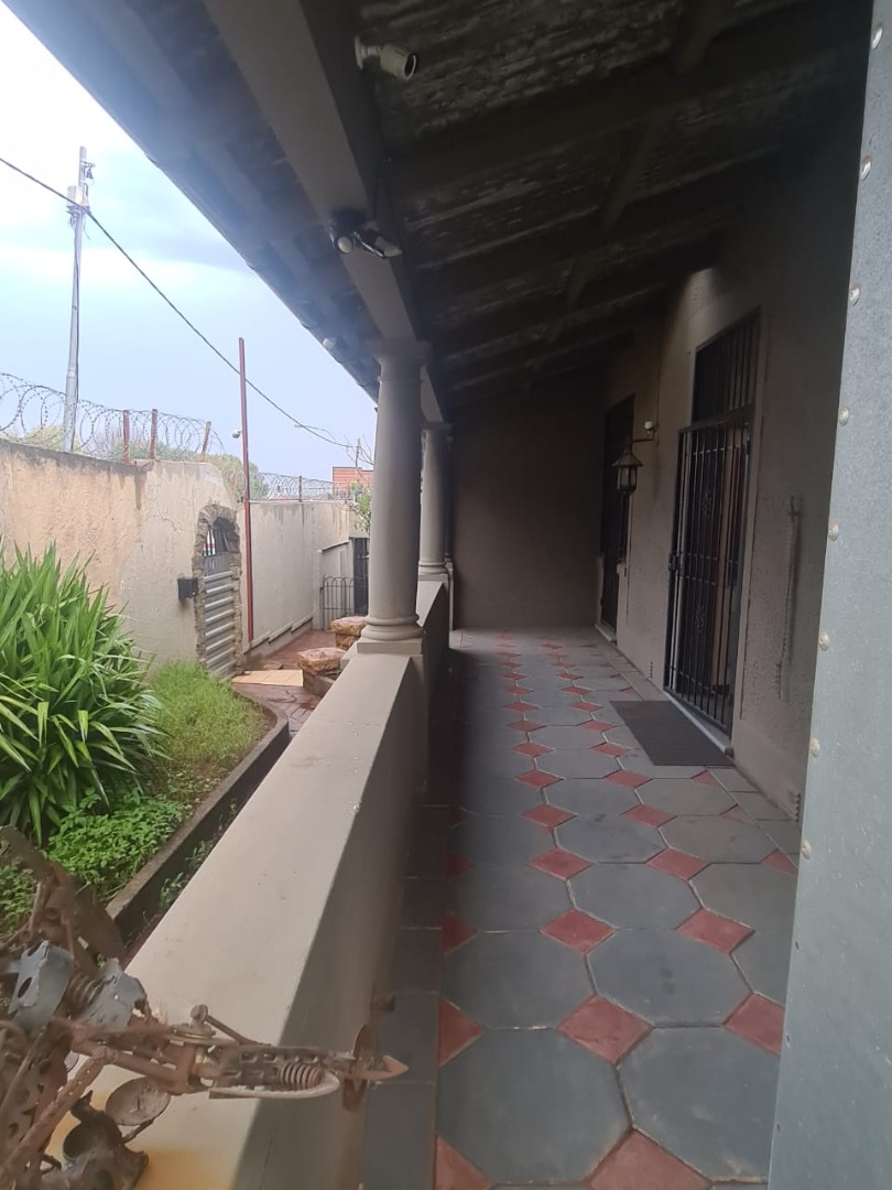 Discover this spacious 5-bedroom, 2-bathroom residence on a generous 993 sqm erf in Malvern, Johannesburg. The property features a classic wooden front door with a decorative security gate, flanked by sturdy architectural pillars. An inviting entryway boasts a striking archway, ornate stained glass, elegant wood paneling, and modern laminate flooring. The home includes a dedicated lounge and a dining room. The functional U-shaped kitchen provides ample cabinetry, a double oven, and a cooktop, with dedicated appliance spaces, offering potential for modern upgrades. An additional utility room offers extensive counter space, overhead cabinets, and laundry provisions. Outdoor areas include a covered patio/walkway with tiled flooring, security cameras, and window bars. A large, covered concrete-floored space with multiple units and roller shutters extends to a grassy backyard, ideal for various uses. The property offers two garages and six additional parking spaces, all within a securely fenced perimeter with barbed wire for enhanced safety. Malvern provides a convenient suburban lifestyle within the vibrant city of Johannesburg, offering access to local amenities and transport routes. Key Features: * 5 Bedrooms, 2 Bathrooms * 2 Garages, 6 Parking Spaces * Spacious U-shaped Kitchen * Versatile Covered Outdoor Areas * 993 sqm Erf Size * Enhanced Security Features * Located in Malvern, Johannesburg