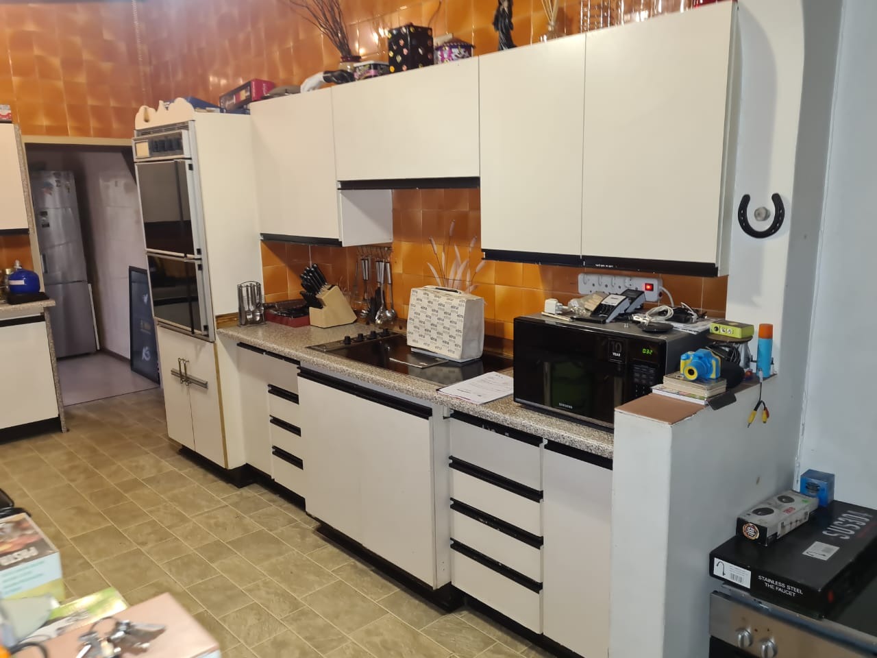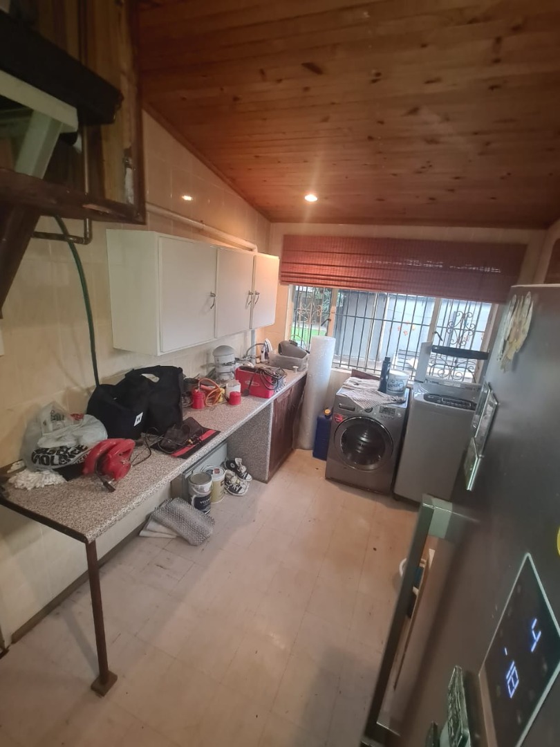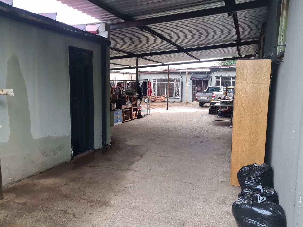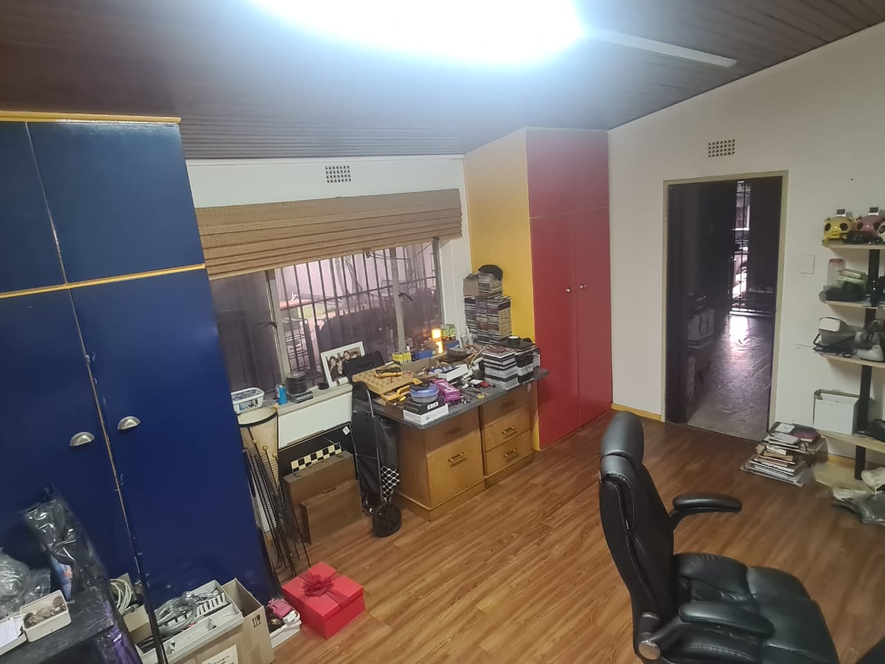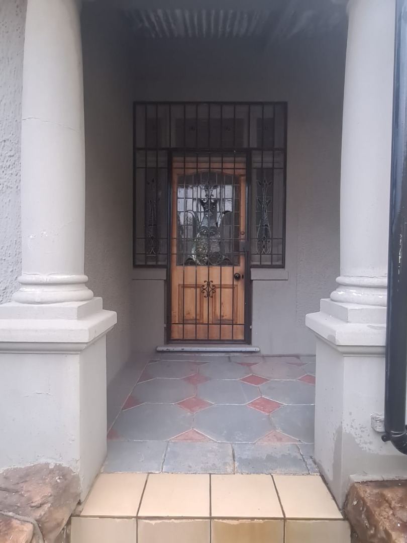 Discover this spacious 5-bedroom, 2-bathroom residence on a generous 993 sqm erf in Malvern, Johannesburg. The property features a classic wooden front door with a decorative security gate, flanked by sturdy architectural pillars. An inviting entryway boasts a striking archway, ornate stained glass, elegant wood paneling, and modern laminate flooring. The home includes a dedicated lounge and a dining room. The functional U-shaped kitchen provides ample cabinetry, a double oven, and a cooktop, with dedicated appliance spaces, offering potential for modern upgrades. An additional utility room offers extensive counter space, overhead cabinets, and laundry provisions. Outdoor areas include a covered patio/walkway with tiled flooring, security cameras, and window bars. A large, covered concrete-floored space with multiple units and roller shutters extends to a grassy backyard, ideal for various uses. The property offers two garages and six additional parking spaces, all within a securely fenced perimeter with barbed wire for enhanced safety. Malvern provides a convenient suburban lifestyle within the vibrant city of Johannesburg, offering access to local amenities and transport routes. Key Features: * 5 Bedrooms, 2 Bathrooms * 2 Garages, 6 Parking Spaces * Spacious U-shaped Kitchen * Versatile Covered Outdoor Areas * 993 sqm Erf Size * Enhanced Security Features * Located in Malvern, Johannesburg