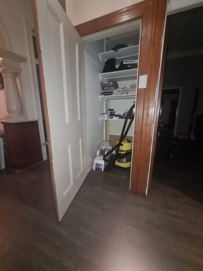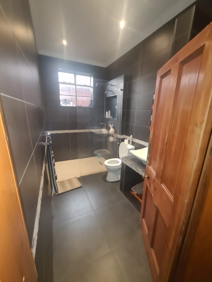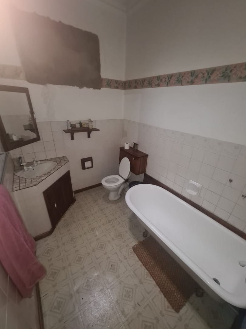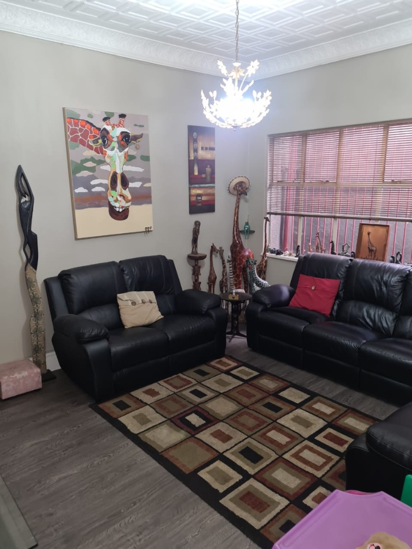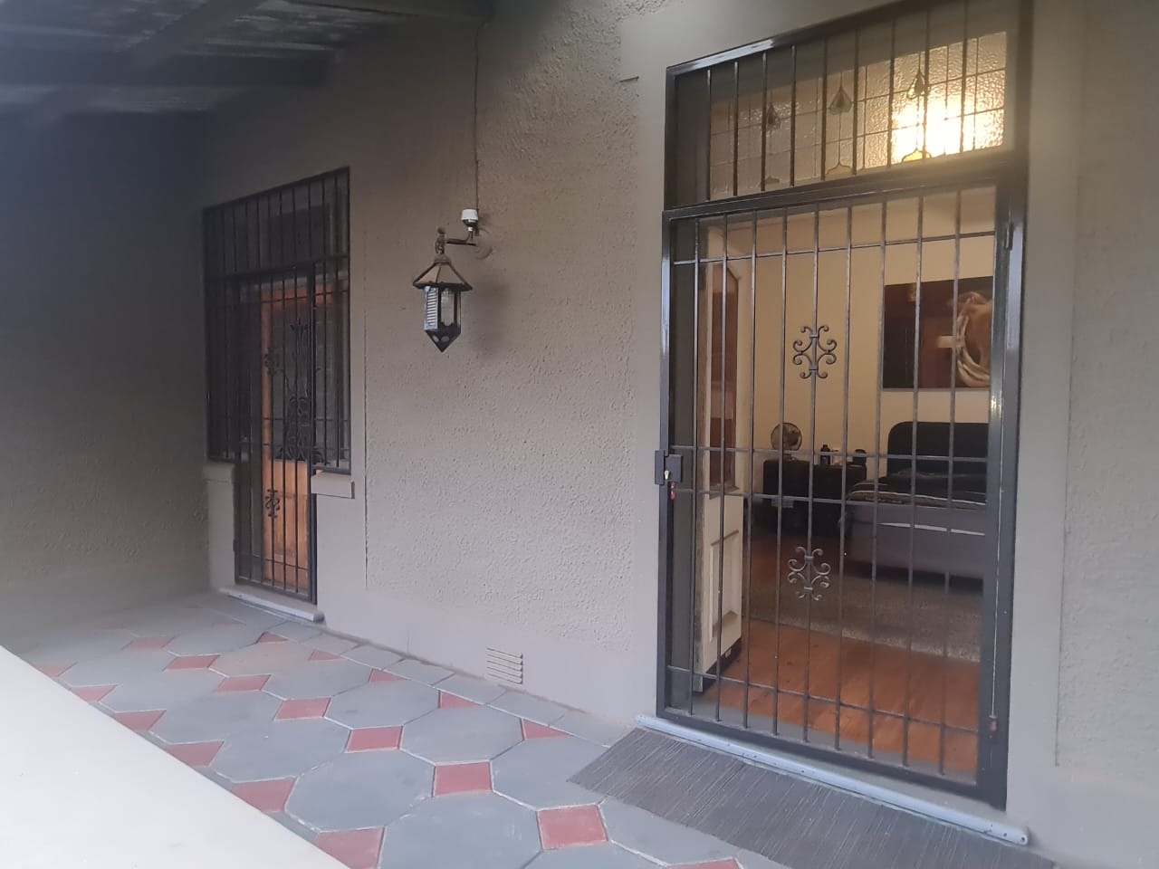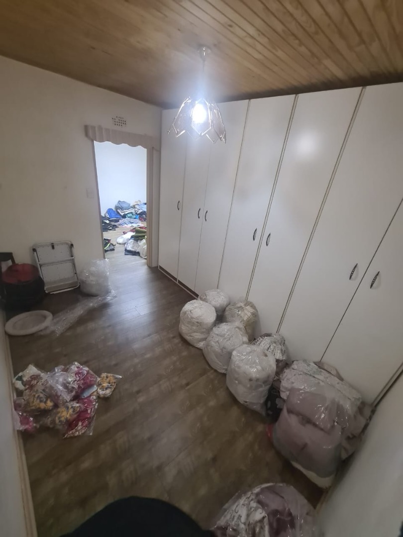 Discover this spacious 5-bedroom, 2-bathroom residence on a generous 993 sqm erf in Malvern, Johannesburg. The property features a classic wooden front door with a decorative security gate, flanked by sturdy architectural pillars. An inviting entryway boasts a striking archway, ornate stained glass, elegant wood paneling, and modern laminate flooring. The home includes a dedicated lounge and a dining room. The functional U-shaped kitchen provides ample cabinetry, a double oven, and a cooktop, with dedicated appliance spaces, offering potential for modern upgrades. An additional utility room offers extensive counter space, overhead cabinets, and laundry provisions. Outdoor areas include a covered patio/walkway with tiled flooring, security cameras, and window bars. A large, covered concrete-floored space with multiple units and roller shutters extends to a grassy backyard, ideal for various uses. The property offers two garages and six additional parking spaces, all within a securely fenced perimeter with barbed wire for enhanced safety. Malvern provides a convenient suburban lifestyle within the vibrant city of Johannesburg, offering access to local amenities and transport routes. Key Features: * 5 Bedrooms, 2 Bathrooms * 2 Garages, 6 Parking Spaces * Spacious U-shaped Kitchen * Versatile Covered Outdoor Areas * 993 sqm Erf Size * Enhanced Security Features * Located in Malvern, Johannesburg