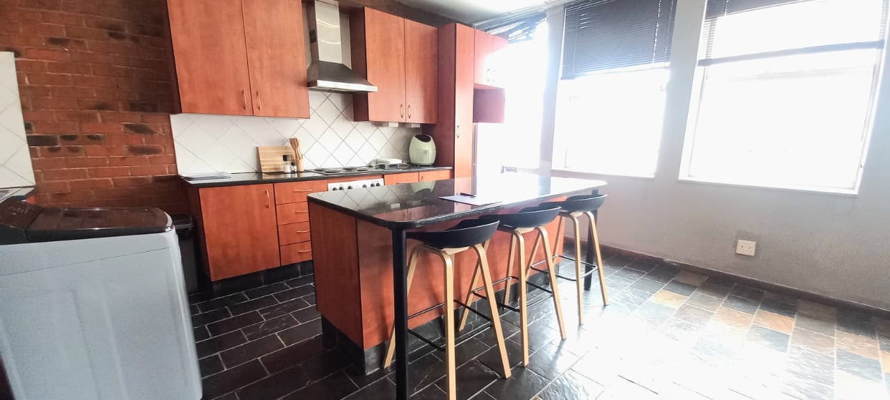 Hey there! Looking for a cool spot in the heart of Johannesburg? This lovely 2-bedroom, 2-bathroom apartment in Marshalltown is just the ticket. Step inside and you'll immediately feel at home in the open-plan living area, which gets loads of natural light streaming in through those big windows. The exposed brick accent wall really adds a touch of character and warmth, making it a super inviting space to chill out or entertain friends. It's all about easy living here, with a seamless flow from one area to the next. The kitchen is a real highlight, featuring warm wooden cabinetry that offers plenty of storage for all your bits and bobs. You'll love the practical breakfast bar, perfect for quick meals or catching up over coffee. It comes equipped with modern appliances like a range hood, and there's even an integrated washing machine, making laundry a breeze. The durable slate-like tiled flooring throughout the living and kitchen areas means less fuss and more fun. When it's time to unwind, you've got two comfy bedrooms waiting for you. Each of the two bathrooms is functional and neat, with a vanity, sink, and a separate shower enclosure, ensuring everyone has their own space to get ready. Natural light continues to brighten these private areas, creating a pleasant atmosphere. Living in a metropolitan area like Marshalltown means convenience is key, and this apartment delivers. You'll appreciate the peace of mind that comes with being in a security complex, complete with 24-hour security, a security post, and a reception area. Plus, there's a dedicated parking bay for your vehicle. It's a great lock-up-and-go option for anyone wanting to enjoy city life in this vibrant part of South Africa. Key Features: * 2 Bedrooms, 2 Bathrooms * Open-plan living with natural light * Charming exposed brick accent wall * Functional kitchen with breakfast bar * Durable tiled flooring throughout * Secure metropolitan complex * 24-hour security and reception * Dedicated parking bay