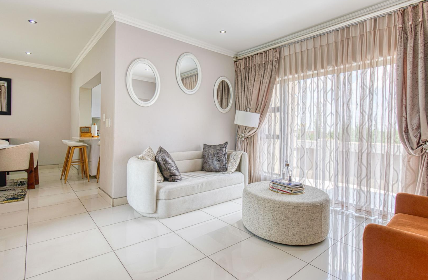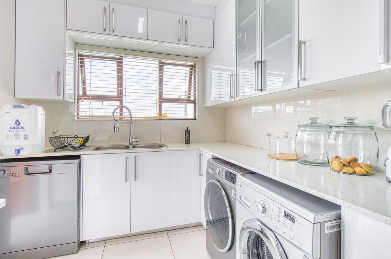 Outdoor living is equally catered for with a private garden, offering a serene space for recreation and outdoor enjoyment. A charming patio provides an excellent spot for al fresco dining or simply unwinding, while a balcony extends the living space outdoors, offering scenic views of the surrounding area. Practical amenities include staff quarters, a dedicated laundry area, and durable paving. The property also boasts a double garage, providing secure parking and additional storage solutions.