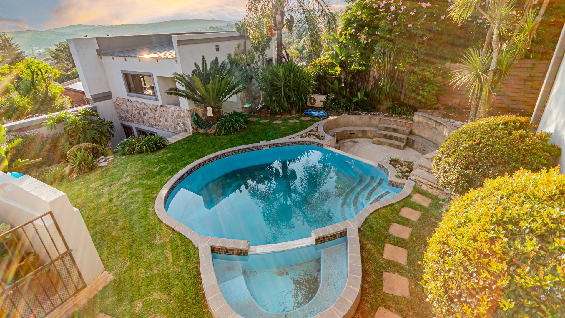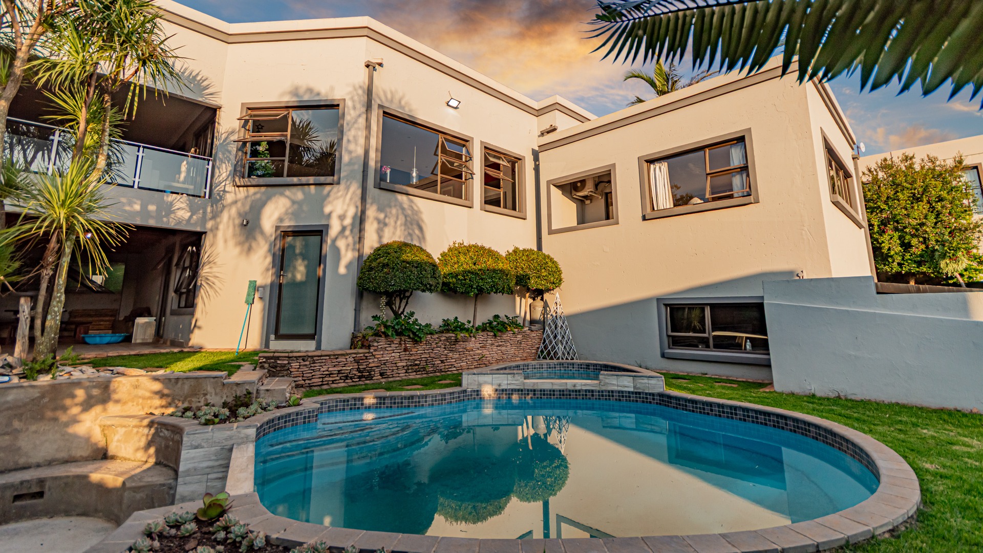 Outside, your private oasis awaits. Imagine sunny days by the sparkling heated pool, surrounded by a beautifully landscaped garden. There are multiple outdoor entertainment areas, including a lovely patio with a built-in braai and a wet bar, ideal for those classic South African get-togethers. Enjoy the scenic views from various spots around the property. You’ll also appreciate the practical side with two garages and four additional parking spaces, plus a convenient driveway.