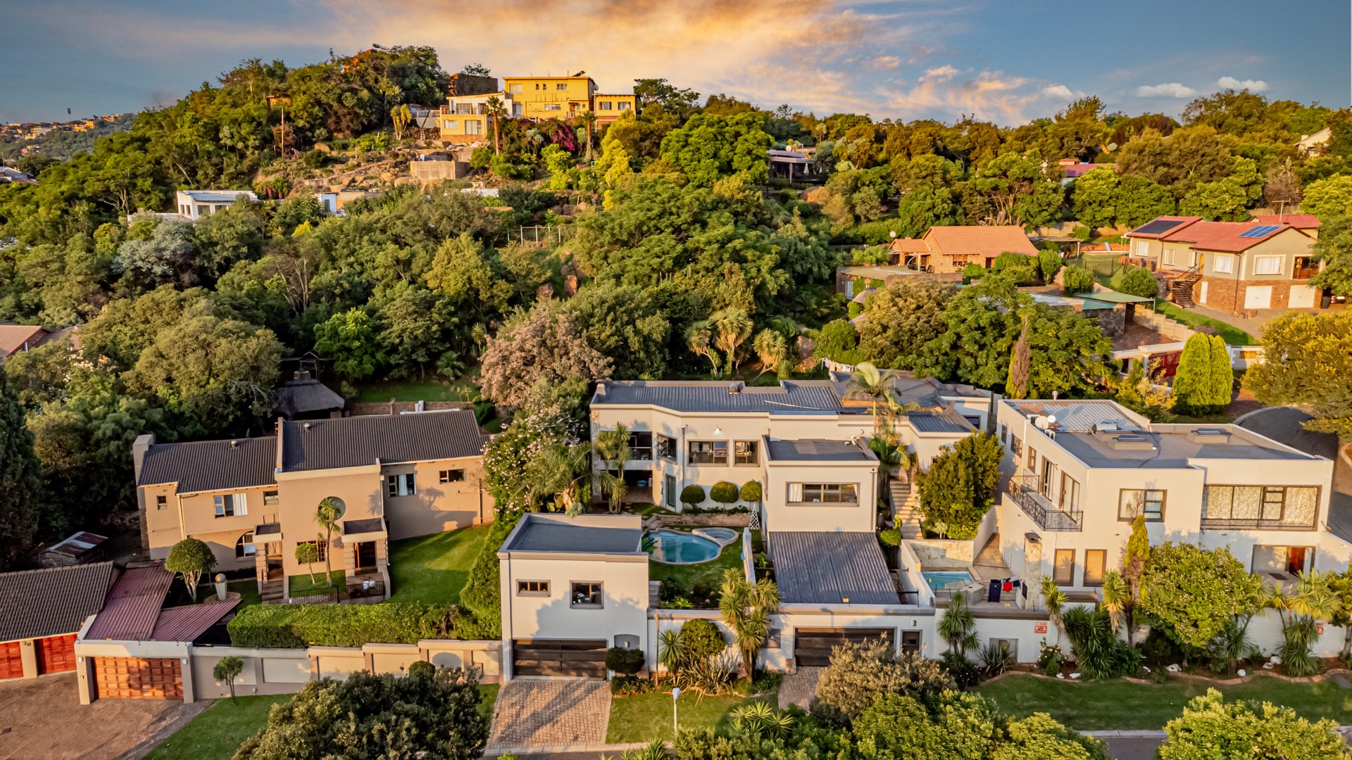 Welcome to this opulent five bedroom family home including two flatlets, a true gem in Johannesburg's suburban landscape, offering a blend of modern design and comfortable living. From the moment you arrive, you'll notice the great kerb appeal with its contemporary multi-level architecture, clean lines, and a beautifully maintained, lush garden featuring tropical plants and natural rock formations. It’s a place that just feels right, perfect for families looking for space and a relaxed lifestyle.