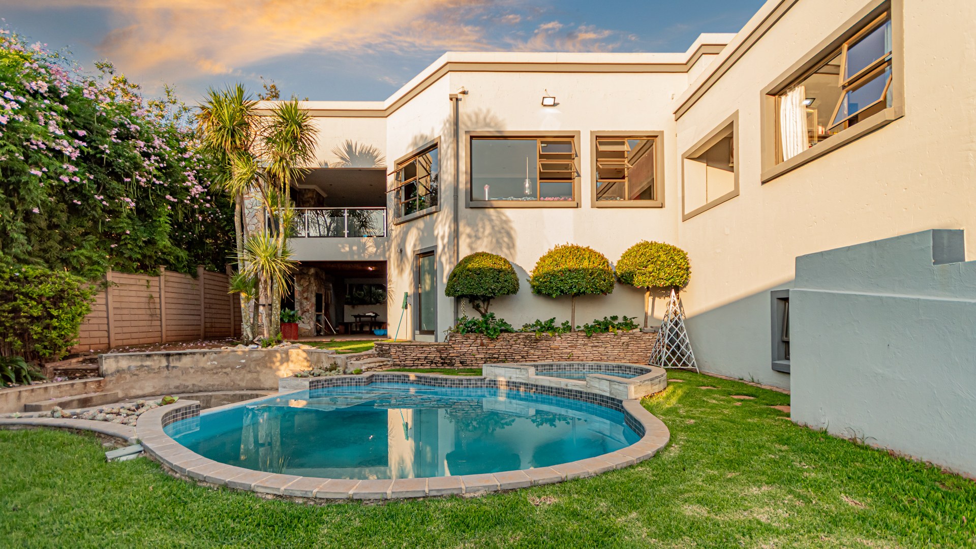 Welcome to this opulent five bedroom family home including two flatlets, a true gem in Johannesburg's suburban landscape, offering a blend of modern design and comfortable living. From the moment you arrive, you'll notice the great kerb appeal with its contemporary multi-level architecture, clean lines, and a beautifully maintained, lush garden featuring tropical plants and natural rock formations. It’s a place that just feels right, perfect for families looking for space and a relaxed lifestyle.