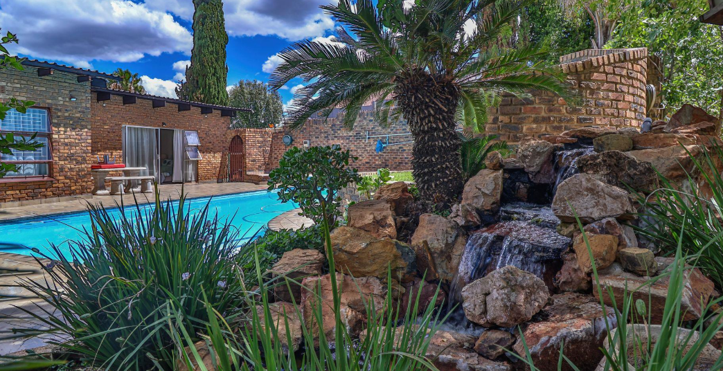 Built-in braai overlooking the pool area