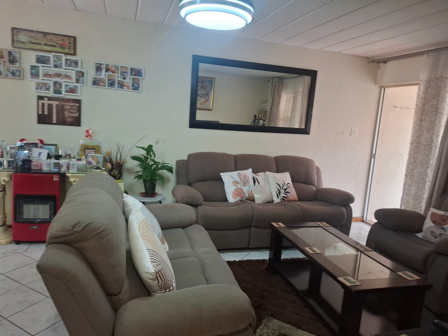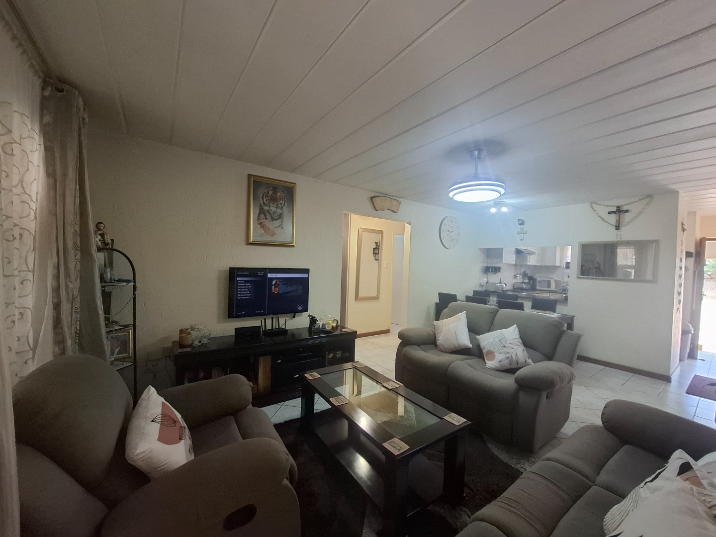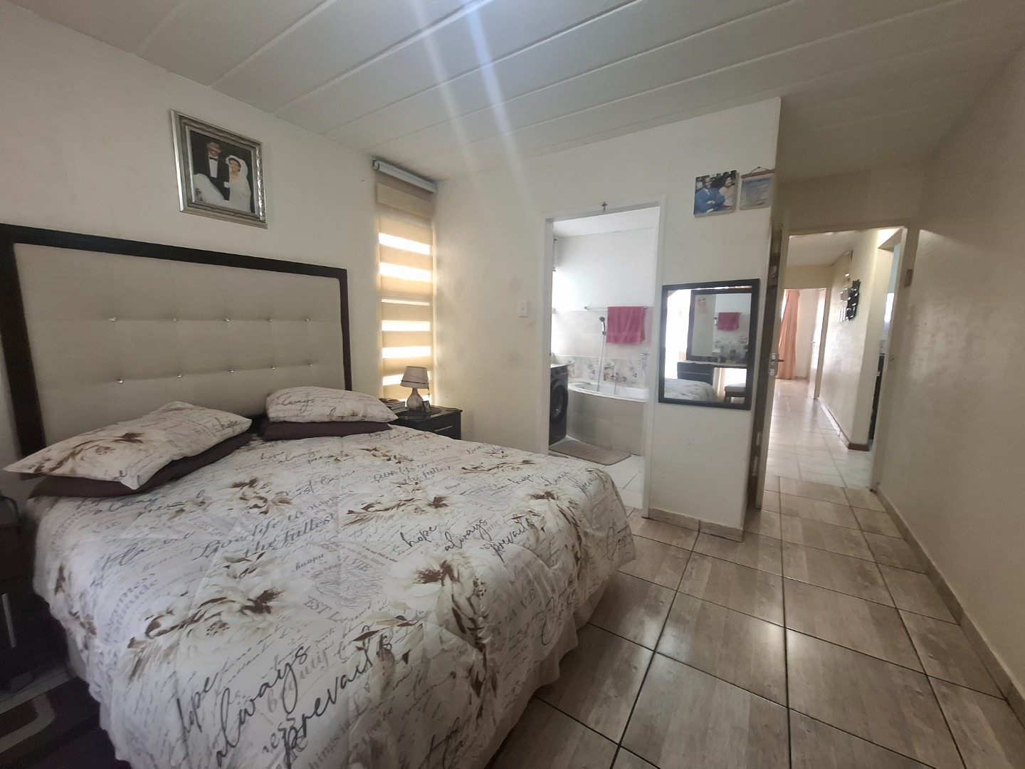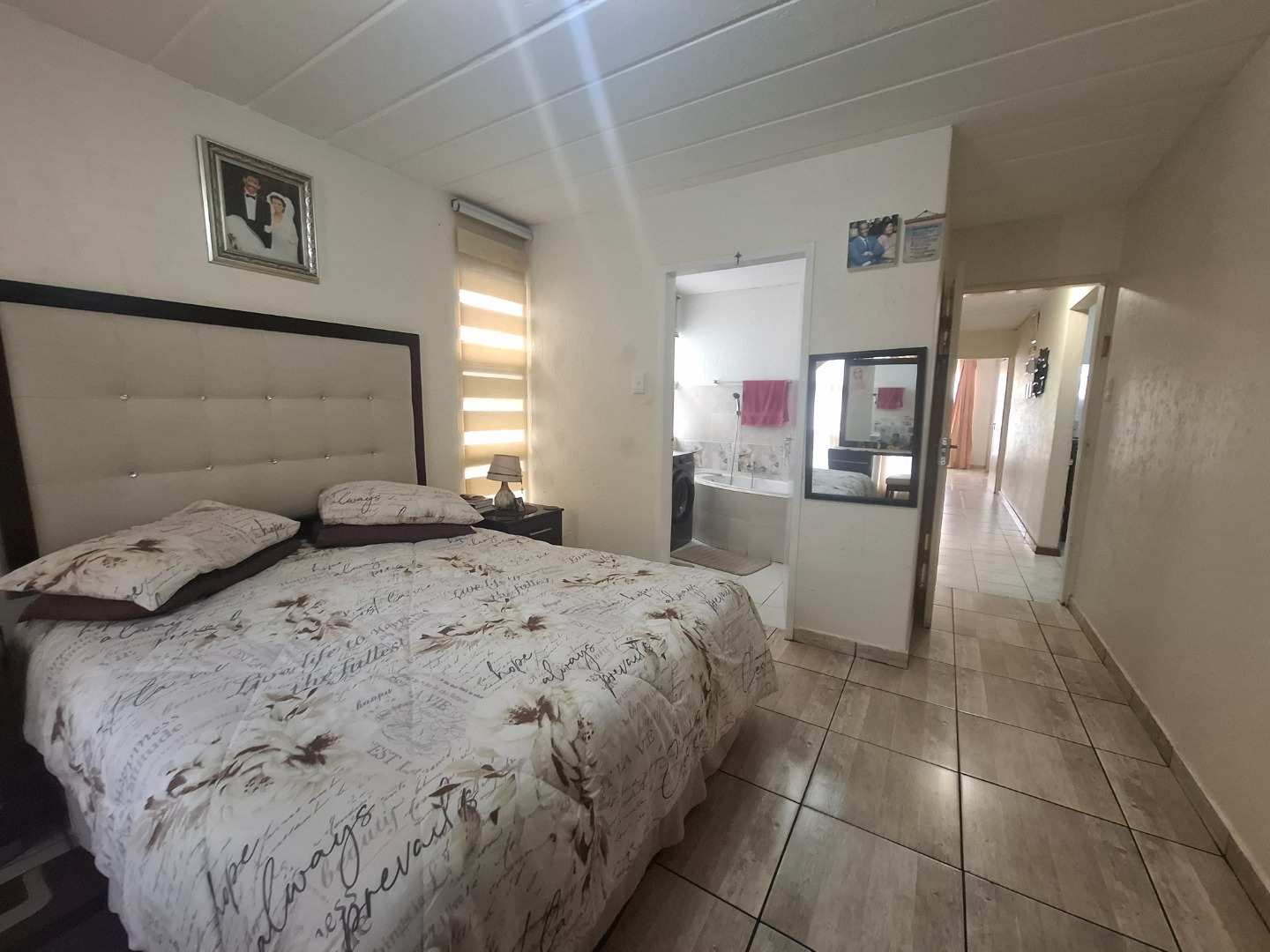 Inside, you’ll find three well-proportioned bedrooms, all complete with built-in cupboards. The home is serviced by a full family bathroom, while the main bedroom boasts its own private en-suite, offering added comfort and privacy.