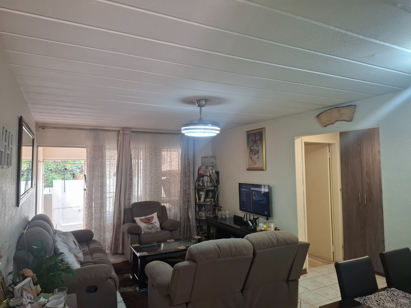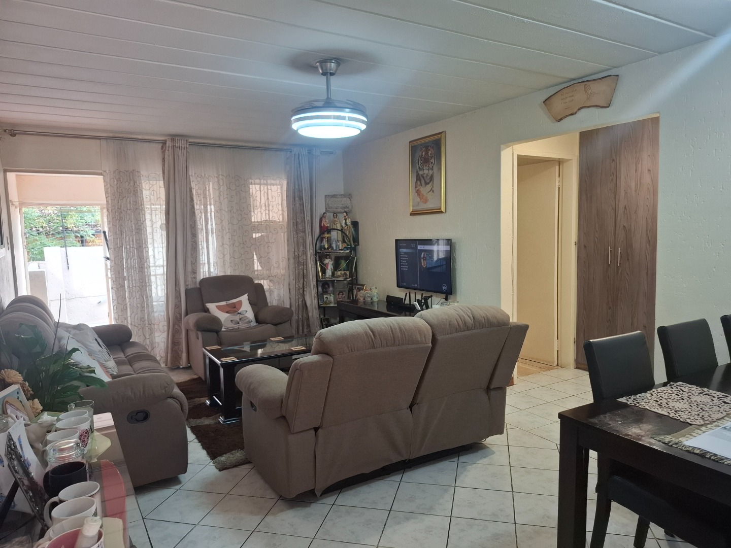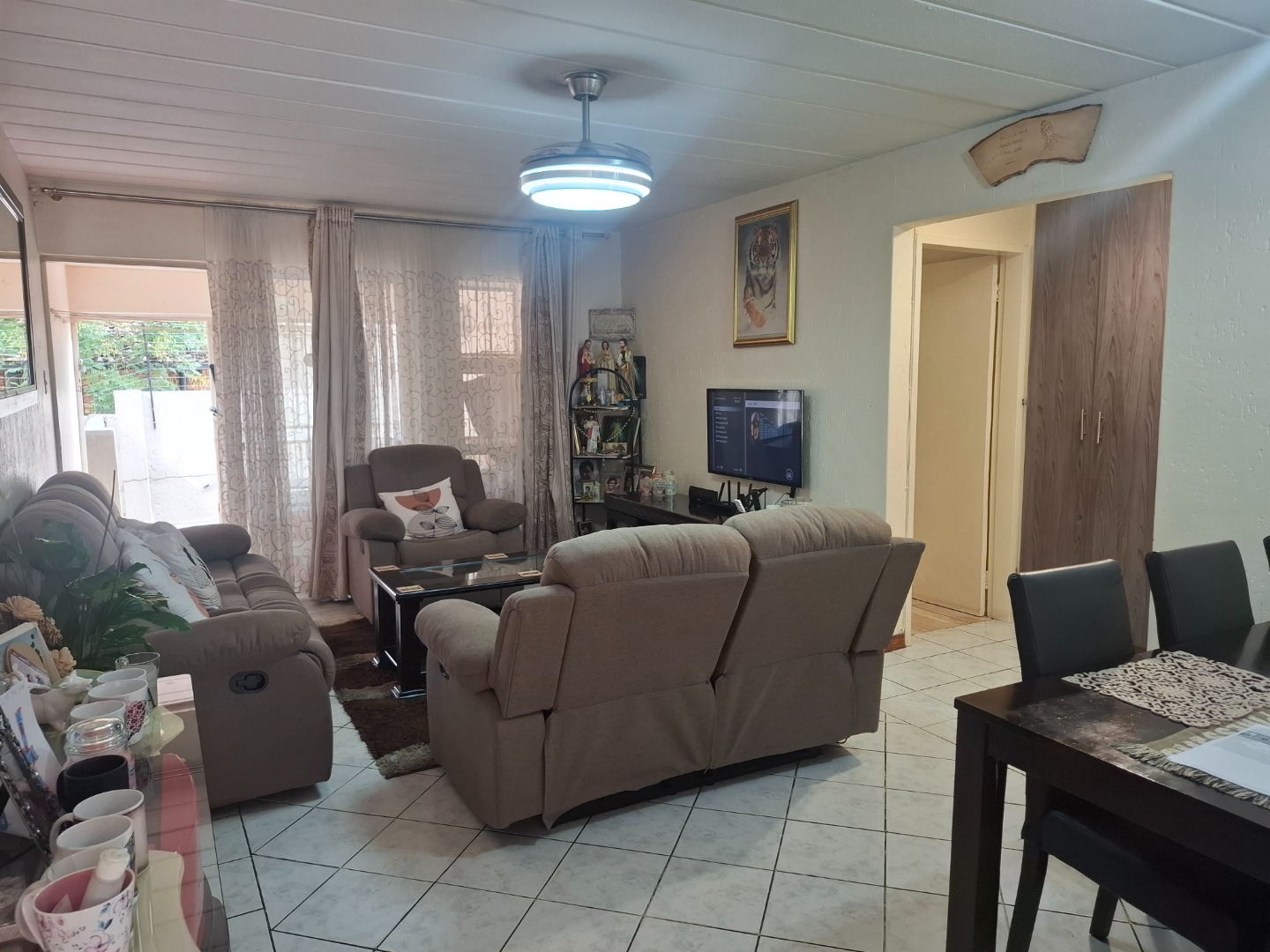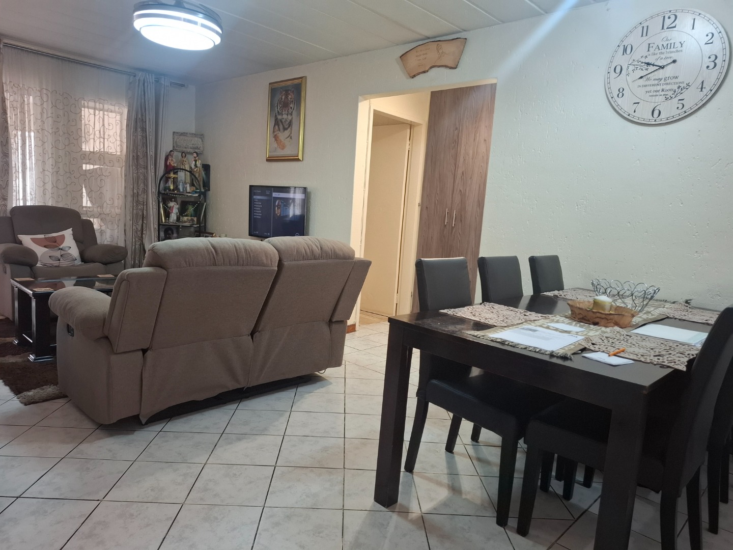 Inside, you’ll find three well-proportioned bedrooms, all complete with built-in cupboards. The home is serviced by a full family bathroom, while the main bedroom boasts its own private en-suite, offering added comfort and privacy.