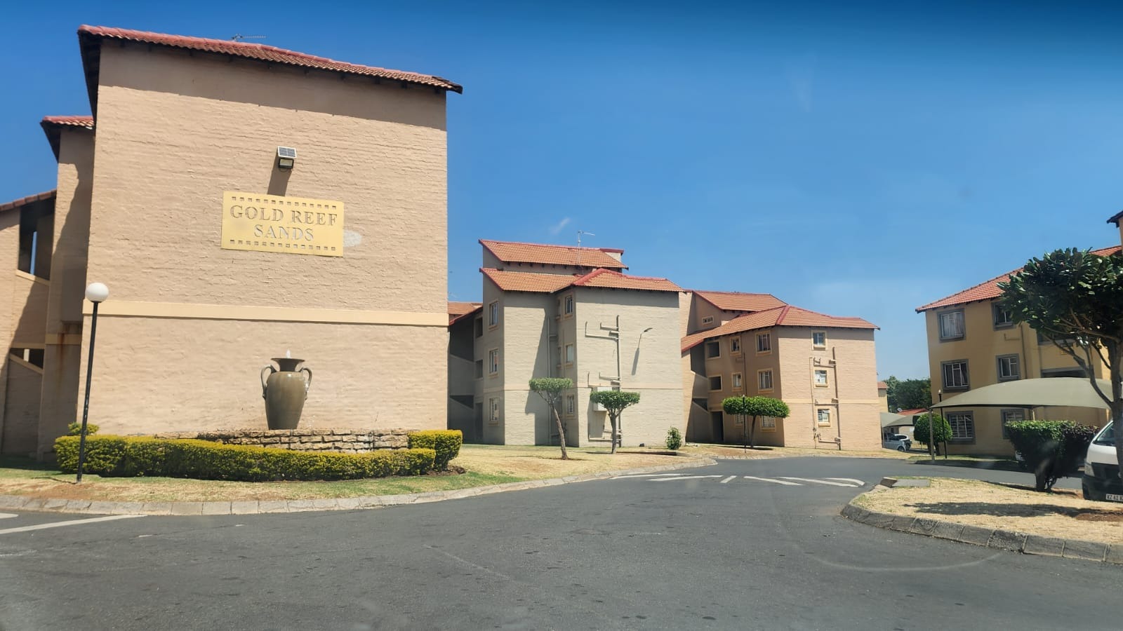 Discover this inviting 3-bedroom, 2-bathroom apartment located within the established Gold Reef Sands complex in Ormonde, Johannesburg. The multi-story buildings feature warm-toned exteriors and traditional tiled roofs, offering a pleasant kerb appeal. Residents benefit from convenient covered parking and paved access roads within the complex. Inside, the apartment presents a functional layout with a comfortable lounge area and a compact kitchen. The kitchen is equipped with light wood-grain cabinetry, a double stainless steel sink, and a washing machine connection, all set on practical tiled flooring. Natural light enhances the space, which also includes built-in storage. Accommodation comprises three well-proportioned bedrooms and two bathrooms, with one being an en-suite for added privacy. Tiled flooring extends throughout the unit, ensuring easy maintenance. Security is enhanced with visible burglar bars and a security gate at the entrance. Ormonde offers a well-connected lifestyle within Johannesburg, providing access to various amenities and transport routes. Key Features: * 3 Bedrooms, 2 Bathrooms (1 En-suite) * 1 Lounge, 1 Kitchen * Covered Parking * Built-in Storage * Tiled Flooring Throughout * Security Gate & Burglar Bars * Complex Living