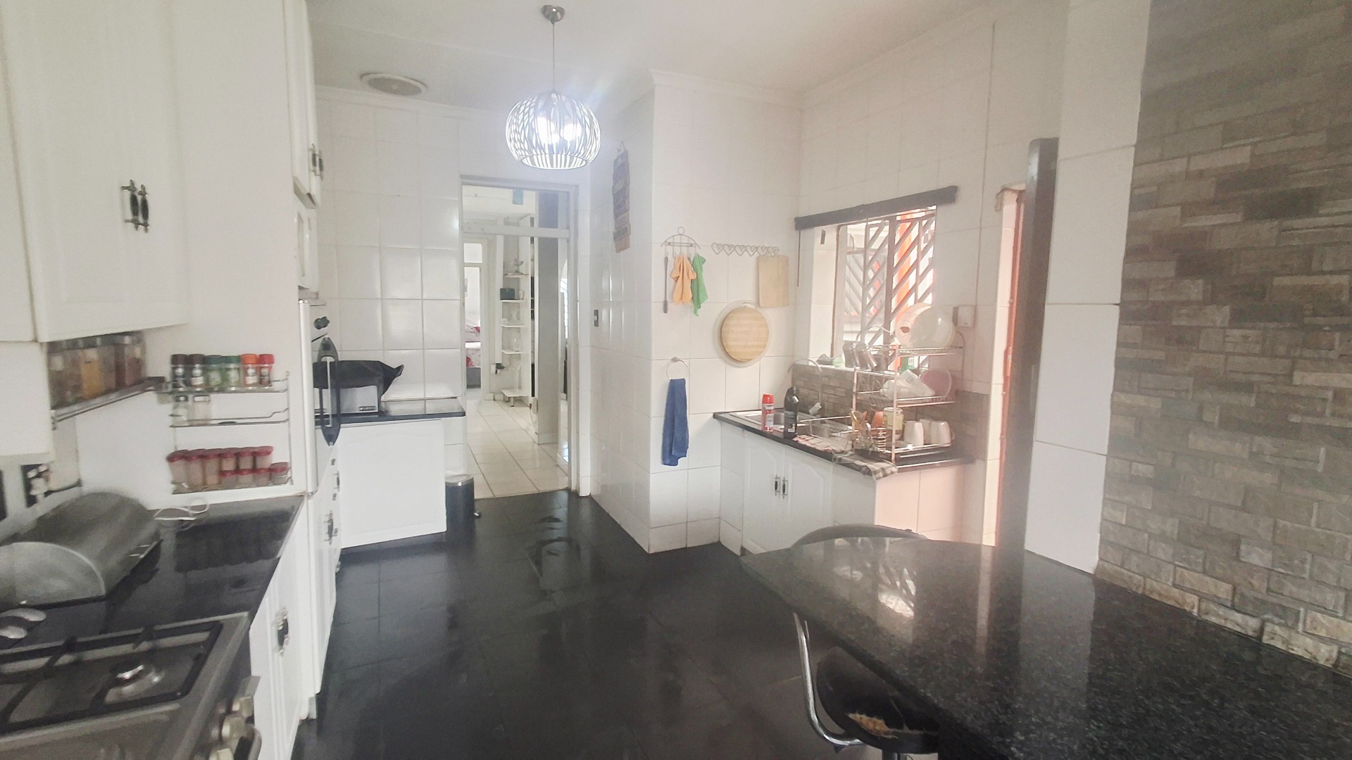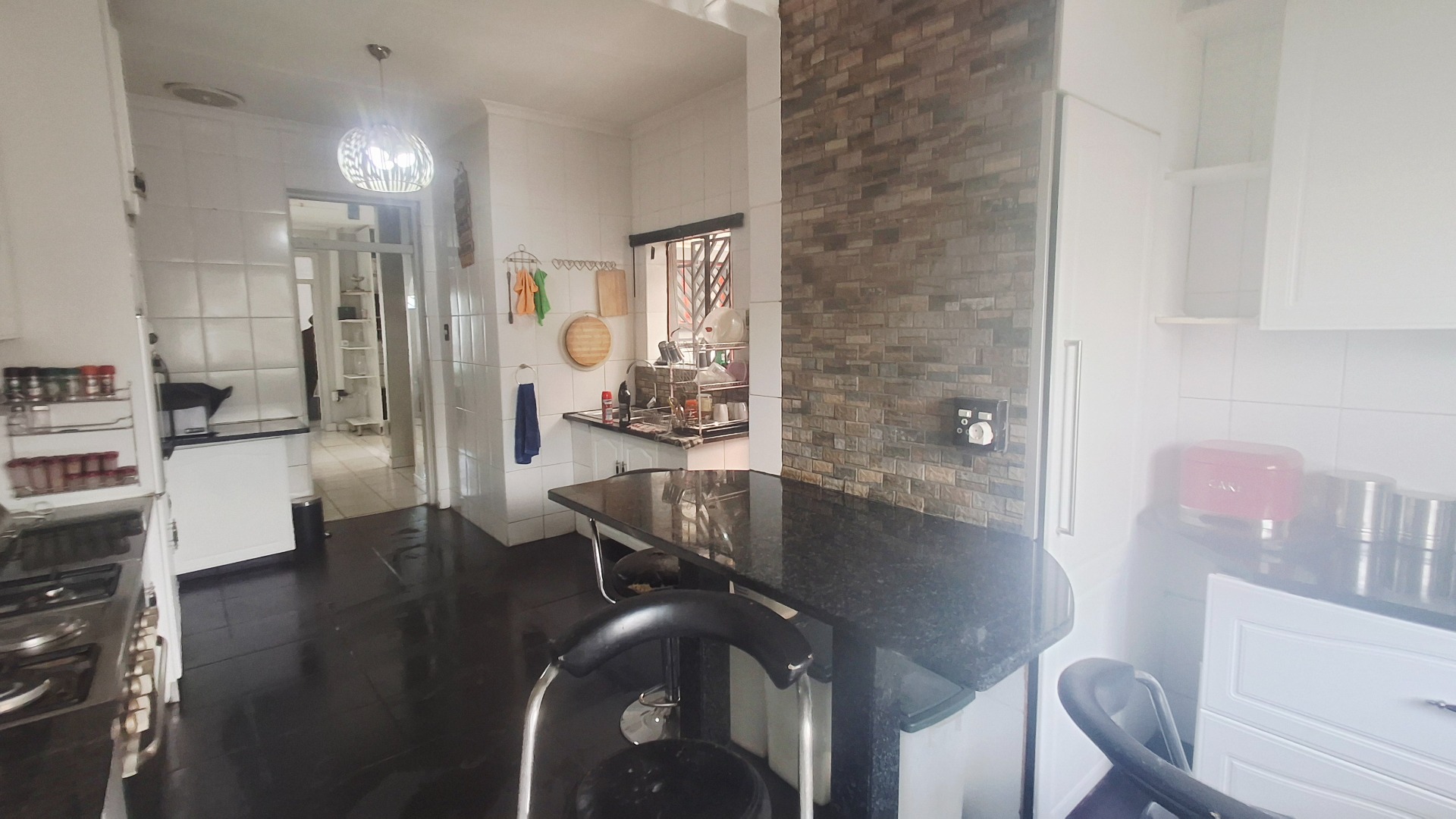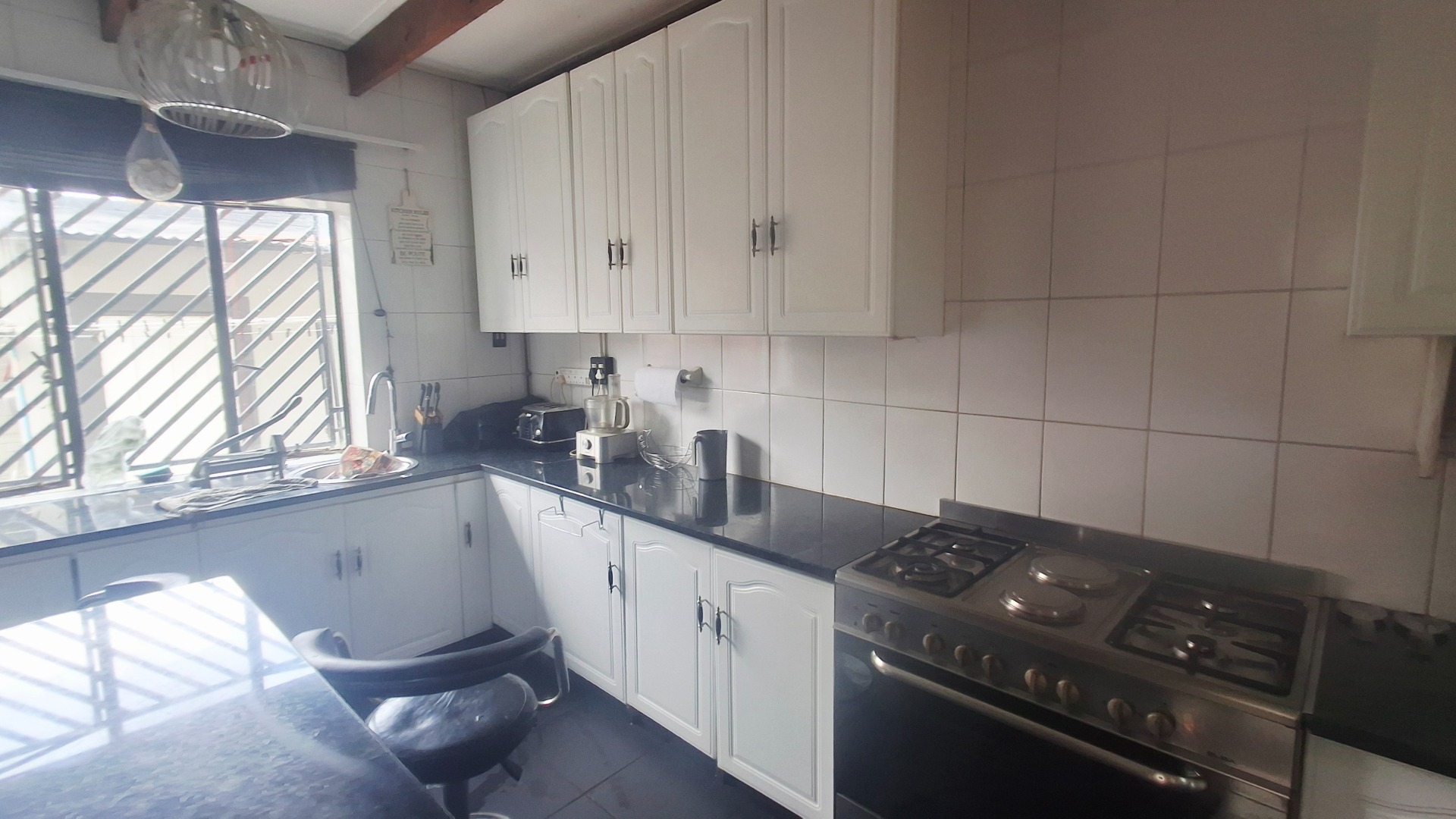 The modern kitchen is both stylish and practical, with granite countertops, a gas hob, and abundant cupboard space. A private guest suite with garden access adds versatility, ideal for extended family, a teen pad, or income-generating potential. Outdoors, you’ll find a tranquil koi pond, domestic accommodation, and a double tandem garage, all enhanced by an electric fence for peace of mind.