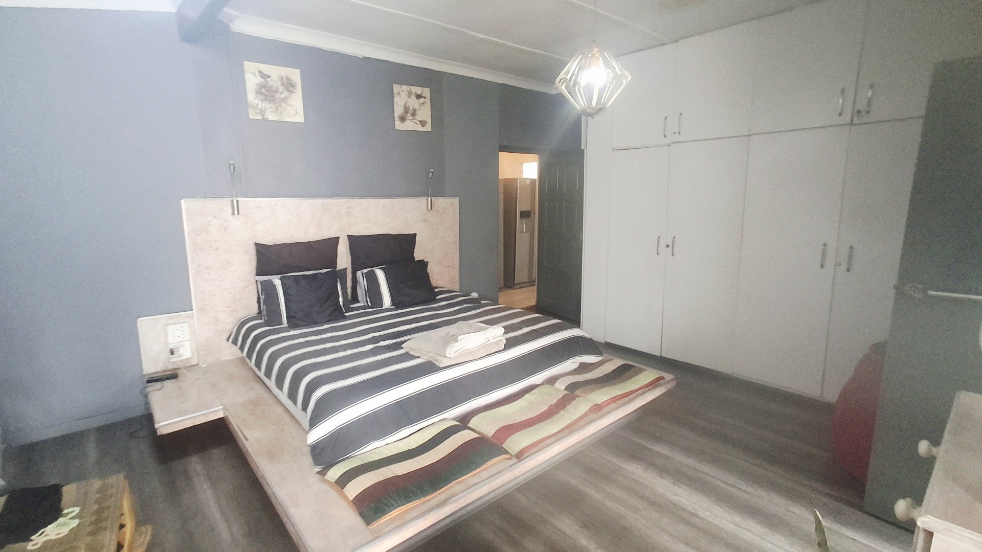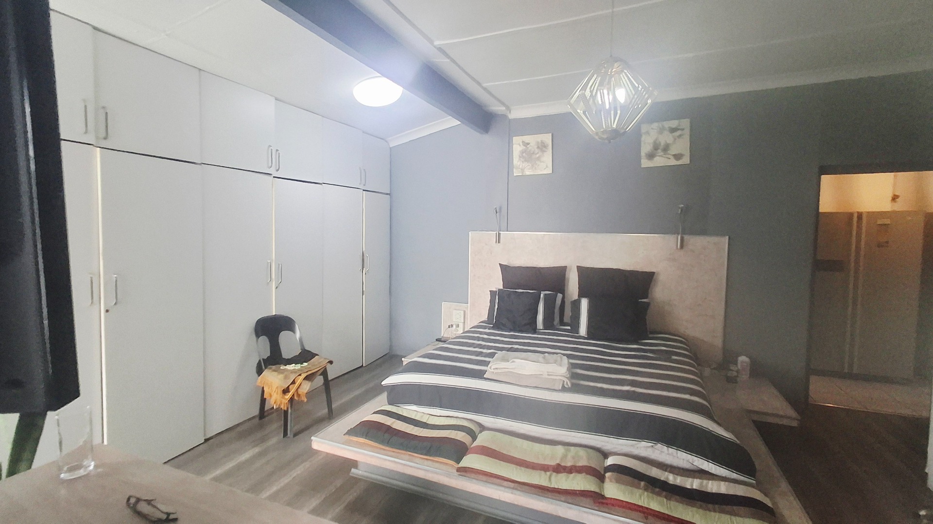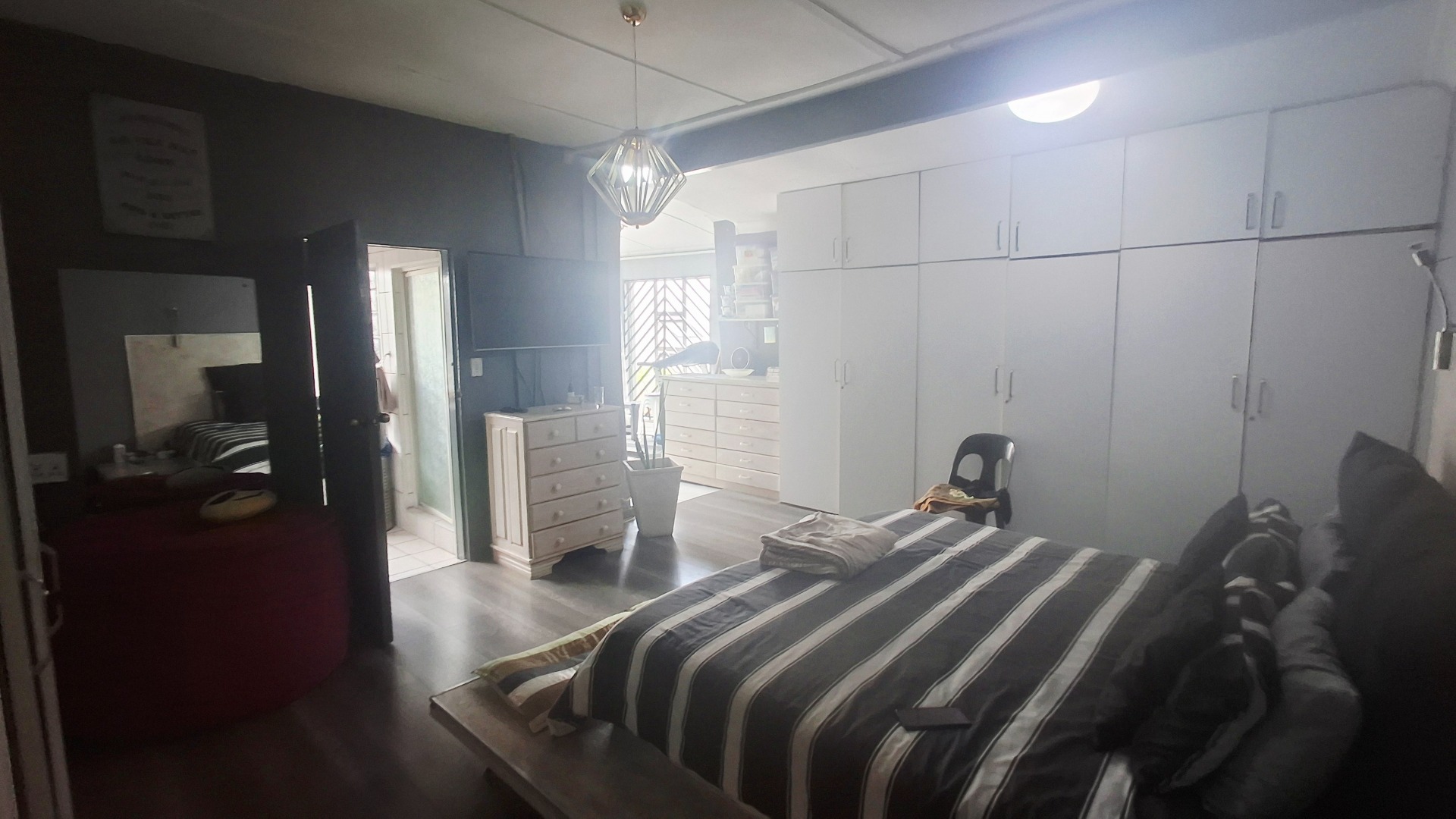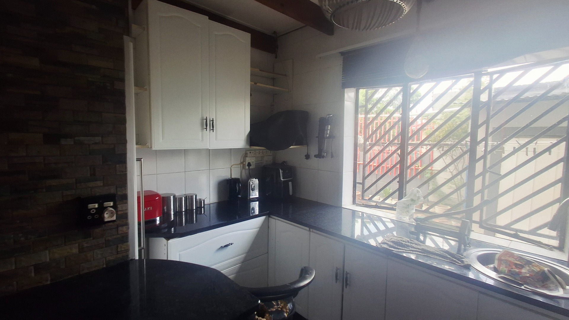 The modern kitchen is both stylish and practical, with granite countertops, a gas hob, and abundant cupboard space. A private guest suite with garden access adds versatility, ideal for extended family, a teen pad, or income-generating potential. Outdoors, you’ll find a tranquil koi pond, domestic accommodation, and a double tandem garage, all enhanced by an electric fence for peace of mind.