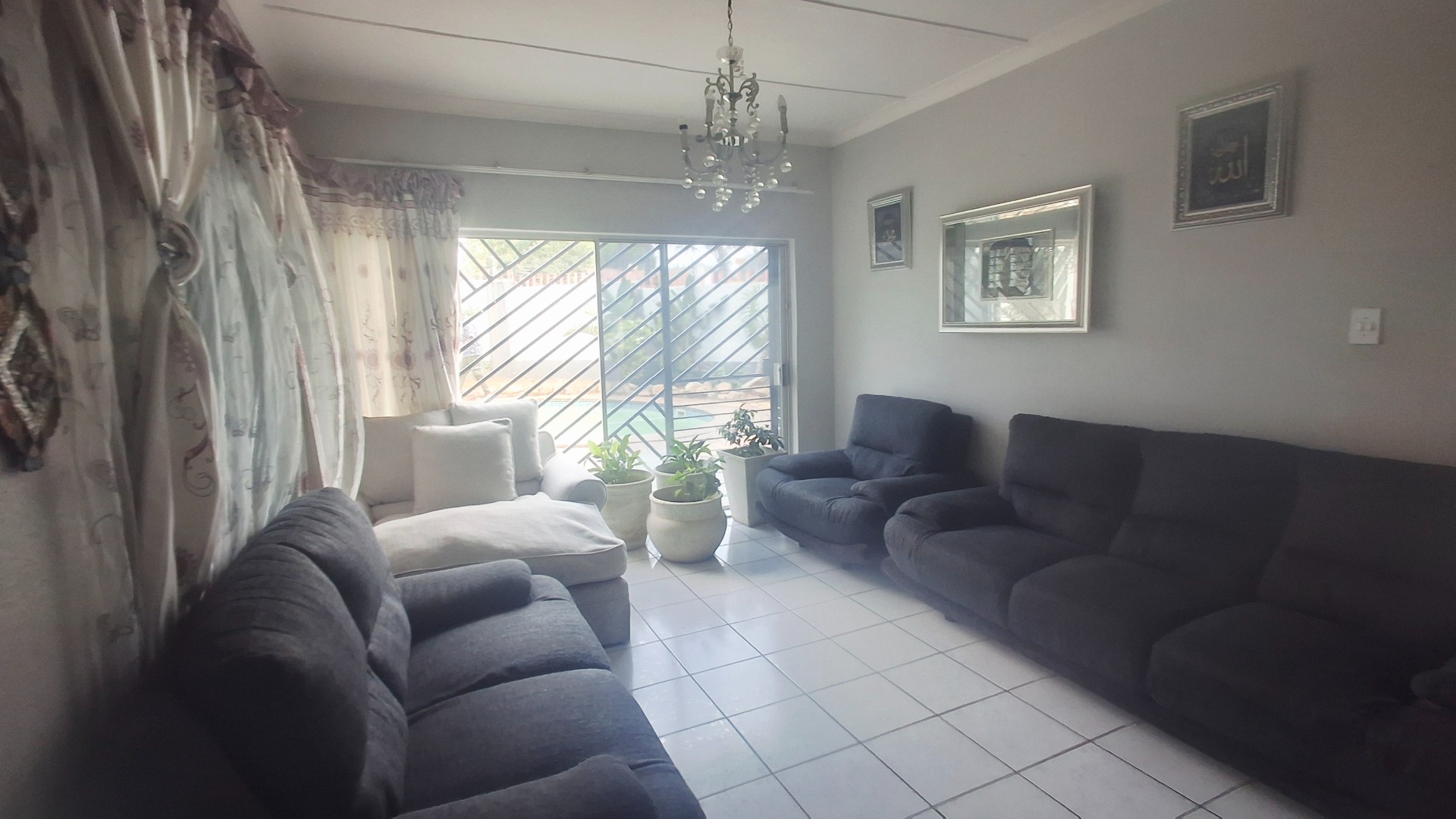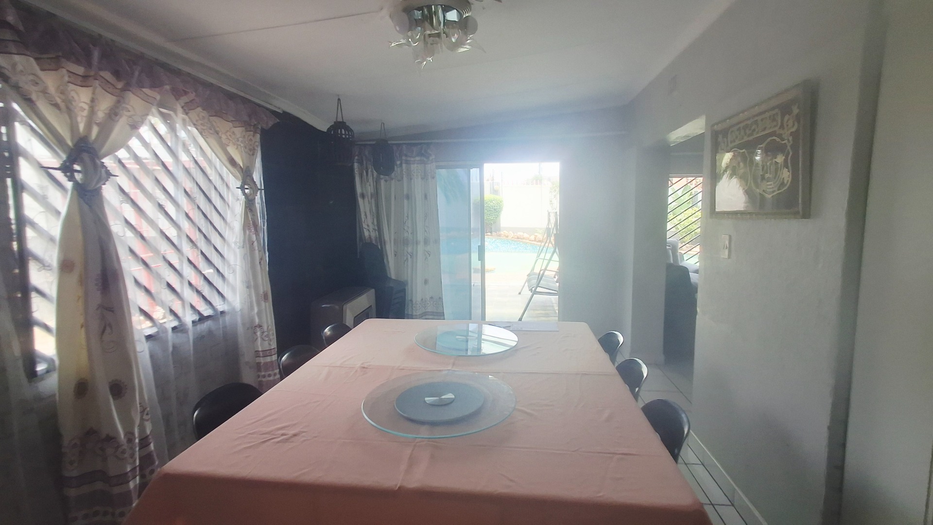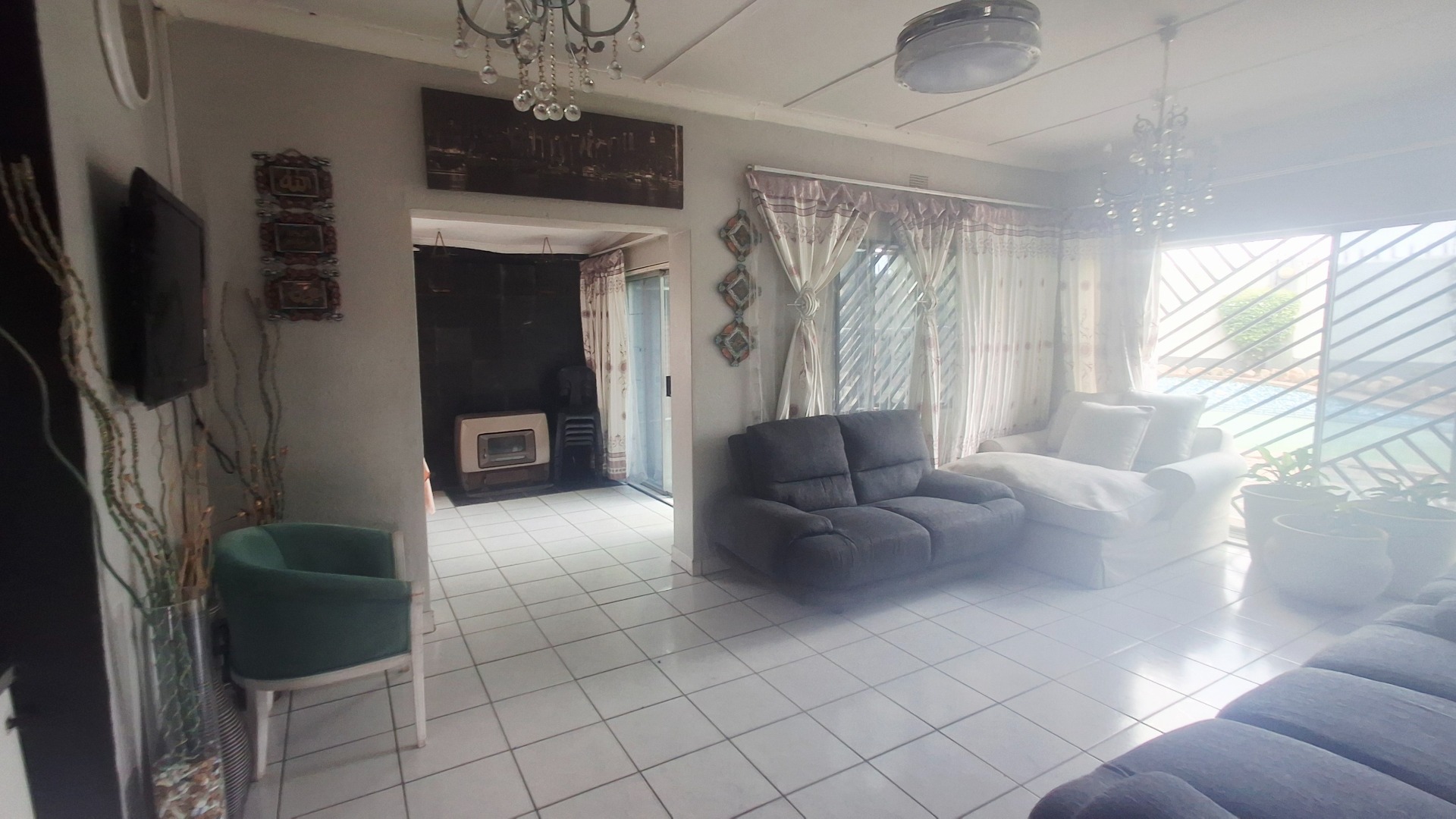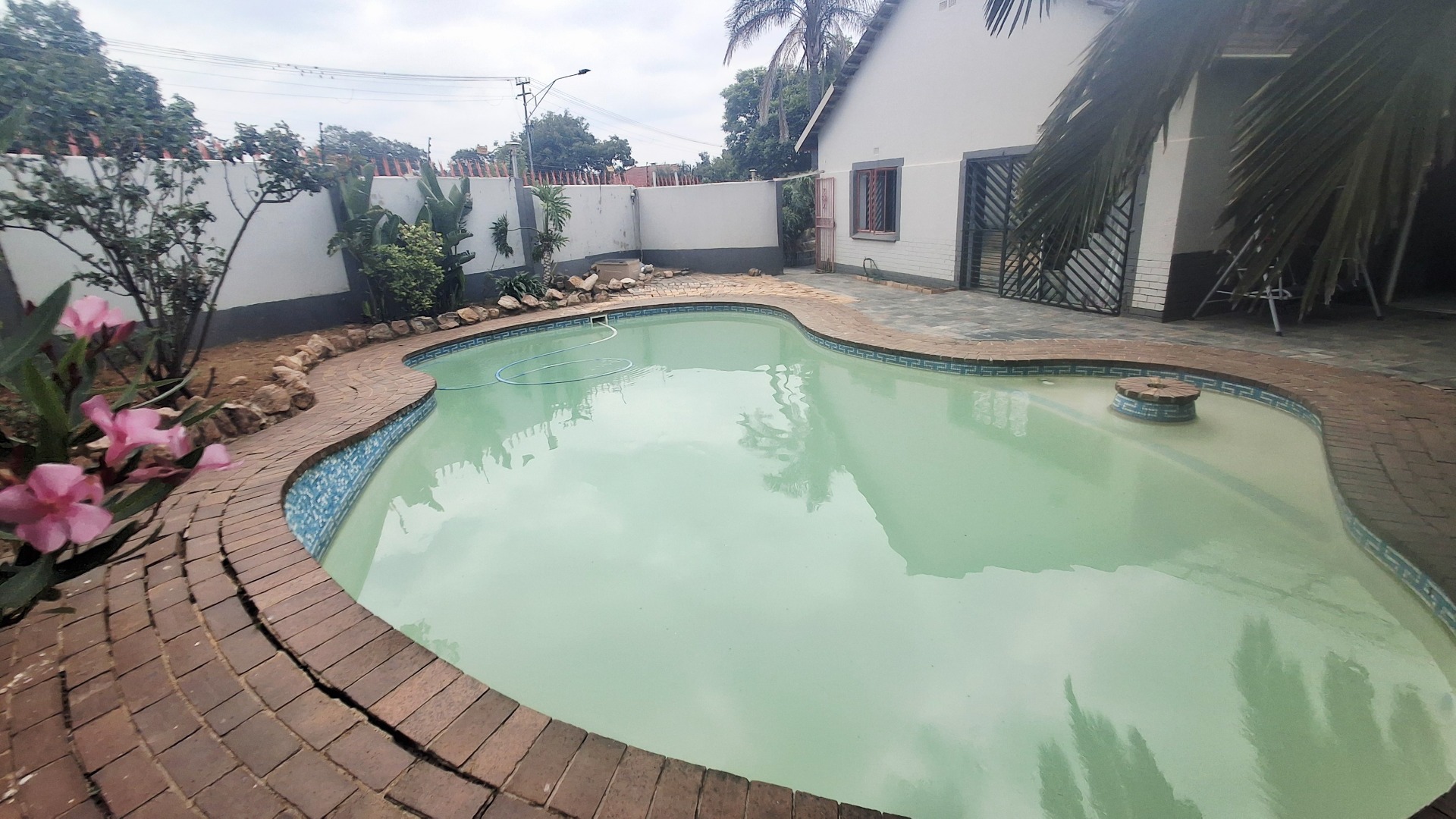 Welcome to this well-appointed family home offering space, comfort, and exceptional entertainment features. Enter through elegant double doors into a welcoming entrance hall with concealed storage, flowing into cozy living areas centered around a character-filled fireplace. Sliding doors throughout create a seamless indoor-outdoor lifestyle, opening directly onto the sparkling pool and covered braai area — perfect for relaxed family living or hosting guests.