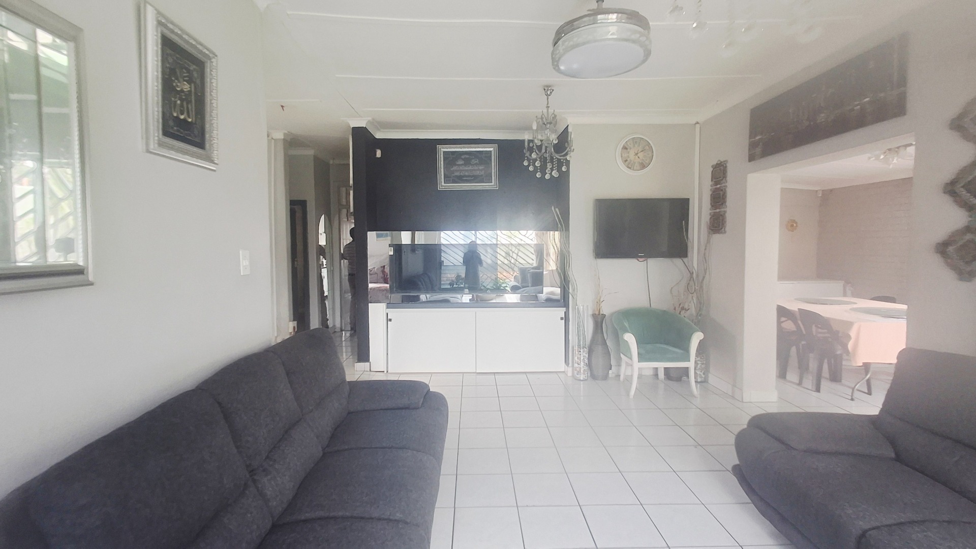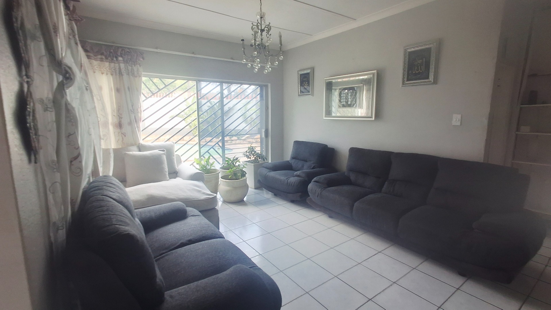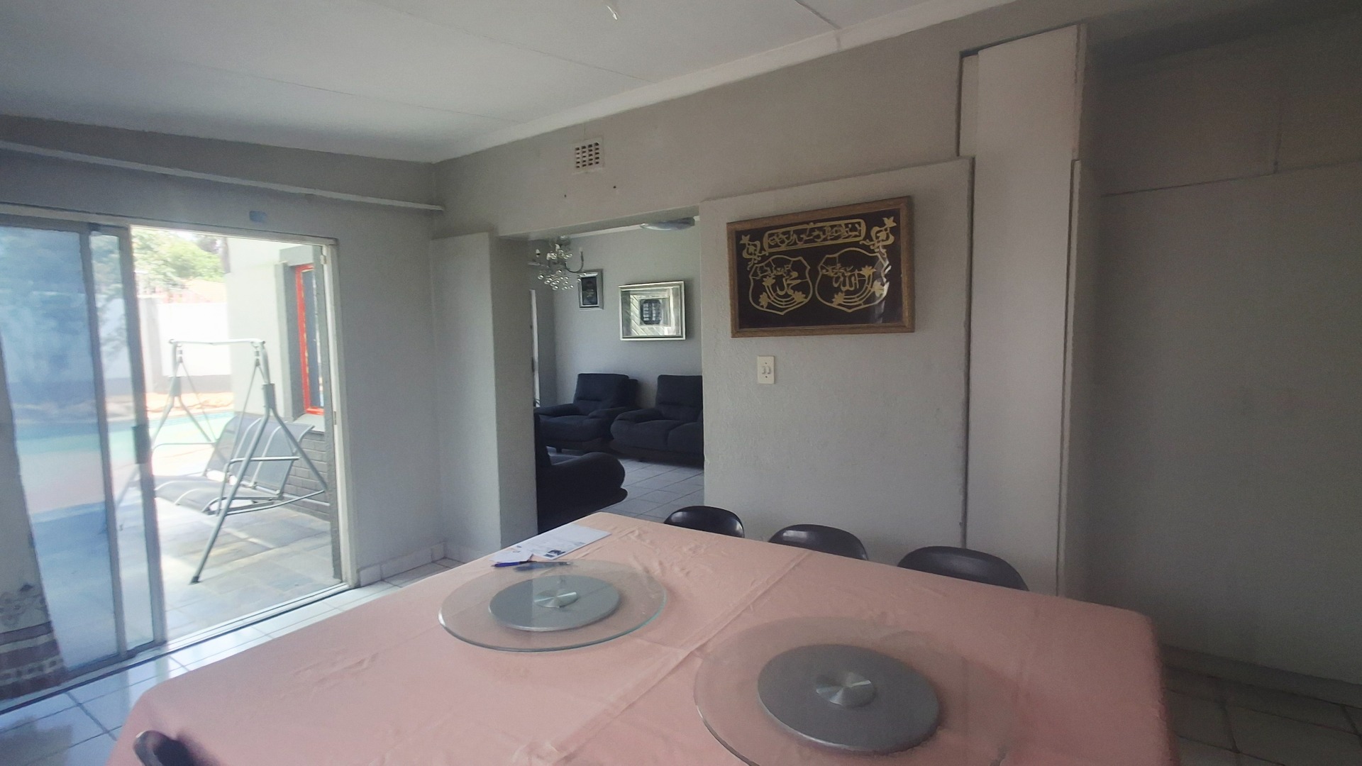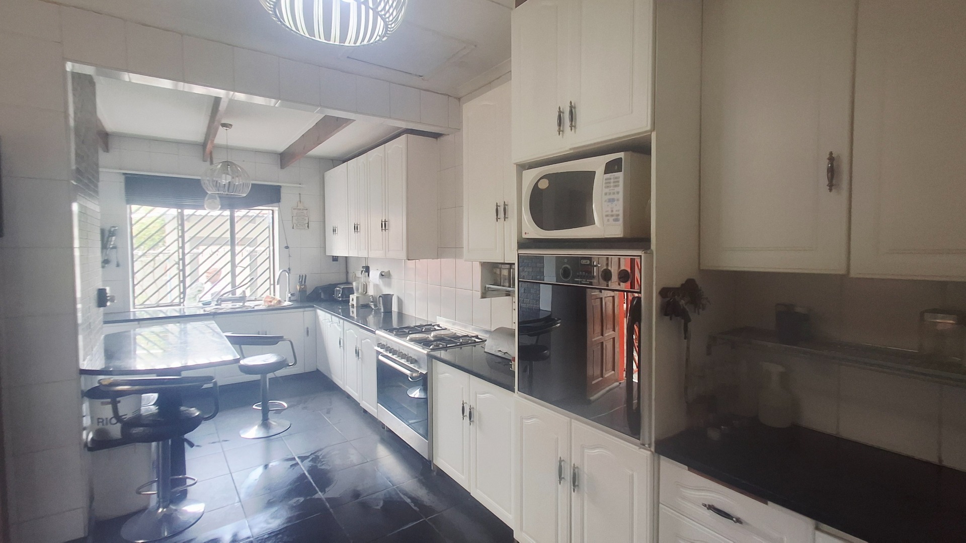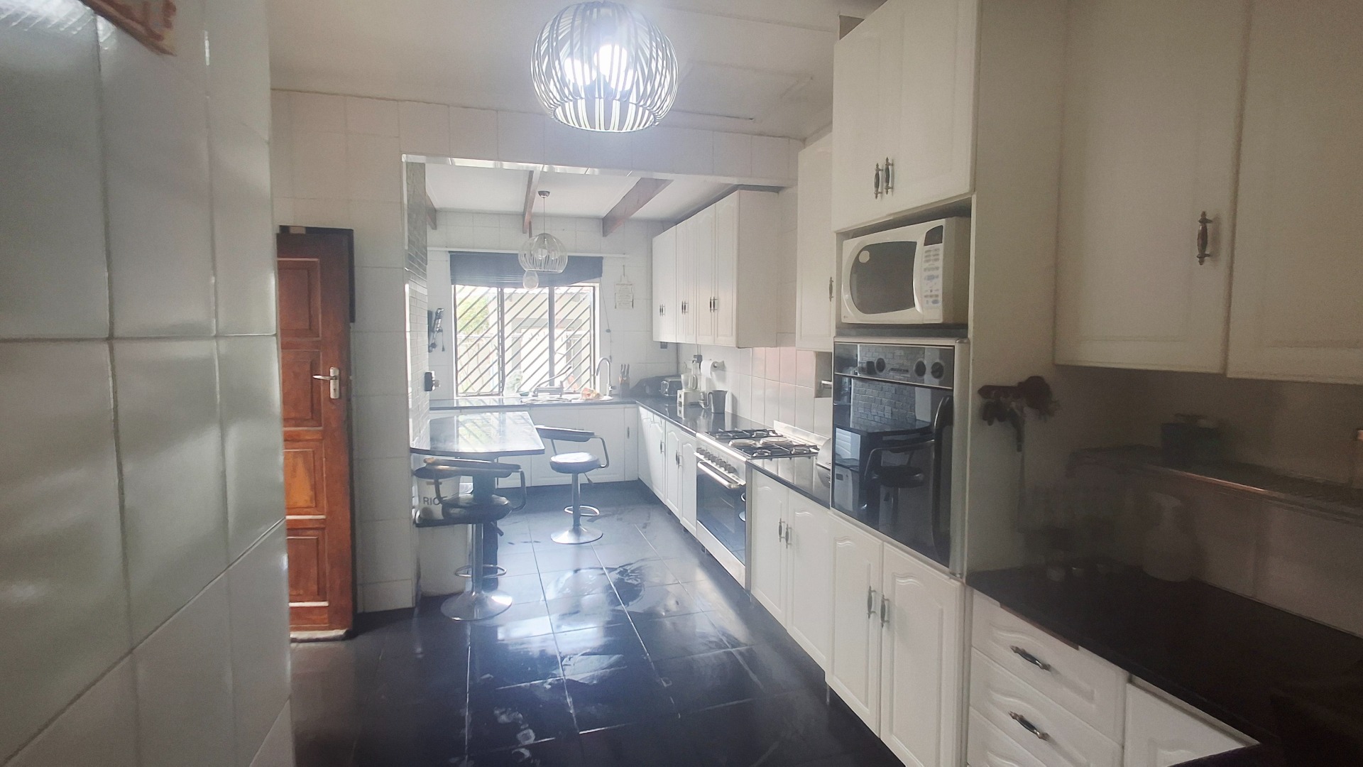 Welcome to this well-appointed family home offering space, comfort, and exceptional entertainment features. Enter through elegant double doors into a welcoming entrance hall with concealed storage, flowing into cozy living areas centered around a character-filled fireplace. Sliding doors throughout create a seamless indoor-outdoor lifestyle, opening directly onto the sparkling pool and covered braai area — perfect for relaxed family living or hosting guests.