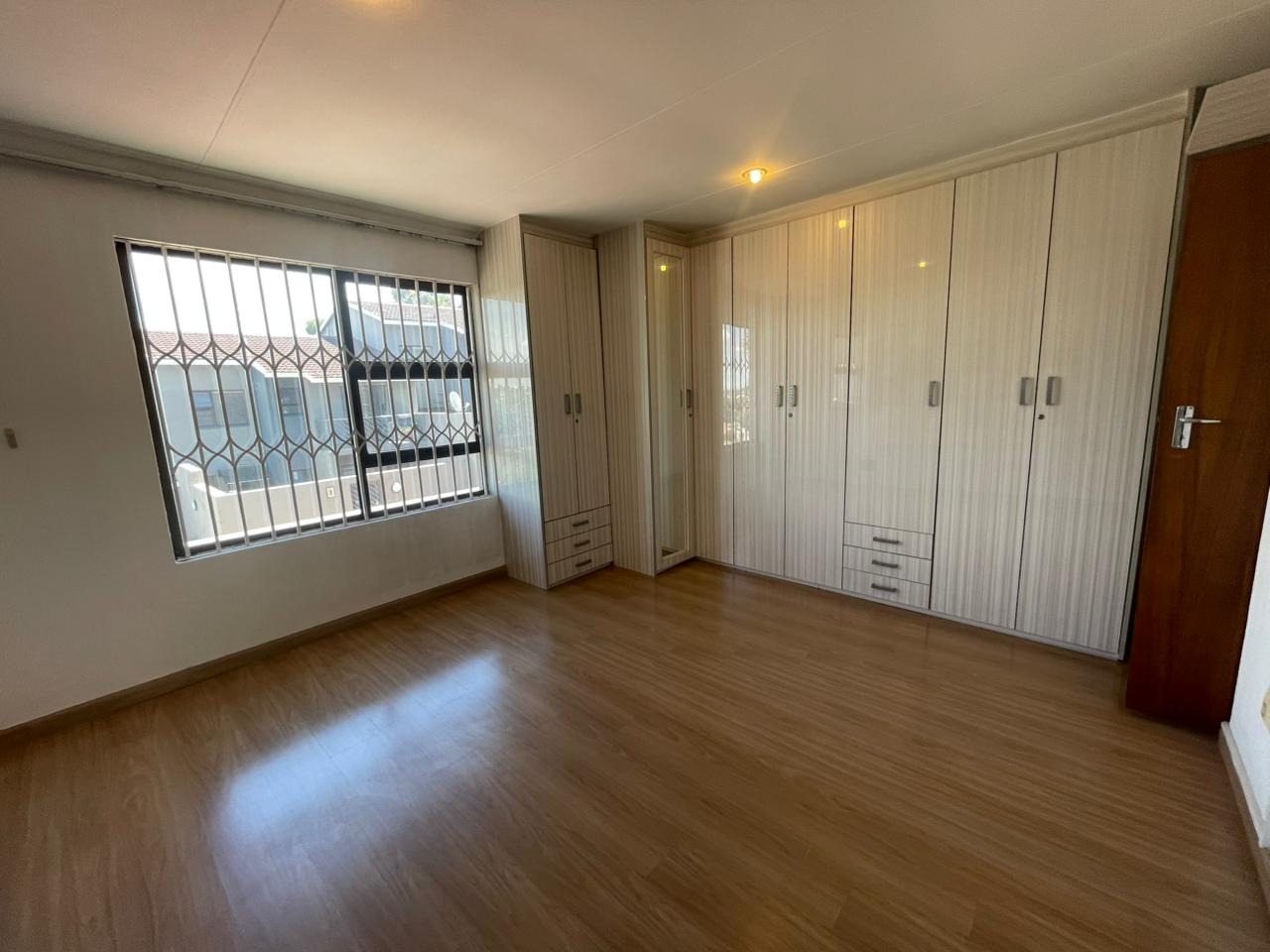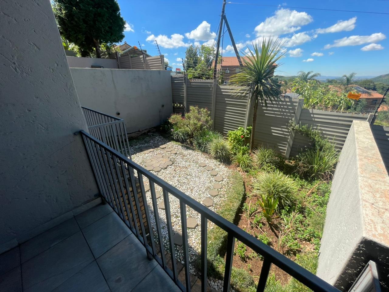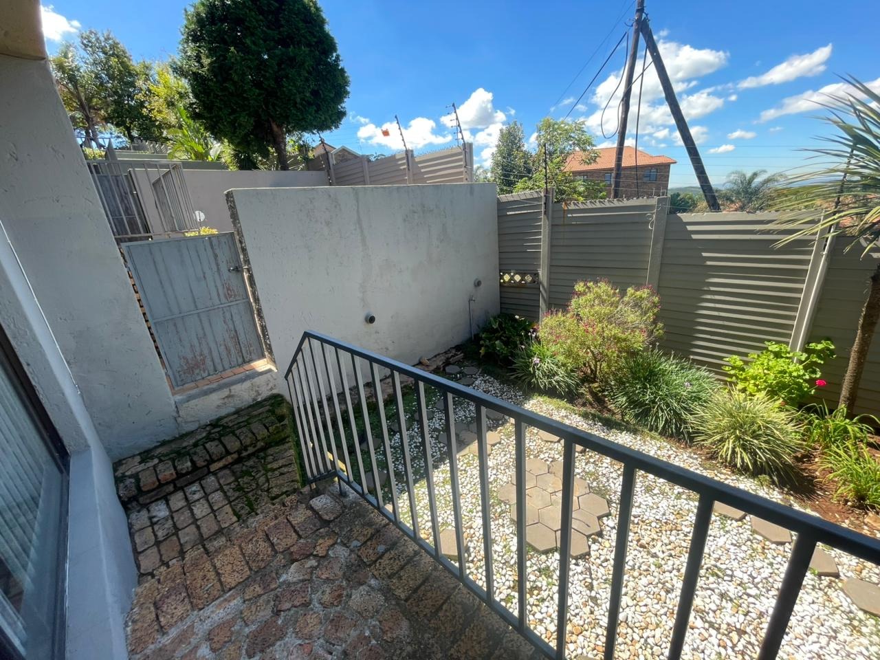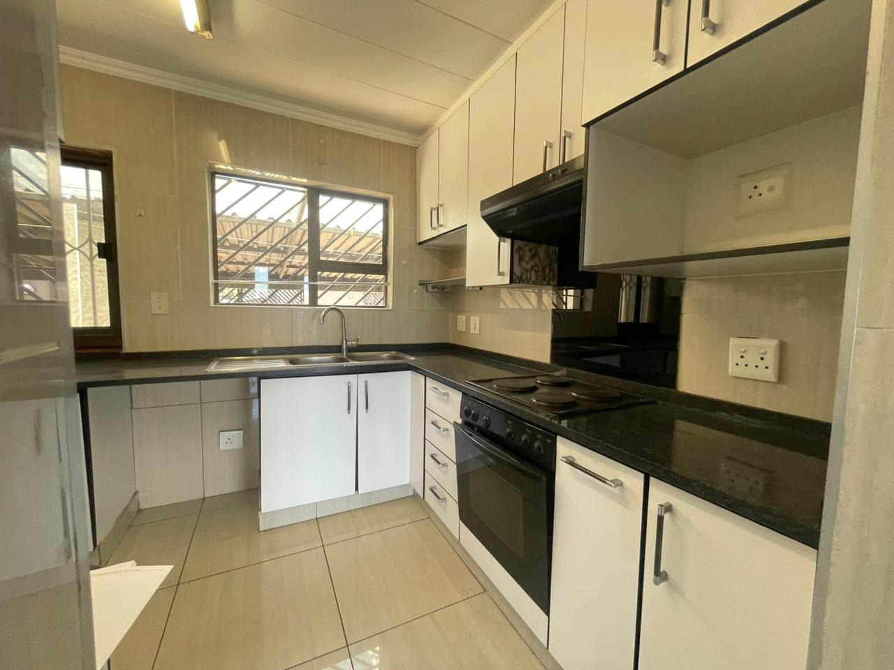 Discover secure and comfortable living in this modern 3-bedroom townhouse, ideally situated in a well-established security complex within the suburban heart of Johannesburg's Ridgeway. Spanning 117 square meters, this residence offers a thoughtfully designed interior with an open-plan layout that seamlessly connects the living spaces. The home features a welcoming lounge, a dedicated dining room, and an additional family TV room, providing ample space for relaxation and entertainment. The contemporary kitchen is a highlight, boasting sleek white cabinetry, dark countertops, a built-in oven and stove, a double stainless steel sink, and a convenient pantry. Tiled floors and a large window with security bars ensure both functionality and peace of mind. The property includes 3 comfortable bedrooms and 2.5 bathrooms, with the added convenience of a guest toilet. Outdoor living is enhanced by a private balcony and patio, perfect for enjoying the scenic views from this elevated position. Residents benefit from secure parking for two vehicles, including integrated carports, and access to a communal braai area and a pool within the complex. Additional features include a garden, domestic rooms, and extra storage space. Security is paramount, with 24-hour security, an access gate, electric fencing, an alarm system, security gates, and burglar bars ensuring a safe environment. The complex is totally walled, providing an extra layer of privacy and protection. Connectivity is assured with fibre internet availability. Ridgeway offers a convenient suburban lifestyle with easy access to local amenities. Key Features: * 3 Bedrooms, 2.5 Bathrooms * 117 sqm Floor Size * Modern Kitchen with Pantry * Open Plan Lounge, Dining, Family TV Room * Balcony, Patio & Garden * Secure Parking for 2 Vehicles * Communal Pool & Braai Area * 24-Hour Security, Electric Fencing, Alarm * Fibre Connectivity * Domestic Rooms & Storage
