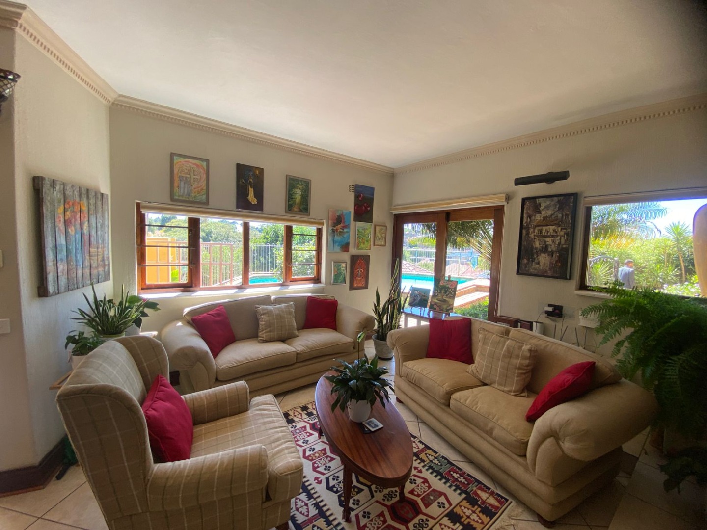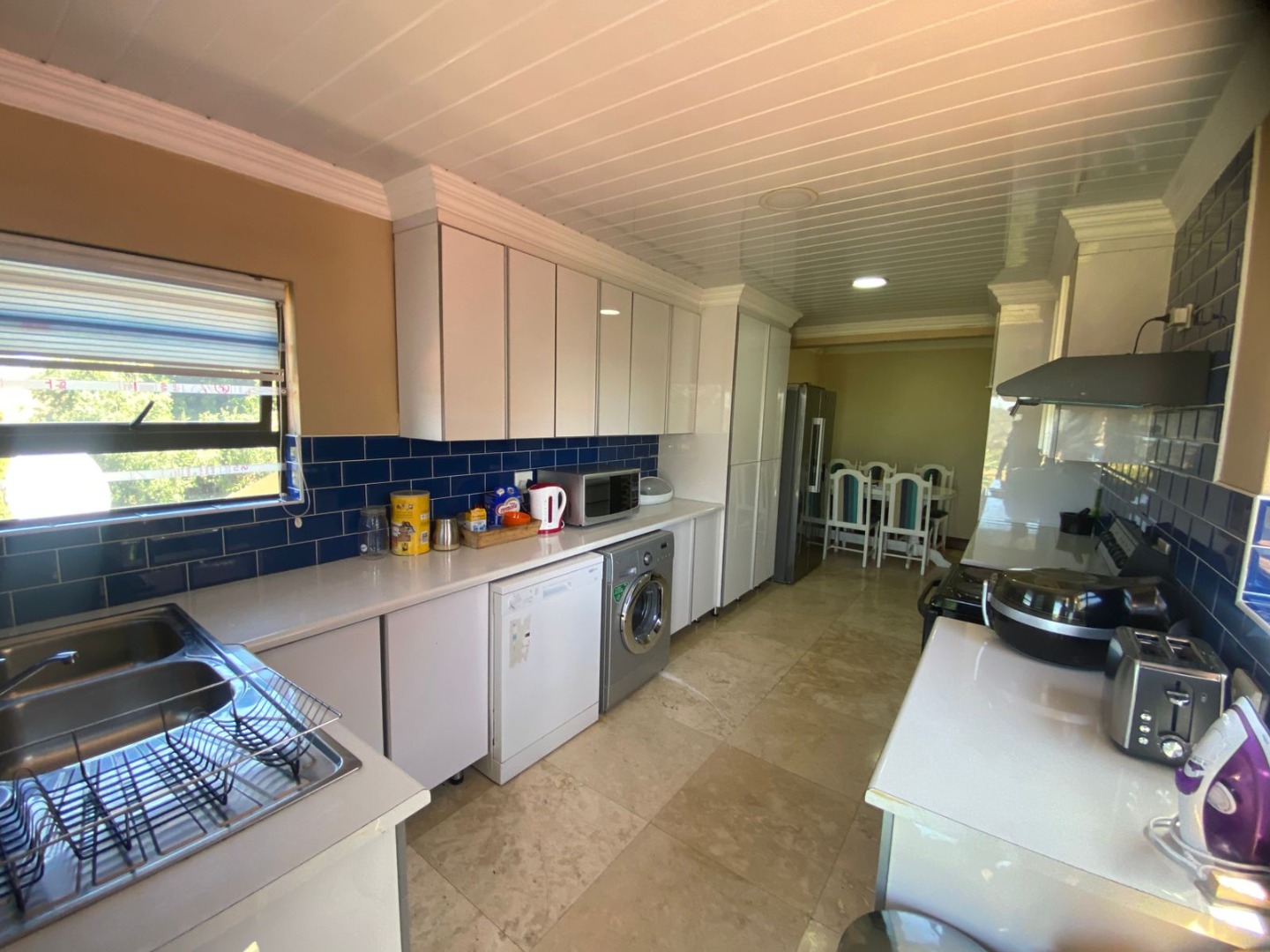 Living and entertaining are effortless with three spacious lounges and two elegant dining rooms, perfect for both relaxed family time and hosting guests. The property also includes two fully equipped kitchens with ample cupboard space, offering flexibility for large families or dual living arrangements.