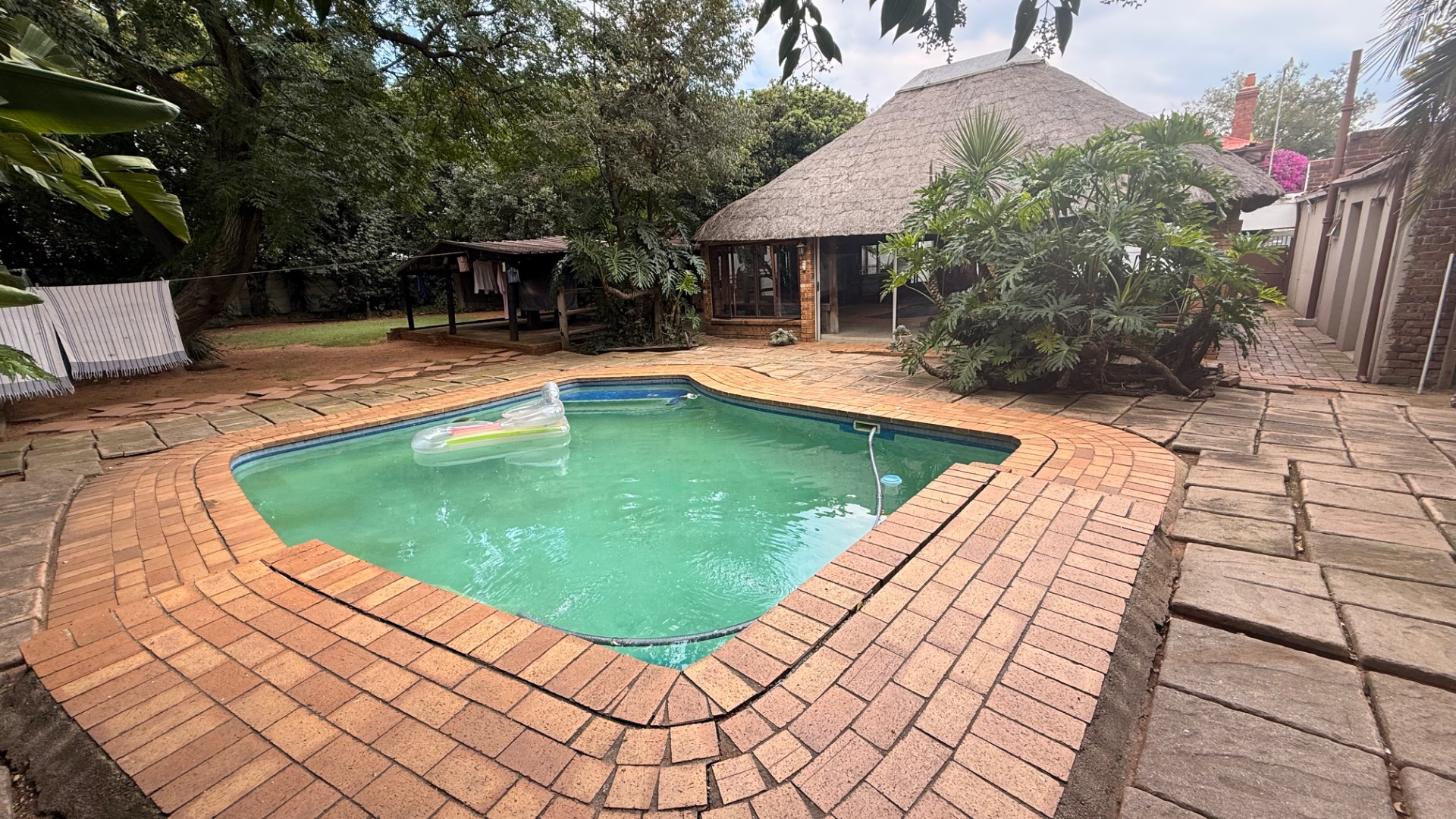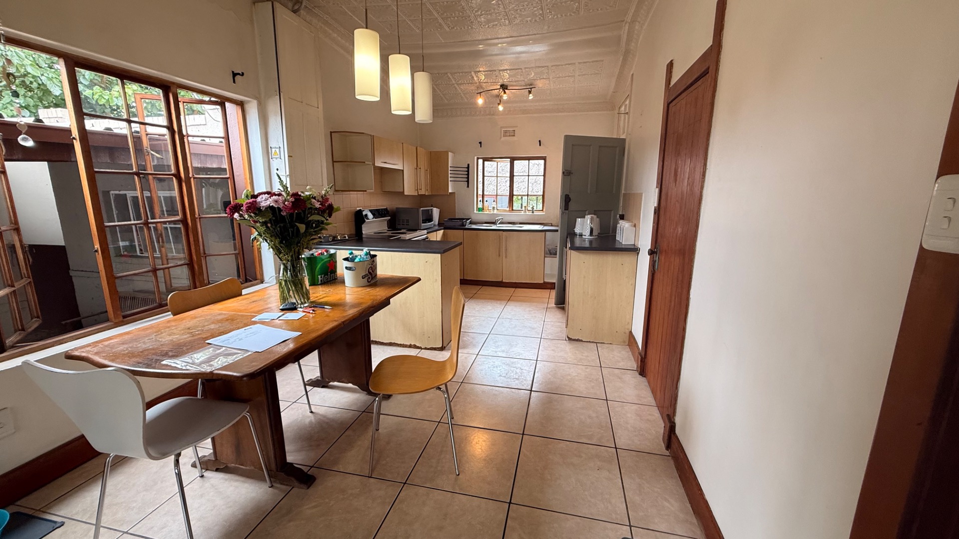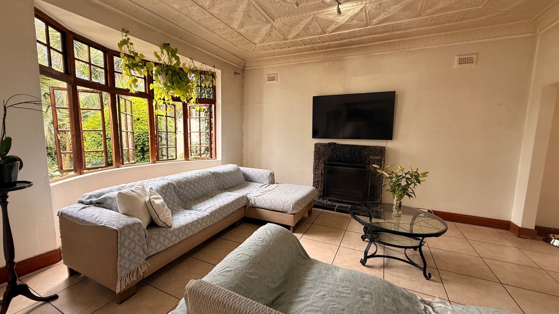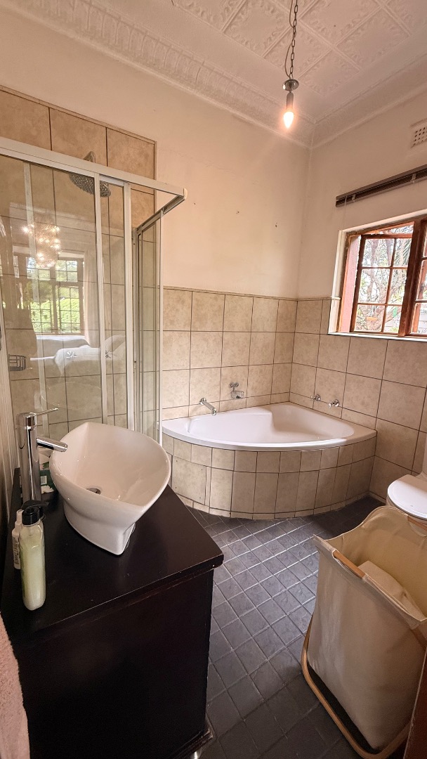 Discover this charming 3-bedroom, 2-bathroom home nestled in the established suburb of The Hill, Johannesburg. The property boasts a distinctive exterior with bay windows and an established garden, offering immediate kerb appeal. Inside, the residence features light-filled living spaces, including a spacious lounge and dining room, enhanced by unique ornate pressed tin ceilings and practical tiled flooring throughout. A cozy sunroom provides an ideal spot for relaxation. The functional kitchen offers ample cabinetry and also benefits from a decorative pressed tin ceiling. The home provides three comfortable bedrooms and two well-appointed bathrooms, including two ensuites for added convenience. Outdoor living is well catered for with a refreshing pool, a lapa perfect for entertaining, and a private garden. Additional features include two dedicated parking spaces and domestic rooms. The presence of solar panels contributes to potential energy efficiency, making this a practical and appealing family home in a metropolitan setting.