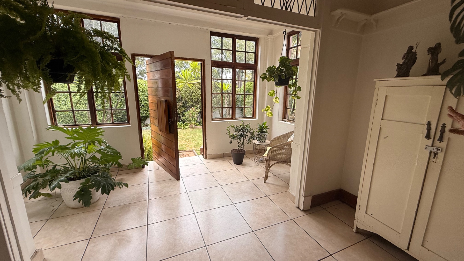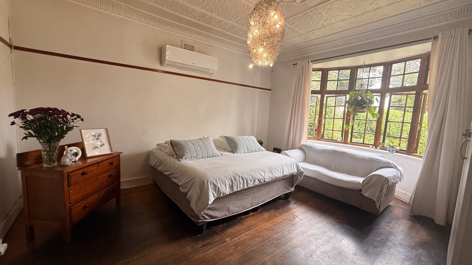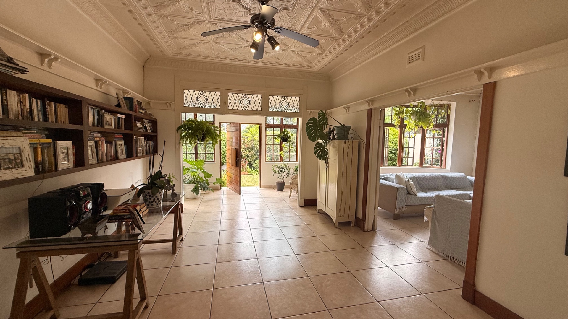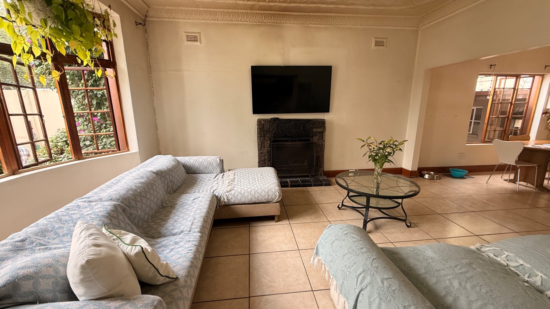 Discover this charming 3-bedroom, 2-bathroom home nestled in the established suburb of The Hill, Johannesburg. The property boasts a distinctive exterior with bay windows and an established garden, offering immediate kerb appeal. Inside, the residence features light-filled living spaces, including a spacious lounge and dining room, enhanced by unique ornate pressed tin ceilings and practical tiled flooring throughout. A cozy sunroom provides an ideal spot for relaxation. The functional kitchen offers ample cabinetry and also benefits from a decorative pressed tin ceiling. The home provides three comfortable bedrooms and two well-appointed bathrooms, including two ensuites for added convenience. Outdoor living is well catered for with a refreshing pool, a lapa perfect for entertaining, and a private garden. Additional features include two dedicated parking spaces and domestic rooms. The presence of solar panels contributes to potential energy efficiency, making this a practical and appealing family home in a metropolitan setting.
