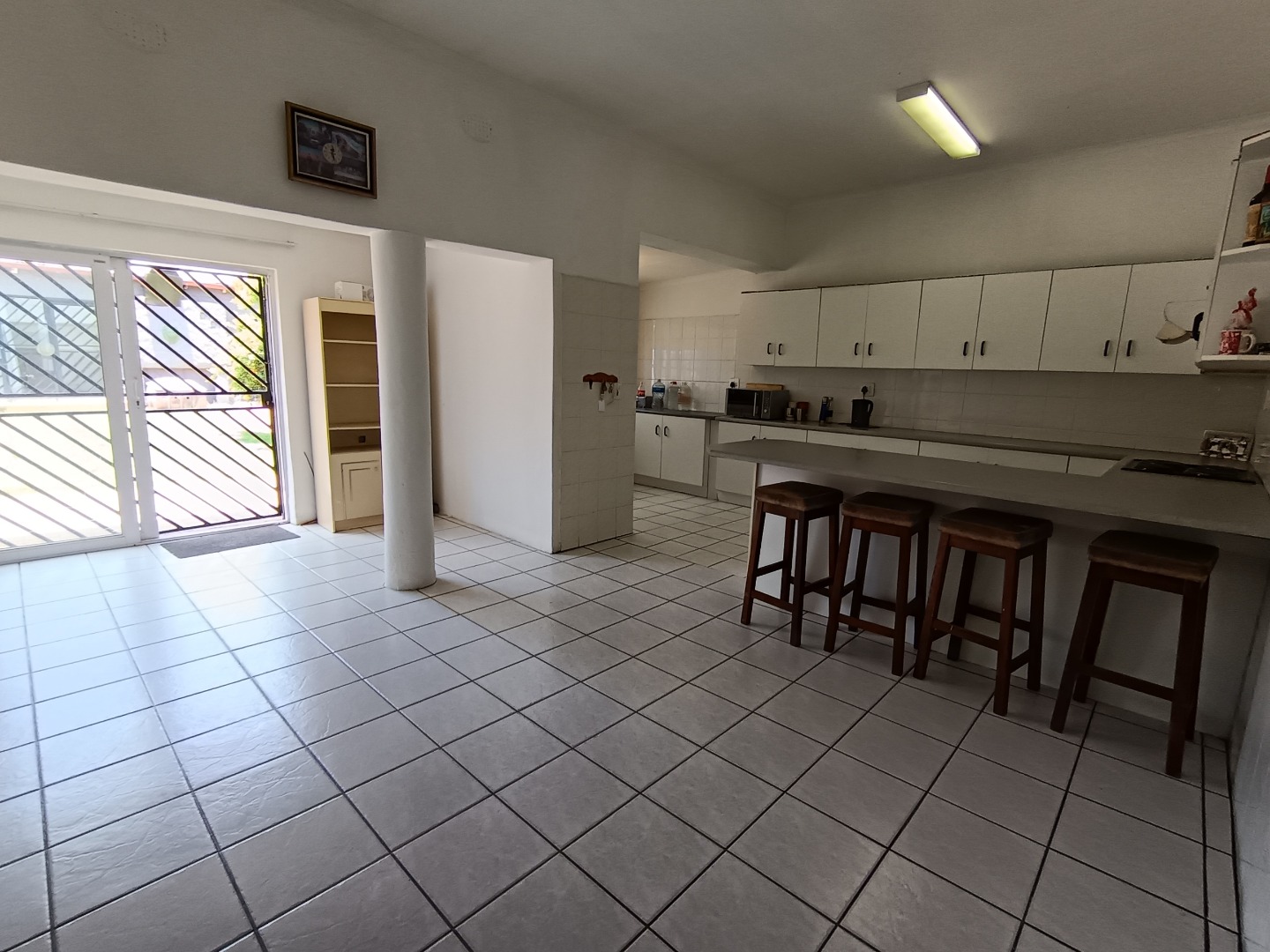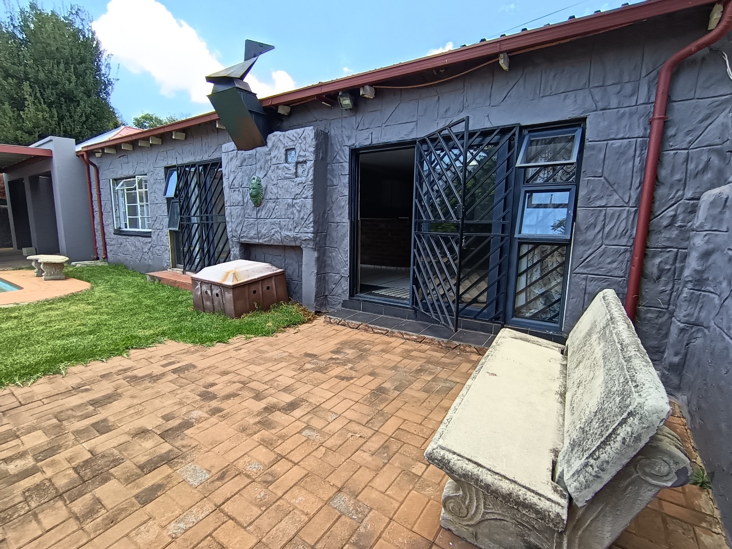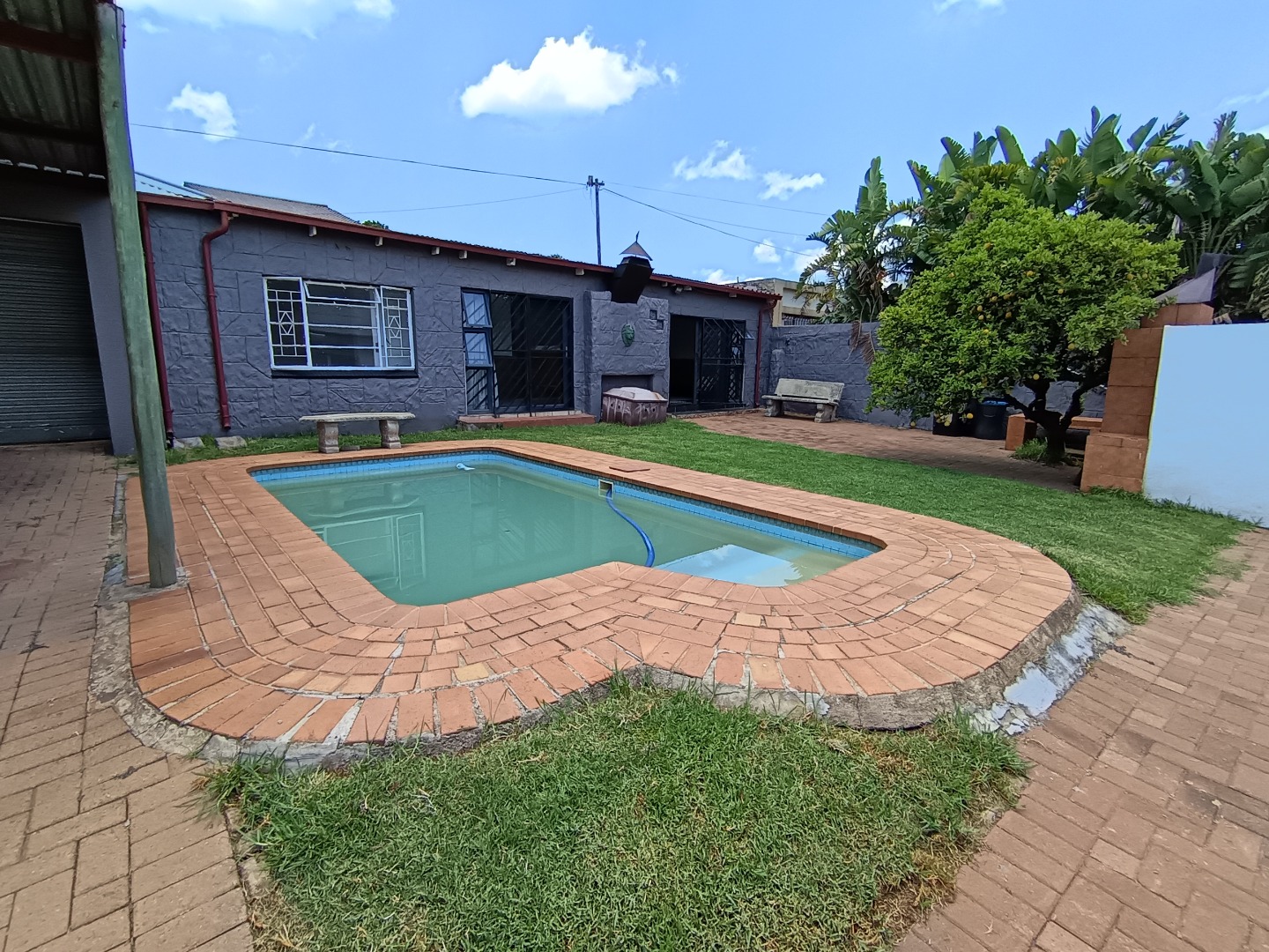 This inviting 4-bedroom, 3-bathroom family home is situated in the established Johannesburg suburb of The Hill. The property presents a welcoming kerb appeal with its light-colored exterior, architectural columns, and a spacious, well-maintained lawn complemented by an extensive paved driveway, offering ample parking and leading to a double garage. Inside, the residence features an open-plan layout, seamlessly connecting the living and dining areas, both benefiting from abundant natural light. The functional kitchen boasts ample white cabinetry, generous counter space, an integrated oven and hob, and a convenient breakfast bar, ideal for family meals. A dedicated family TV room provides additional versatile living space, and a built-in bar adds to the entertainment options. The four comfortable bedrooms are well-proportioned, with one offering an en-suite bathroom for added privacy. A guest toilet is also available. The property further enhances its appeal with a separate flatlet, providing excellent potential for extended family, rental income, or a private home office. Outdoor living is a highlight, featuring a private rectangular swimming pool perfect for relaxation and entertaining. An outdoor braai area and a mature garden with a fruit tree create an ideal setting for gatherings. The property is secured with a fence and an access gate, and security bars on windows offer peace of mind. Pets are allowed, making this a truly family-friendly environment. * 4 Bedrooms, 3 Bathrooms * Private Swimming Pool * Outdoor Braai Area * Separate Flatlet * Double Garage & Paved Driveway * Open-Plan Living & Dining * Family TV Room & Built-in Bar * Pet-Friendly Garden with Fence & Access Gate