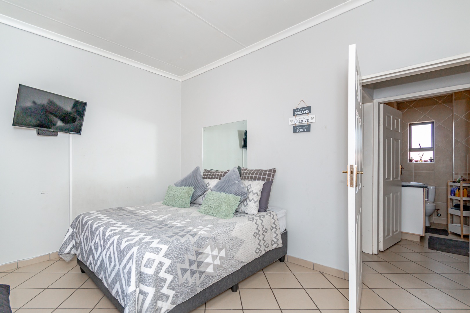 The property offers two comfortable bedrooms, providing ample space for residents. These are complemented by a single, well-appointed bathroom, ensuring practicality and ease of use. The design prioritises efficient use of the 65 sqm erf, creating a cosy yet functional home environment.