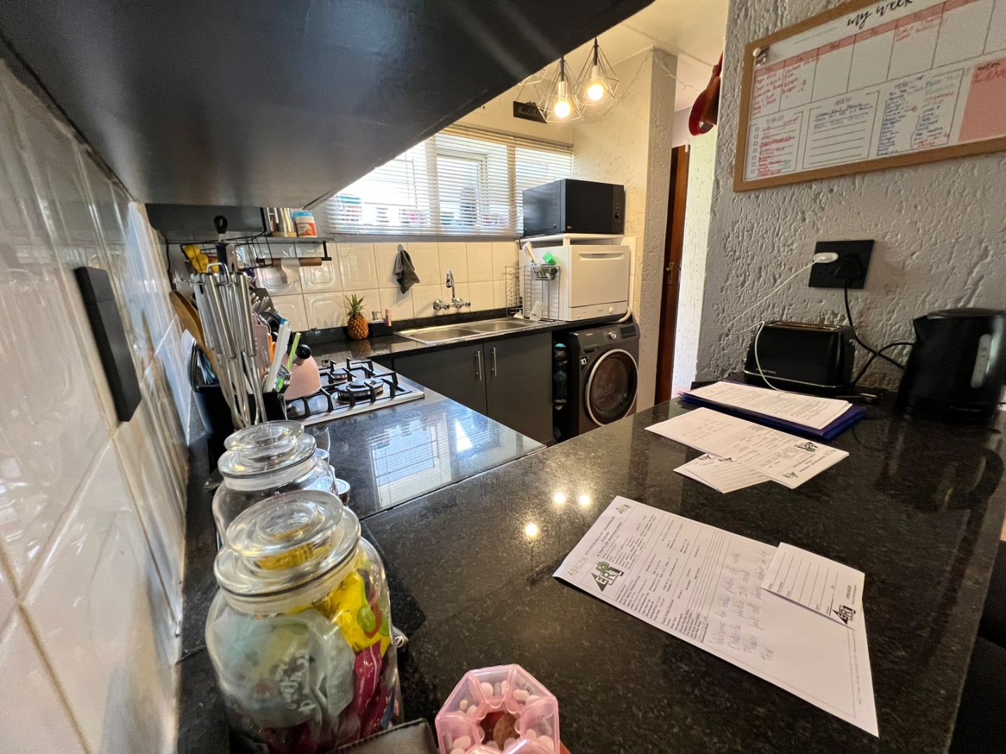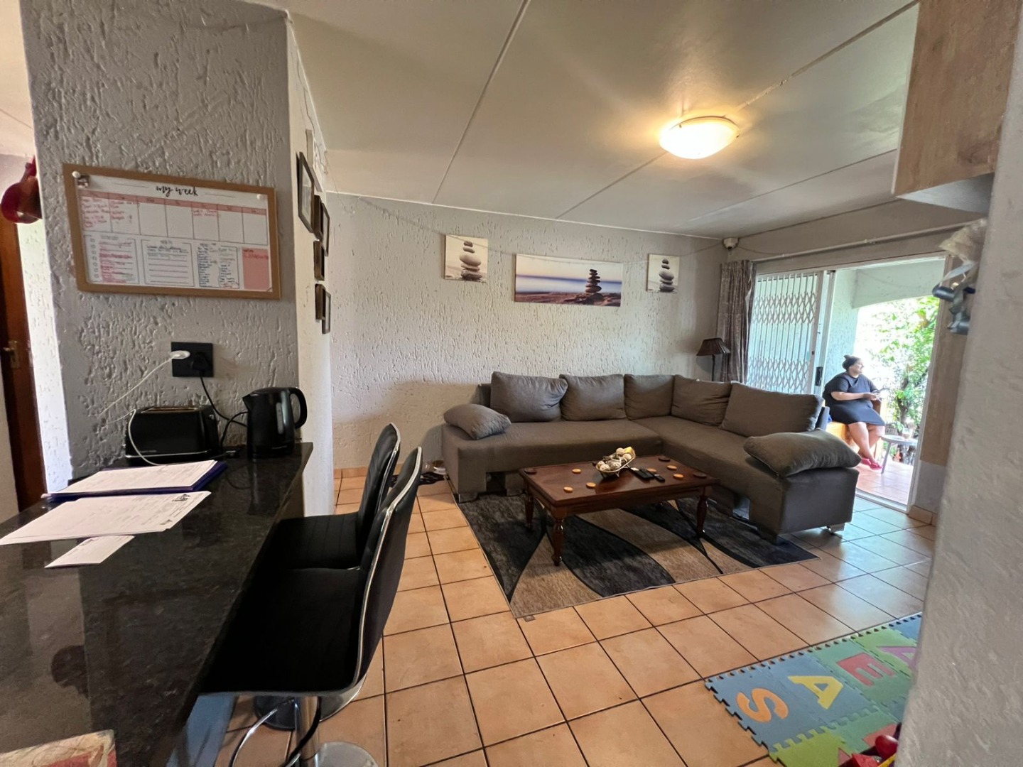 As you enter, you are welcomed by a charming stoep/balcony area, perfect for enjoying your morning coffee or relaxing after a long day. Inside, you’ll find a beautiful kitchen with built-in cupboards, offering ample storage and functionality. The kitchen flows seamlessly into a warm and inviting lounge area, ideal for family time or entertaining guests.