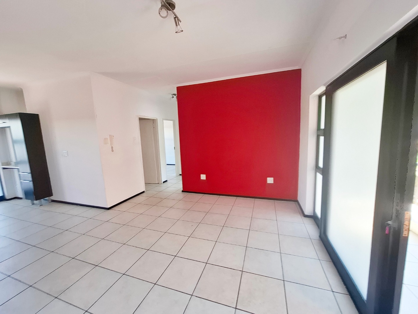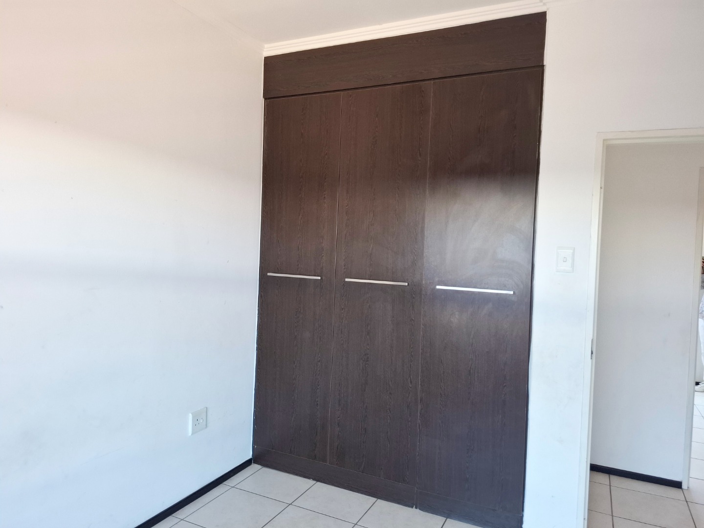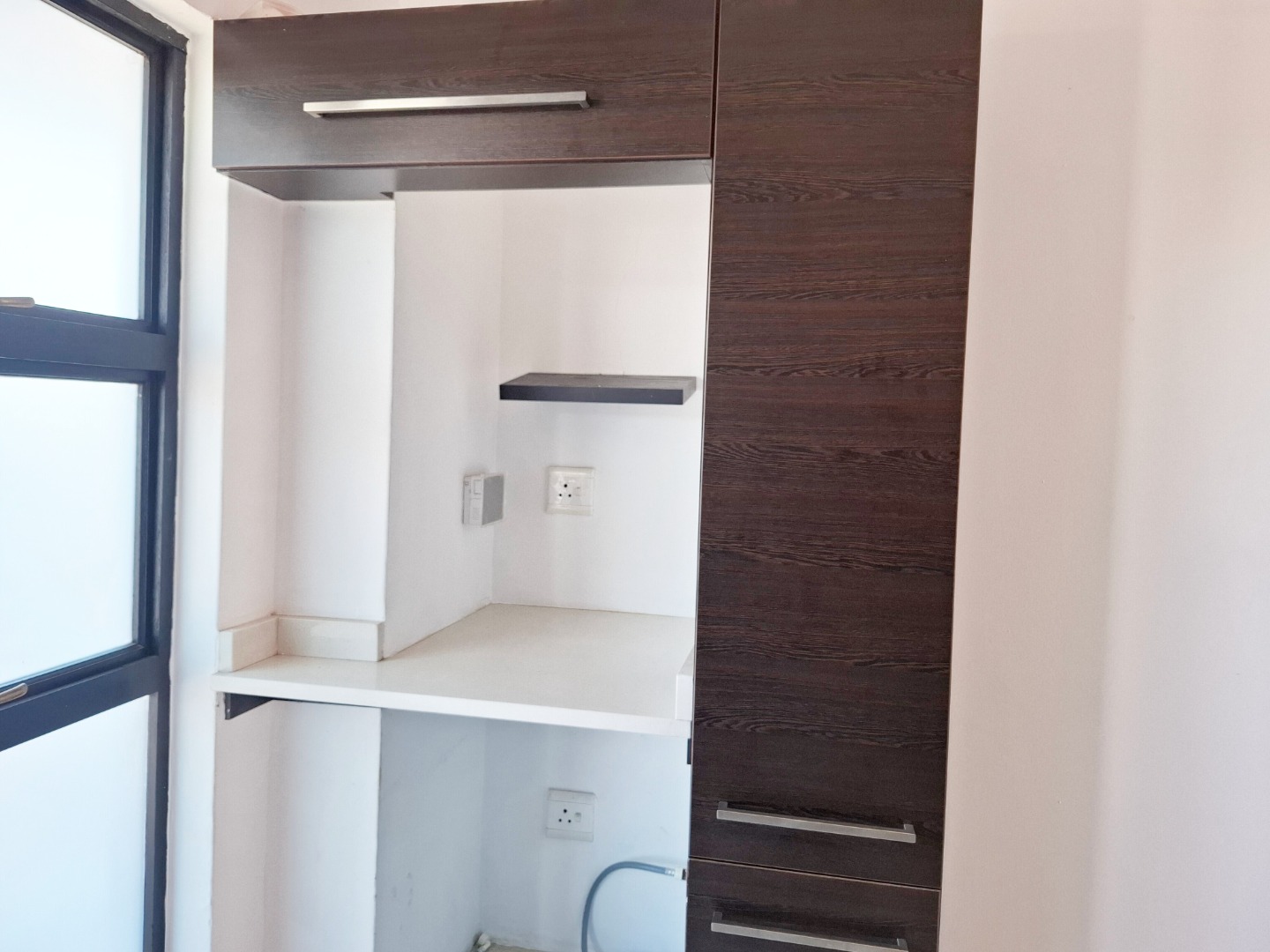 The apartment features two well-sized bedrooms, both fitted with built-in cupboards to provide ample storage space, along with one modern full bathroom designed for both style and practicality. The entire unit is fully tiled, offering a sleek, low-maintenance finish throughout.
