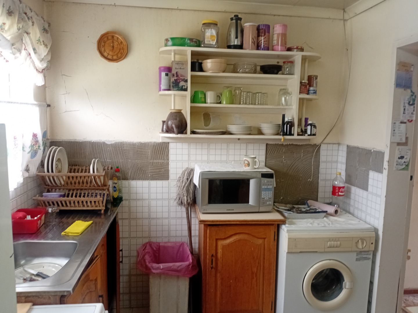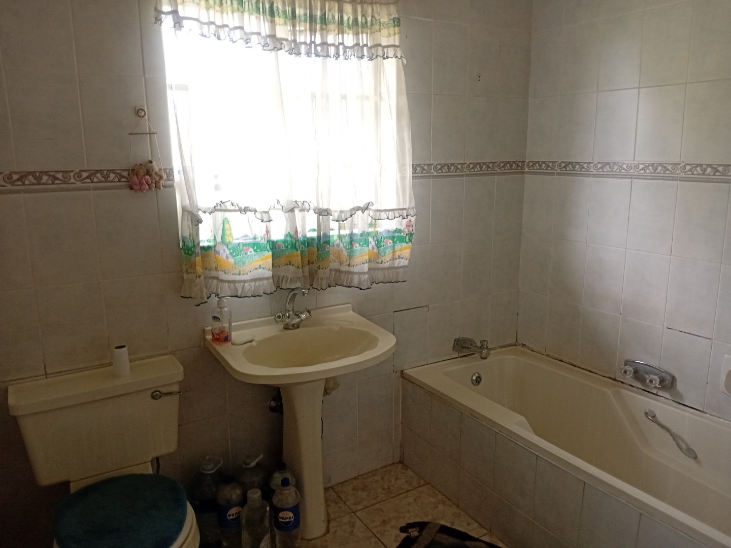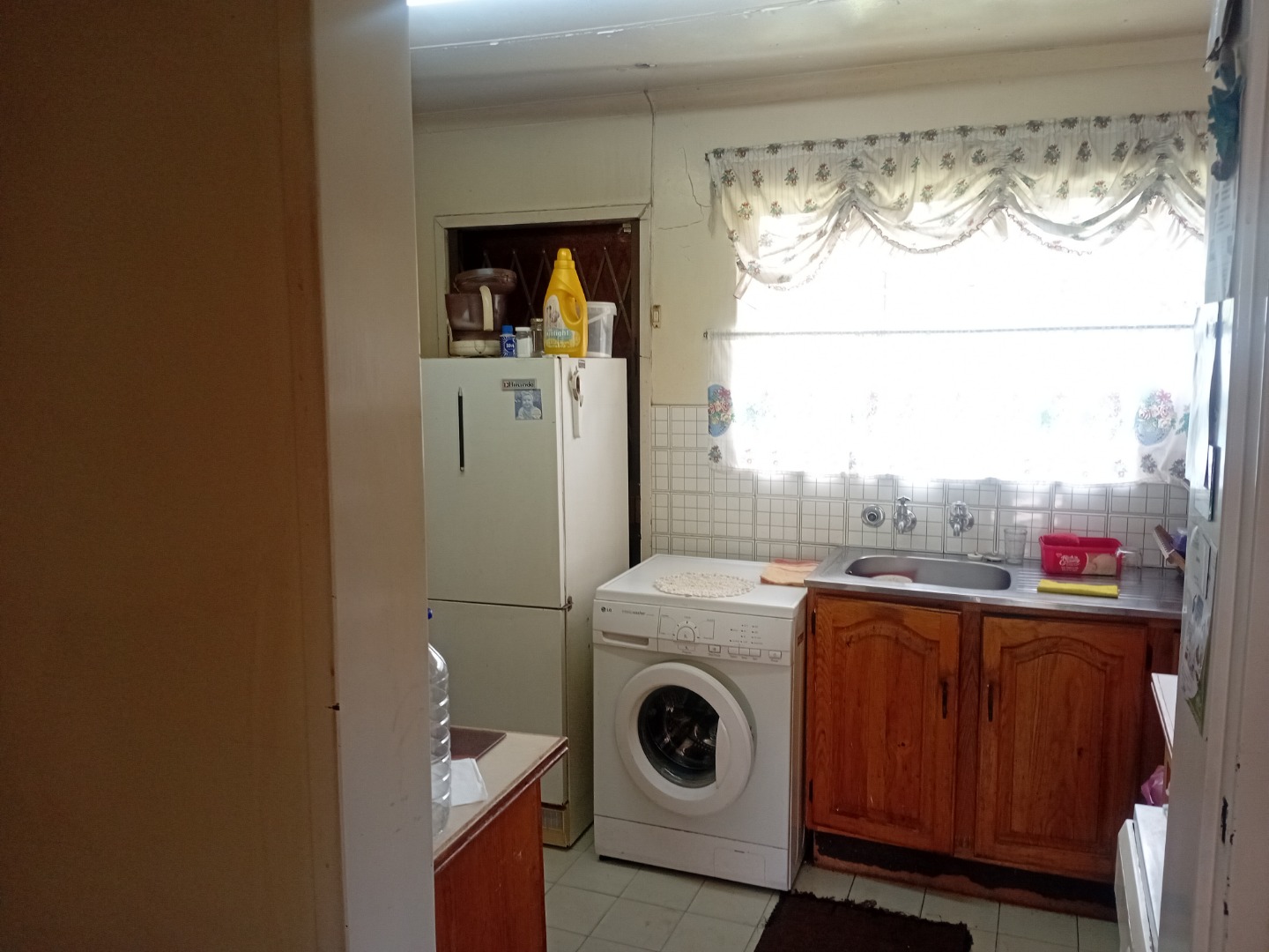 The living areas are generously sized, with a welcoming lounge and a separate dining room—perfect for family living and entertaining. The kitchen comes fully fitted with built-in cupboards, along with a dedicated laundry room for added functionality.