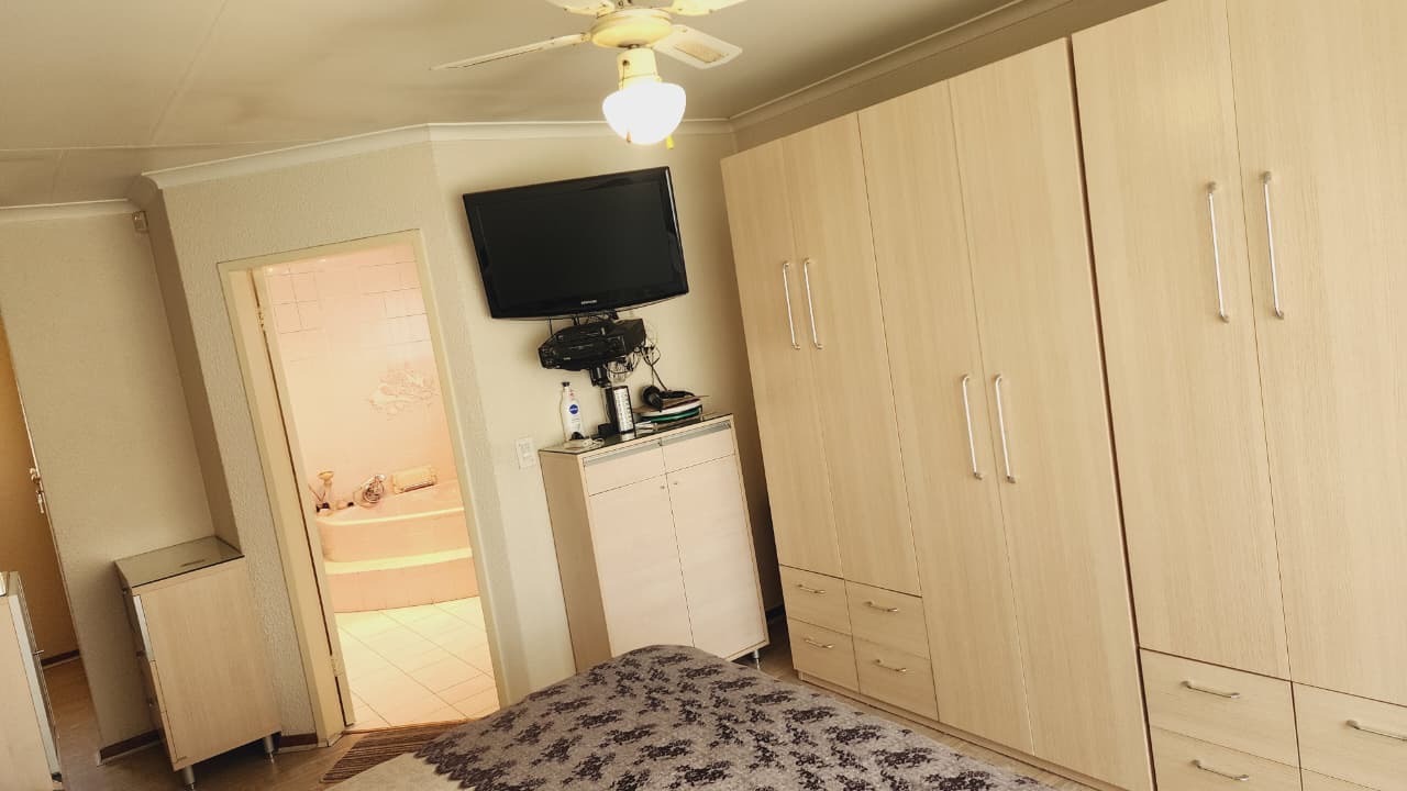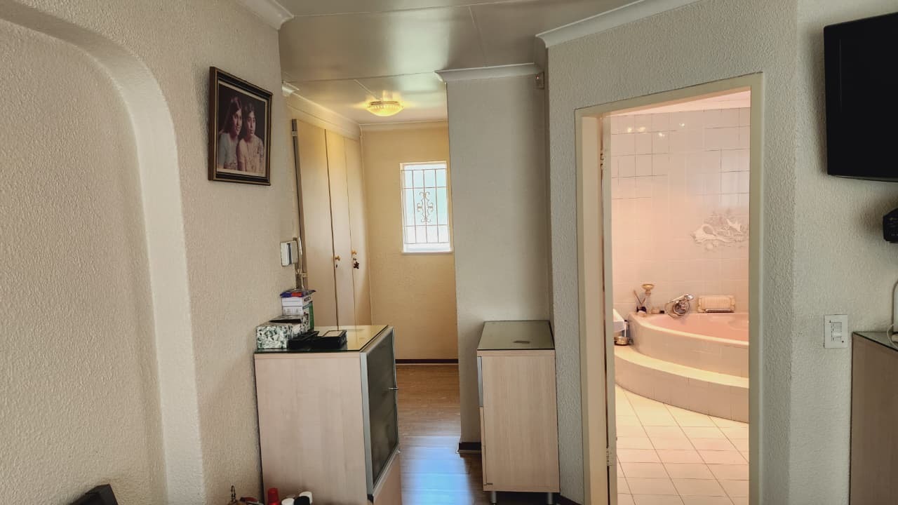 Discover this well-maintained residential property located in the desirable suburb of Winchester Hills, Johannesburg. Presenting a welcoming kerb appeal, the home features a classic terracotta-tiled roof, a light-coloured exterior, and a secure perimeter wall complemented by electric fencing. A neat brick-paved driveway leads to the covered parking and double garage, surrounded by mature trees and established landscaping that enhance the property's charm. Step inside to find a functional layout designed for comfortable living. The residence offers a spacious lounge, providing a dedicated area for relaxation and entertainment. The kitchen, while retaining a classic aesthetic with wooden cabinetry and tiled surfaces, is equipped with a built-in oven and separate electric hob, offering ample storage and counter space for daily culinary needs. Natural light streams in through the windows, creating a bright and inviting atmosphere. This home comprises three well-proportioned bedrooms, ensuring comfortable accommodation for the entire family. Complementing these are two and a half bathrooms, providing convenience and privacy. The interior spaces are practical and ready for personal touches, offering a solid foundation for a new owner to modernise to their taste. Outdoor living is well catered for on the generous 1085 sqm erf. The property boasts a manicured lawn, paved pathways, and a covered patio, perfect for alfresco dining or enjoying the South African climate. The mature palm trees and lush garden areas create a serene environment, while the double garage provides secure parking and additional storage. Security is a priority, with features including a robust perimeter wall, electric fencing, and security bars on windows, ensuring peace of mind for residents. This property offers a secure and private sanctuary within a vibrant community. Winchester Hills is a sought-after suburban area in Johannesburg, known for its family-friendly atmosphere and convenient access to local amenities, schools, and major transport routes. It offers a balanced lifestyle with a blend of residential tranquility and urban accessibility. Key Features: * 3 Bedrooms * 2.5 Bathrooms * 1 Lounge * 1 Kitchen * 2 Garages * 1085 sqm Erf Size * Electric Fencing * Perimeter Wall * Mature Garden