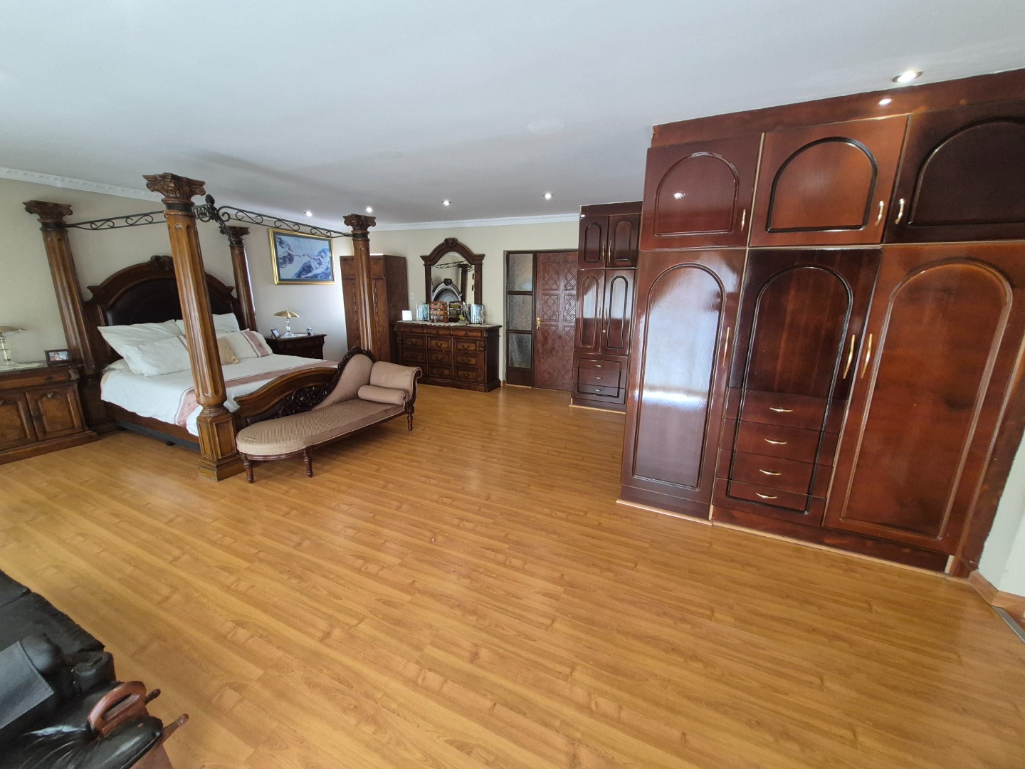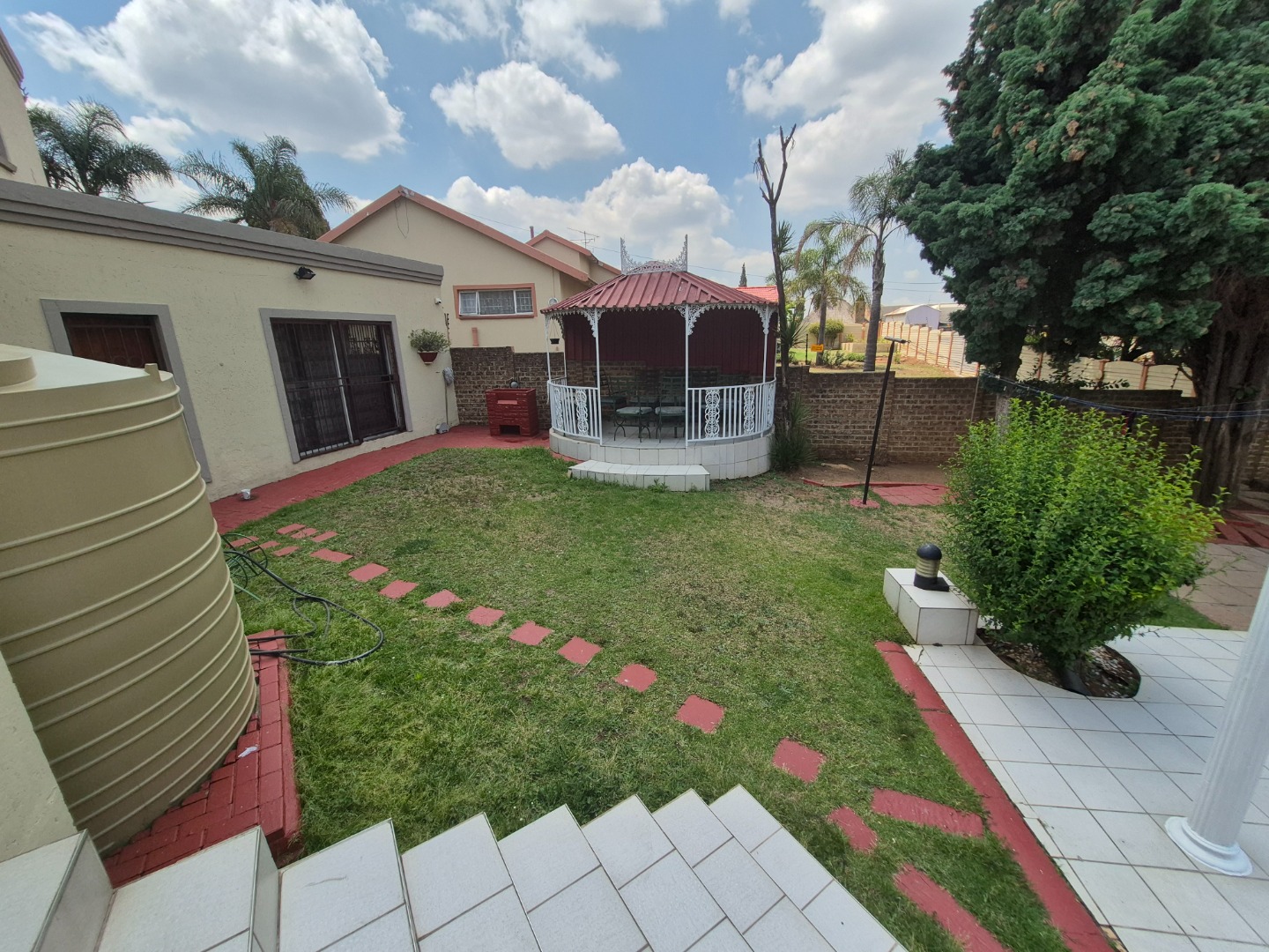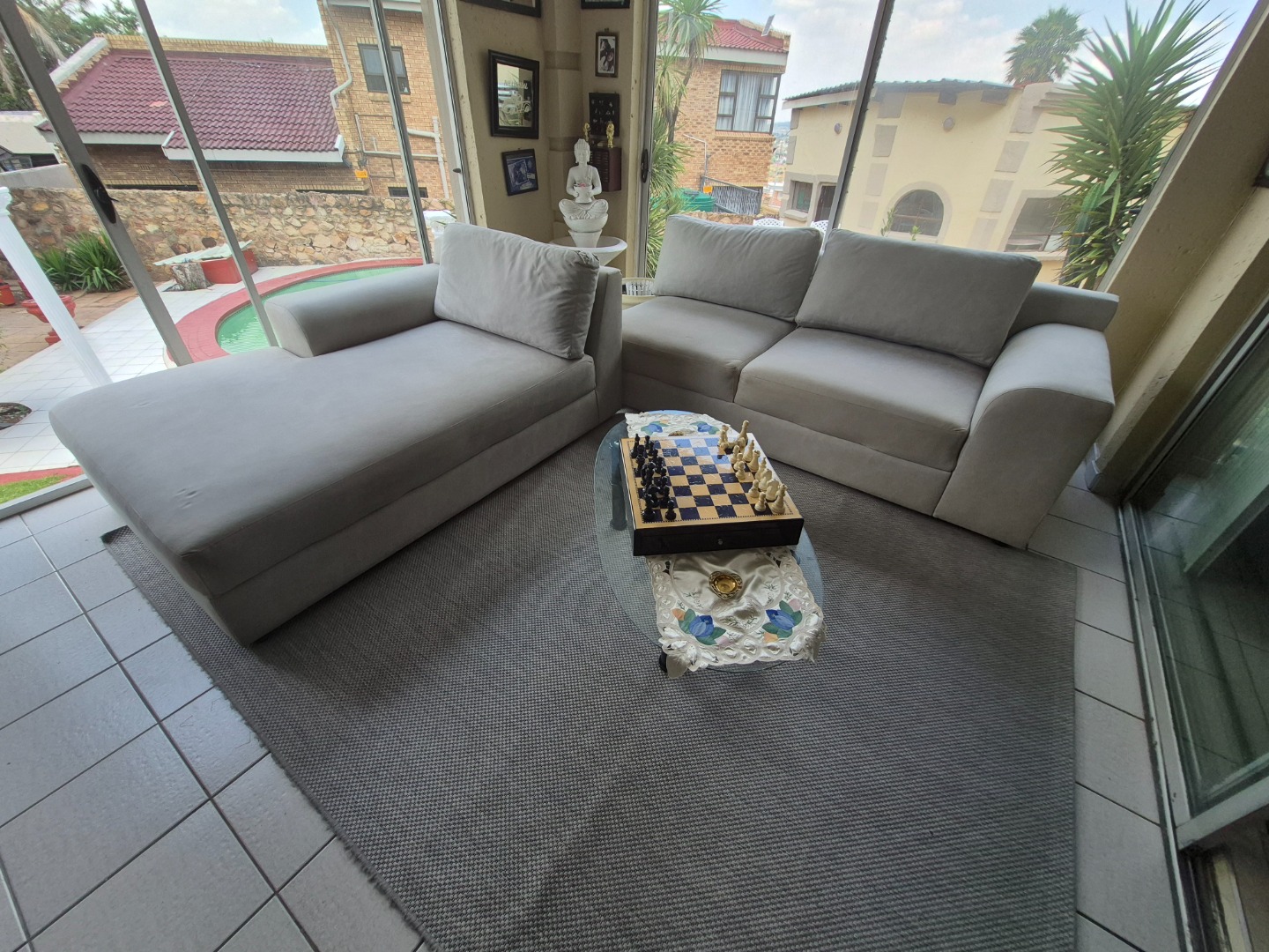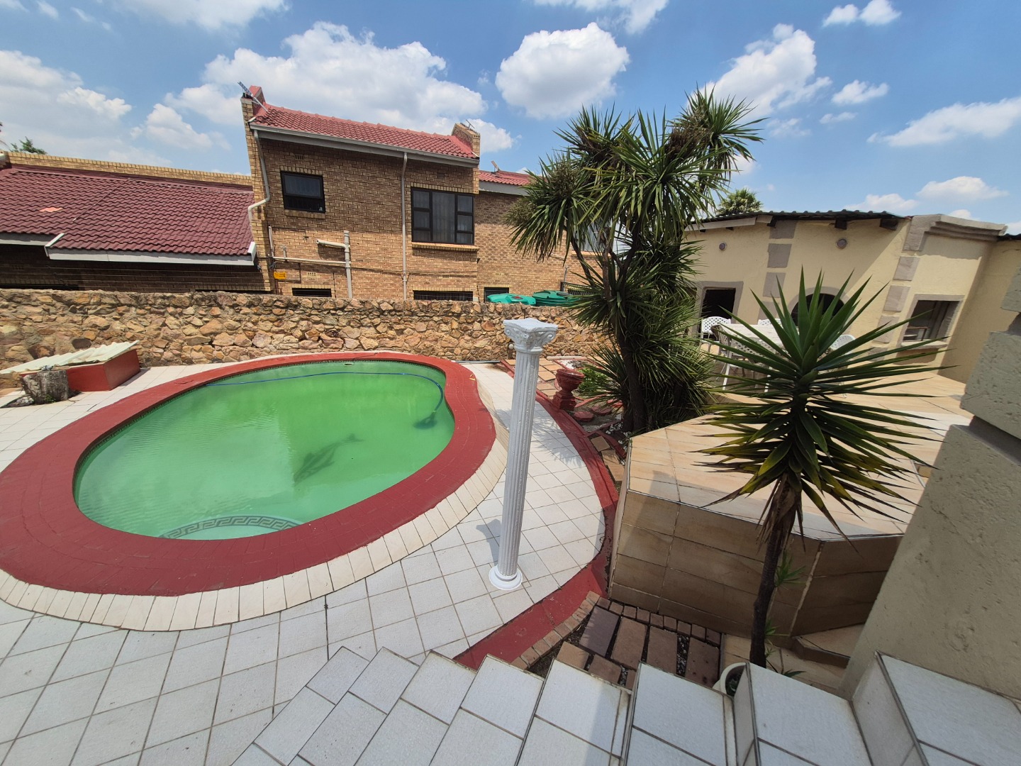 Discover this spacious family home situated on a generous 1100 sqm erf in the established suburban area of Winchester Hills, Johannesburg. Designed for comfortable living, the residence features a well-appointed kitchen, a dedicated dining room perfect for family meals, a welcoming lounge, and an additional family TV room, providing ample space for relaxation and entertainment. The layout ensures a seamless flow between these key living areas, catering to diverse household needs. This property boasts four generously sized bedrooms, offering private retreats for every family member. Complementing these are four modern bathrooms, two of which are convenient en-suite facilities, ensuring privacy and comfort. A dedicated study provides an ideal space for remote work or quiet contemplation, enhancing the home's functionality. Outdoor living is a highlight, with a well-maintained garden providing a serene backdrop for leisure. Enjoy sunny South African days by the inviting swimming pool, or entertain guests under the charming lapa. Practical amenities include three garages and a total of six parking spaces, accommodating multiple vehicles with ease. The property is pet-friendly, allowing your furry companions to enjoy the expansive garden. Security is well-addressed with a fully fenced and totally walled perimeter, an access gate, and CCTV surveillance, offering peace of mind. An added benefit is the presence of a flatlet, providing versatile options for extended family, guests, or potential rental income. Paved areas ensure neatness and easy maintenance around the exterior. Winchester Hills is a sought-after residential area known for its family-friendly environment and convenient access to local amenities, schools, and major transport routes within Johannesburg.