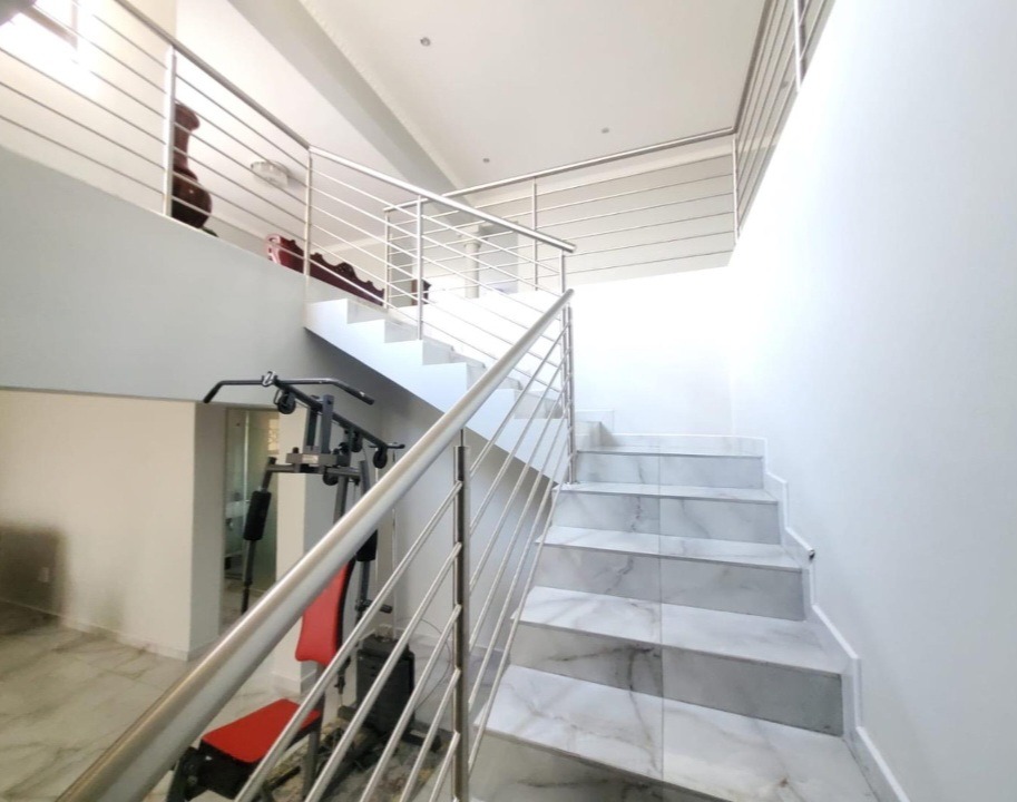 Beyond the interiors, the property extends its allure with a meticulously maintained garden, providing a verdant retreat for outdoor enjoyment and tranquil contemplation. Practical considerations are met with a triple garage, ensuring ample secure parking for a discerning collection of vehicles. Enhanced security features, including an alarm system and robust burglar bars, offer peace of mind, while the pet-friendly environment welcomes every member of the family.