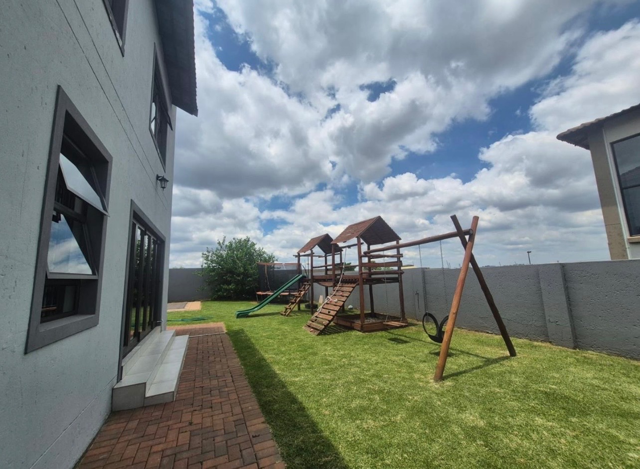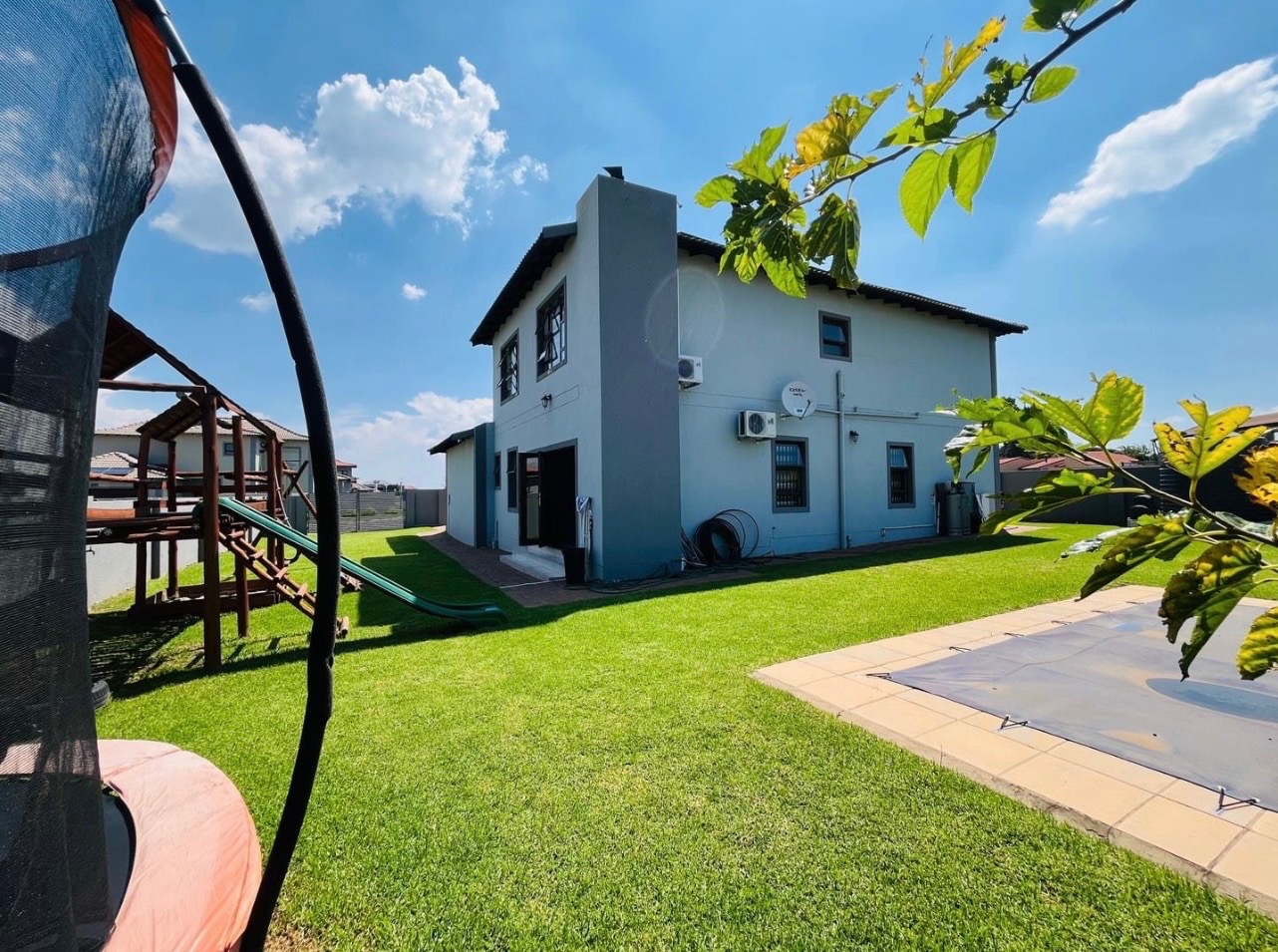 An Exquisite Sanctuary of Modern Living in Halfway House Discover an unparalleled lifestyle within this magnificent four-bedroom residence, gracefully nestled in a prestigious estate in Halfway House, Midrand. This architectural masterpiece, spanning an impressive 270 square metres on a generous 705 square metre erf, offers a harmonious blend of sophisticated design, expansive living, and cutting-edge amenities, meticulously crafted for the discerning homeowner. Step inside to an ambiance of refined elegance, where an open-plan layout seamlessly connects the multiple reception areas. The grand lounge, complemented by a dedicated family TV room and an elegant dining area, provides versatile spaces for both intimate gatherings and lavish entertaining. The heart of this home, a state-of-the-art kitchen, boasts a convenient pantry and is designed for culinary excellence. Throughout, the residence is enhanced by air conditioning, ensuring year-round comfort, while sliding doors invite an abundance of natural light and facilitate a seamless transition to the outdoor oasis. The private quarters are equally impressive, featuring four luxurious en-suite bedrooms, each a serene retreat offering ultimate privacy and comfort. A thoughtfully placed guest toilet adds to the home's practical elegance. Every detail has been considered to create an environment of tranquility and indulgence, promising restful nights and invigorating mornings. Beyond the interior, the property unfolds into a captivating outdoor haven. A sprawling garden, complete with elegant paving, frames a sparkling swimming pool, perfect for leisurely afternoons and vibrant social events. The expansive patio offers an idyllic setting for al fresco dining and relaxation, all while enjoying picturesque scenic views. This pet-friendly estate ensures a lifestyle of freedom and enjoyment for all members of the family. Embrace a future-forward lifestyle with advanced features including solar panels and a battery inverter, ensuring energy efficiency and uninterrupted comfort. The estate benefits from 24-hour security, CCTV surveillance, and controlled access gates, providing an impenetrable sense of safety and exclusivity. High-speed fibre connectivity ensures you remain seamlessly connected to the world. This exceptional residence represents a rare opportunity to acquire a home where luxury, comfort, and security converge in one of Midrand's most sought-after suburban estates. We invite you to experience the epitome of sophisticated living. Arrange a private viewing to truly appreciate the grandeur and meticulous detail of this extraordinary property. Key FeaturesFour Luxurious En-Suite Bedrooms4.5 Contemporary BathroomsExpansive Open-Plan Living Areas with Family TV RoomState-of-the-Art Kitchen with PantryPrivate Swimming Pool and Entertainment PatioScenic Views and Manicured GardenIntegrated Solar Panels and Battery Inverter24-Hour Security, CCTV, and Access Control within yhe Double Garage and Additional ParkingHigh-Speed Fibre ConnectivityDiscover an unparalleled lifestyle within this magnificent four-bedroom residence, gracefully nestled in a prestigious estate in Halfway House, Midrand. This architectural masterpiece, spanning an impressive 270 square metres on a generous 705 square metre erf, offers a harmonious blend of sophisticated design, expansive living, and cutting-edge amenities, meticulously crafted for the discerning homeowner.