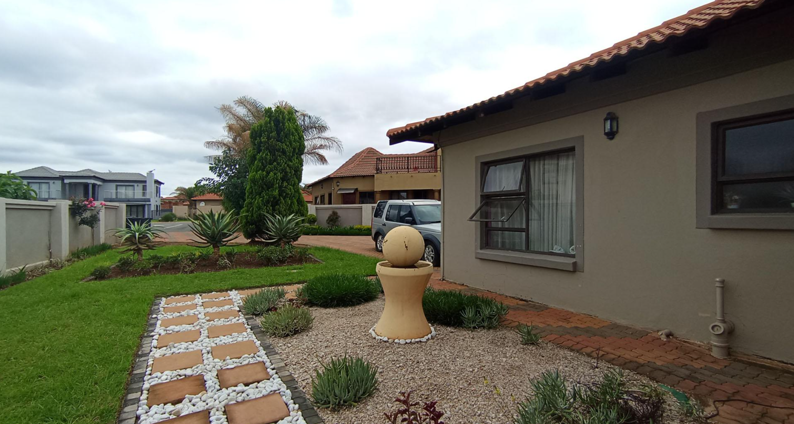 Discover this inviting single-story residence nestled within the prestigious Savannah Country Estate in Pretoria. The property immediately impresses with its well-maintained exterior, classic tiled roof, and a spacious paved driveway offering ample parking for up to four vehicles, including a double garage. Established landscaping provides a private and welcoming approach to this family home, enhancing its kerb appeal.