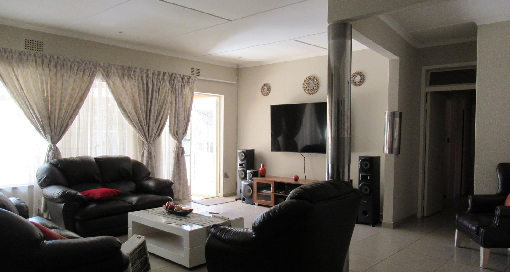 This inviting 4-bedroom, 3-bathroom family home is nestled on a generous 1487 sqm erf in the sought-after suburb of Constantia Kloof, Roodepoort. The property boasts excellent kerb appeal with a neat beige exterior, a well-maintained tiled roof, and a spacious green lawn framed by mature trees. A paved driveway leads to a double garage, offering ample parking for up to six vehicles. Inside, the open-plan layout seamlessly connects the lounge, dining room, and a dedicated family TV room, providing comfortable and versatile living spaces ideal for both daily family life and entertaining guests.
