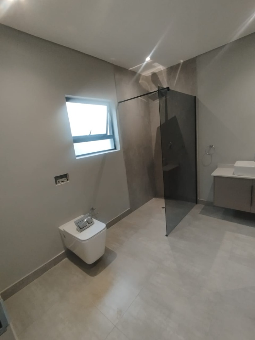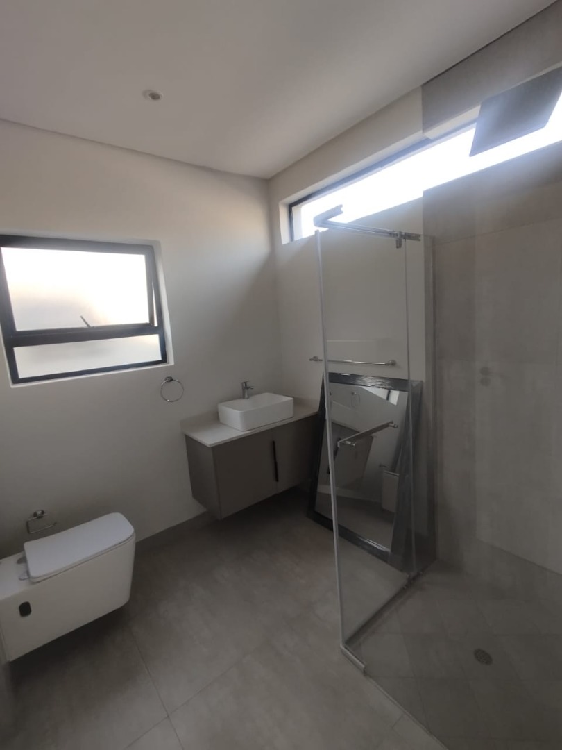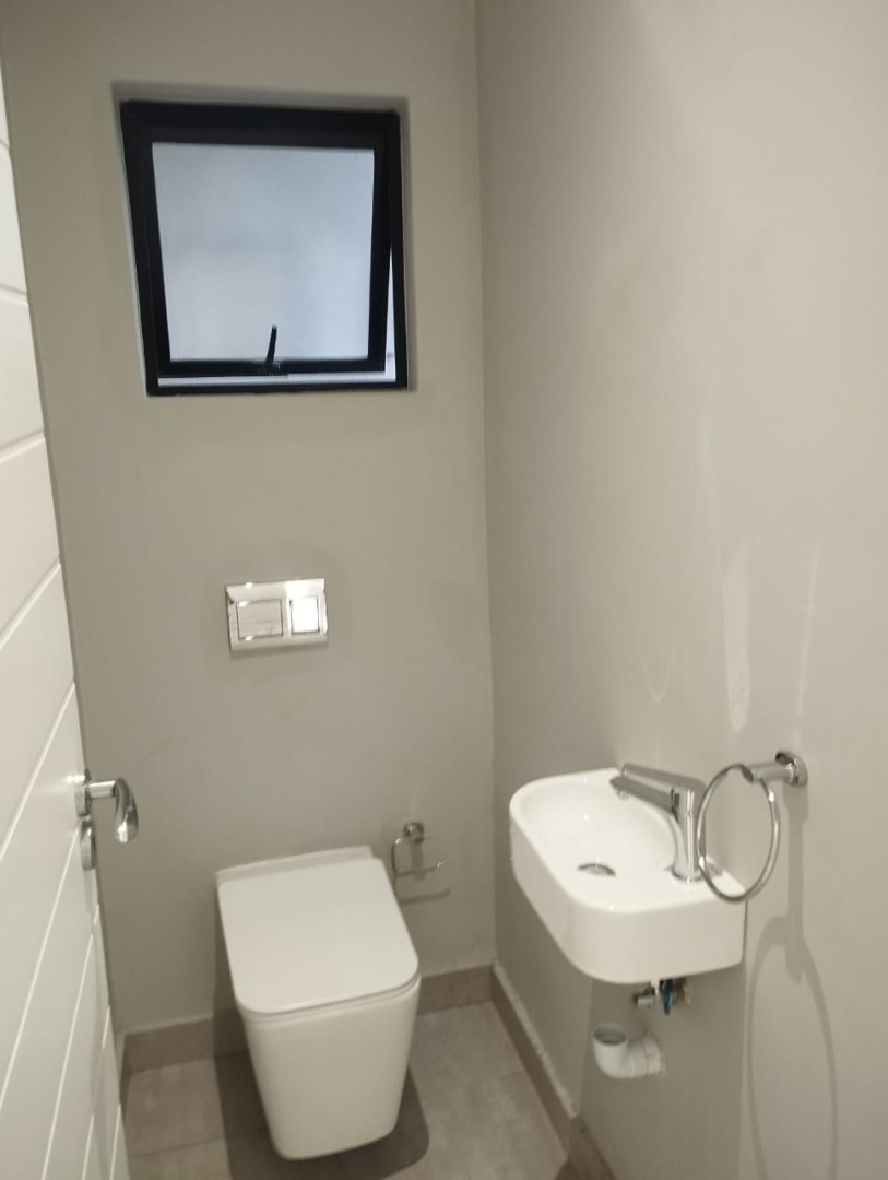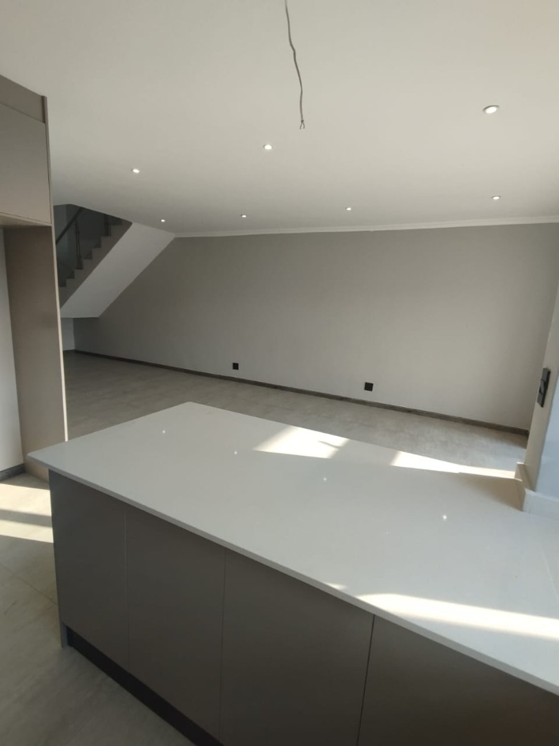 This modern residential property offers a sophisticated lifestyle within a secure complex in Bryanston, Sandton. Its sleek architectural design and well-maintained exterior create an inviting first impression, complemented by a secure gated entrance and individual garages. Step inside to discover a spacious 280 sqm floor plan designed for contemporary living. The open-plan lounge and dining areas are bathed in natural light, flowing seamlessly onto a private outdoor patio through large sliding glass doors. The modern kitchen is a highlight, featuring neutral-toned cabinetry, integrated appliances including an oven and hob, and generous countertop space, perfect for culinary enthusiasts. Recessed lighting and tiled flooring enhance the clean aesthetic throughout. The home boasts three comfortable bedrooms, each accompanied by its own en-suite bathroom, ensuring privacy and convenience. A total of 3.5 bathrooms, including a stylish powder room, cater to residents and guests alike. The unfurnished interior provides a blank canvas, allowing new owners to personalise the space to their unique taste. Enjoy the South African climate with a private outdoor garden area and a built-in braai on the patio, ideal for entertaining or quiet relaxation. With an erf size of 350 sqm, there's ample space for outdoor enjoyment. The property also includes a single garage and two additional parking spaces, adding to its practical appeal. Key Features: * 3 Bedrooms, 3.5 Bathrooms (3 En-suite) * Modern Open-Plan Living Areas * Contemporary Kitchen with Integrated Appliances * Private Patio with Built-in Braai * Secure Gated Complex Environment * Single Garage & 2 Parking Spaces * 280 sqm Floor Size, 350 sqm Erf Size * Located in desirable Bryanston, Sandton