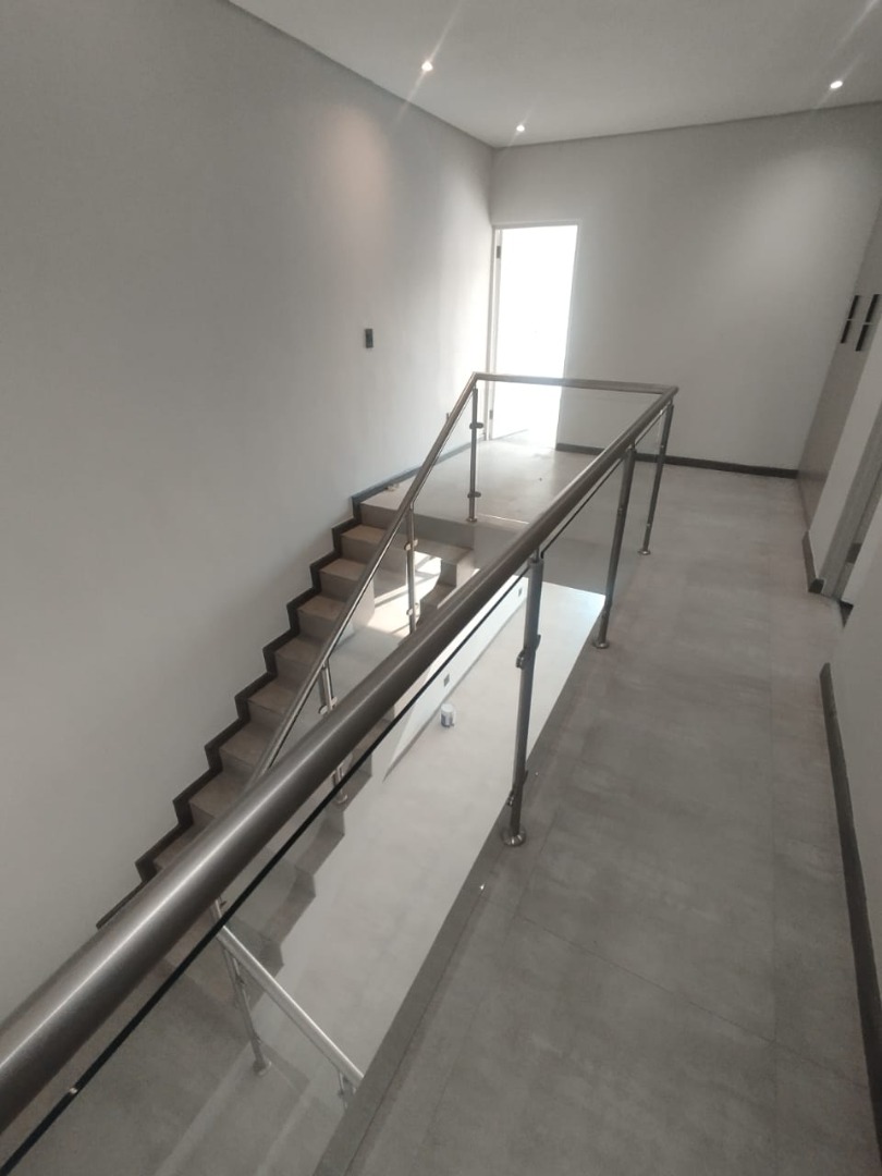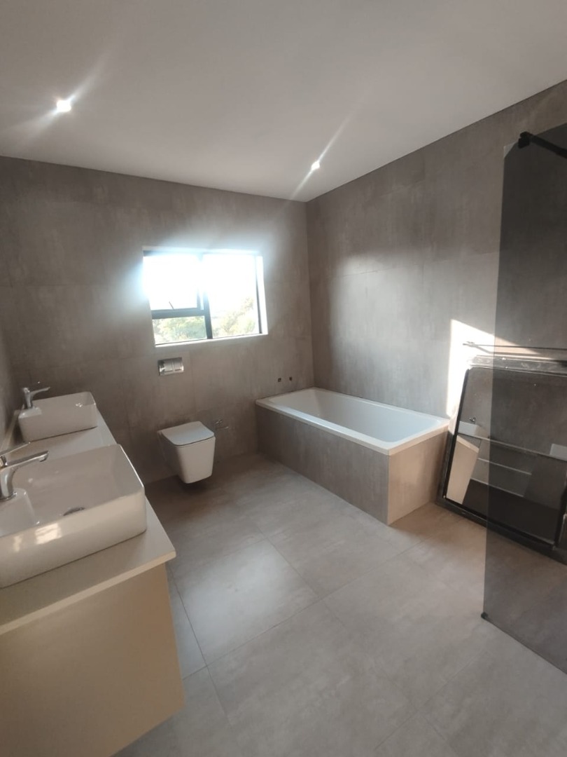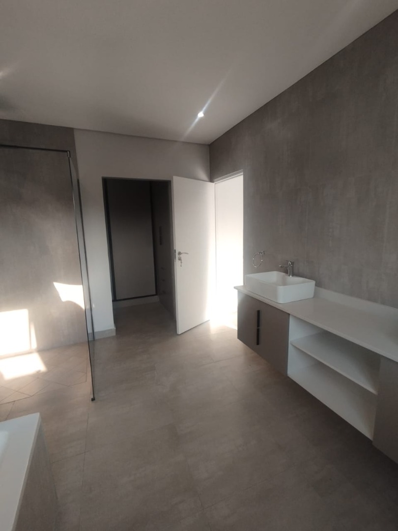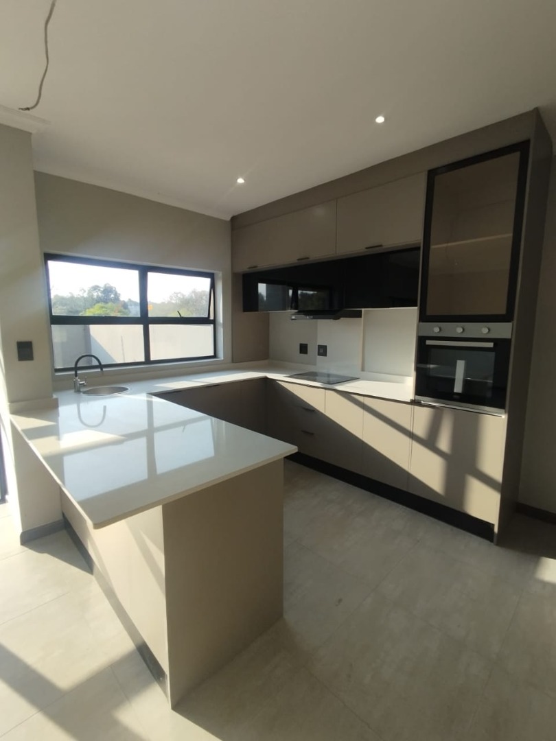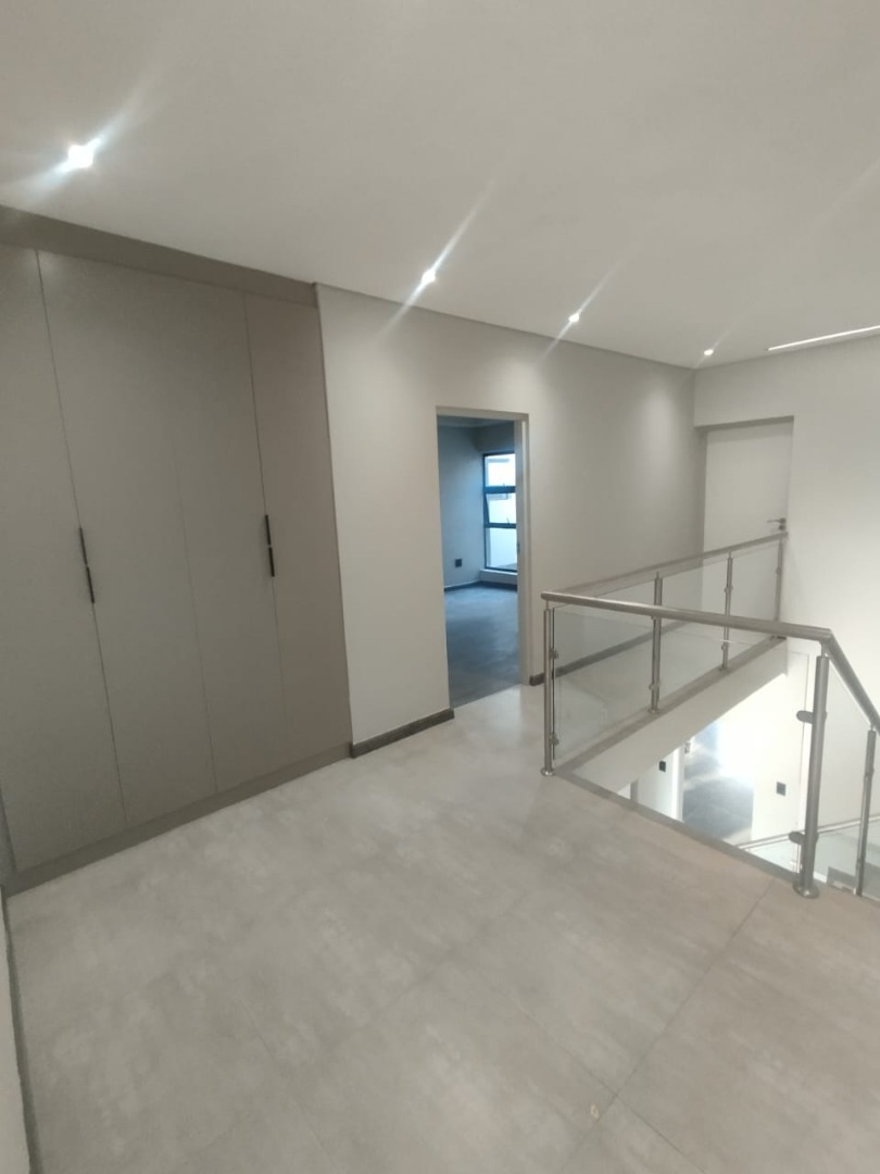 This modern residential property offers a sophisticated lifestyle within a secure complex in Bryanston, Sandton. Its sleek architectural design and well-maintained exterior create an inviting first impression, complemented by a secure gated entrance and individual garages. Step inside to discover a spacious 280 sqm floor plan designed for contemporary living. The open-plan lounge and dining areas are bathed in natural light, flowing seamlessly onto a private outdoor patio through large sliding glass doors. The modern kitchen is a highlight, featuring neutral-toned cabinetry, integrated appliances including an oven and hob, and generous countertop space, perfect for culinary enthusiasts. Recessed lighting and tiled flooring enhance the clean aesthetic throughout. The home boasts three comfortable bedrooms, each accompanied by its own en-suite bathroom, ensuring privacy and convenience. A total of 3.5 bathrooms, including a stylish powder room, cater to residents and guests alike. The unfurnished interior provides a blank canvas, allowing new owners to personalise the space to their unique taste. Enjoy the South African climate with a private outdoor garden area and a built-in braai on the patio, ideal for entertaining or quiet relaxation. With an erf size of 350 sqm, there's ample space for outdoor enjoyment. The property also includes a single garage and two additional parking spaces, adding to its practical appeal. Key Features: * 3 Bedrooms, 3.5 Bathrooms (3 En-suite) * Modern Open-Plan Living Areas * Contemporary Kitchen with Integrated Appliances * Private Patio with Built-in Braai * Secure Gated Complex Environment * Single Garage & 2 Parking Spaces * 280 sqm Floor Size, 350 sqm Erf Size * Located in desirable Bryanston, Sandton
