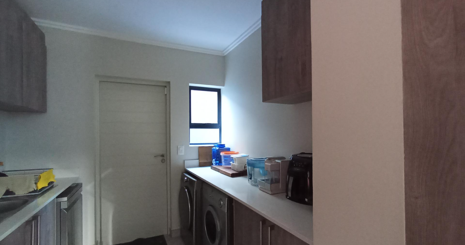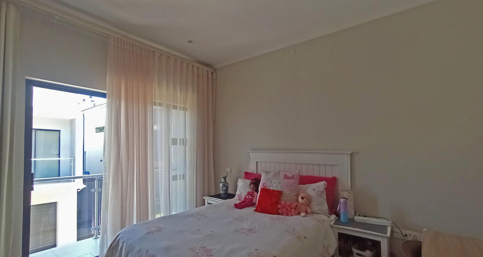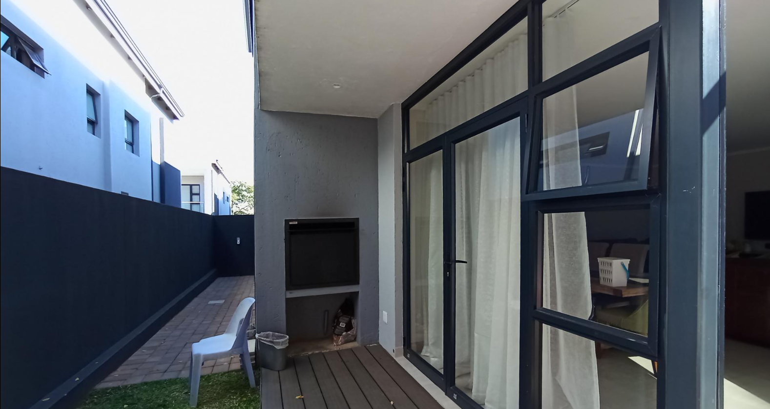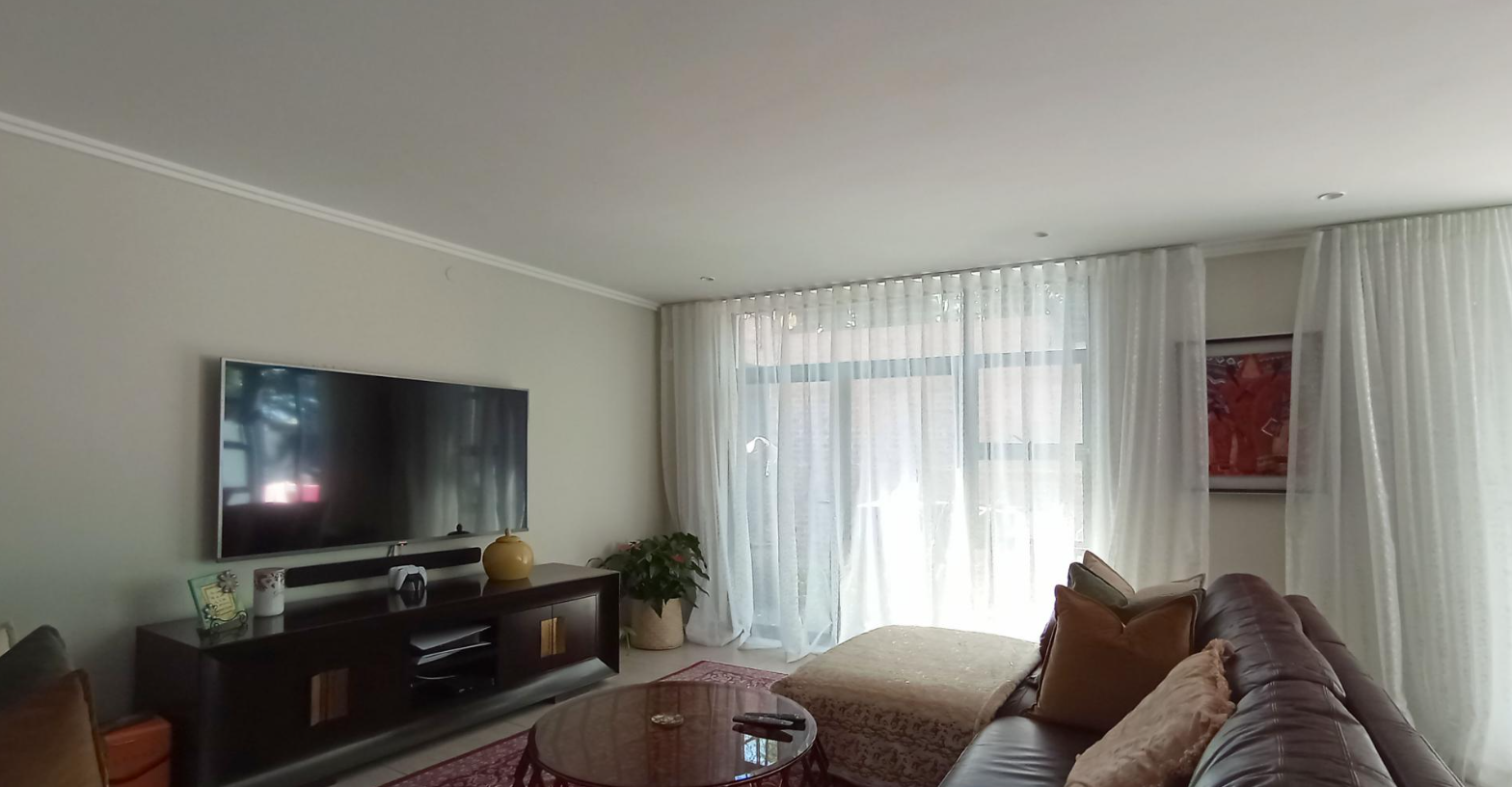 Discover an unparalleled lifestyle in this exquisite contemporary residence within a desirable Bryanston complex. The striking architectural design captivates with clean lines, a sophisticated neutral palette, and private balconies adorned with sleek glass railings. Integrated garages offer secure parking, while expansive windows and sliding doors invite abundant natural light, enhancing the home's elegant kerb appeal.
