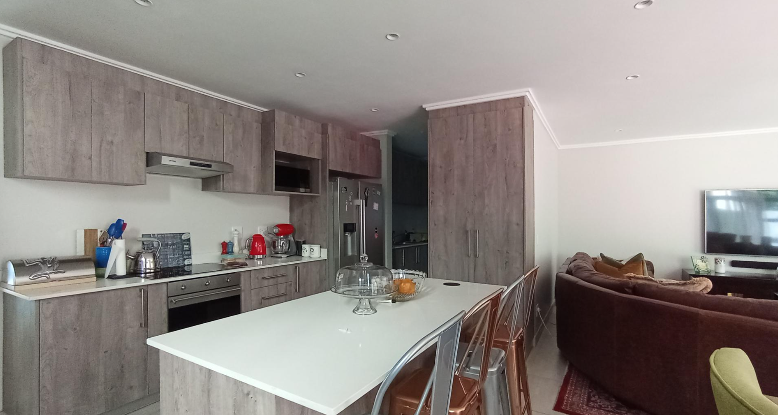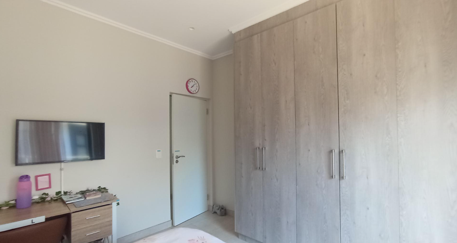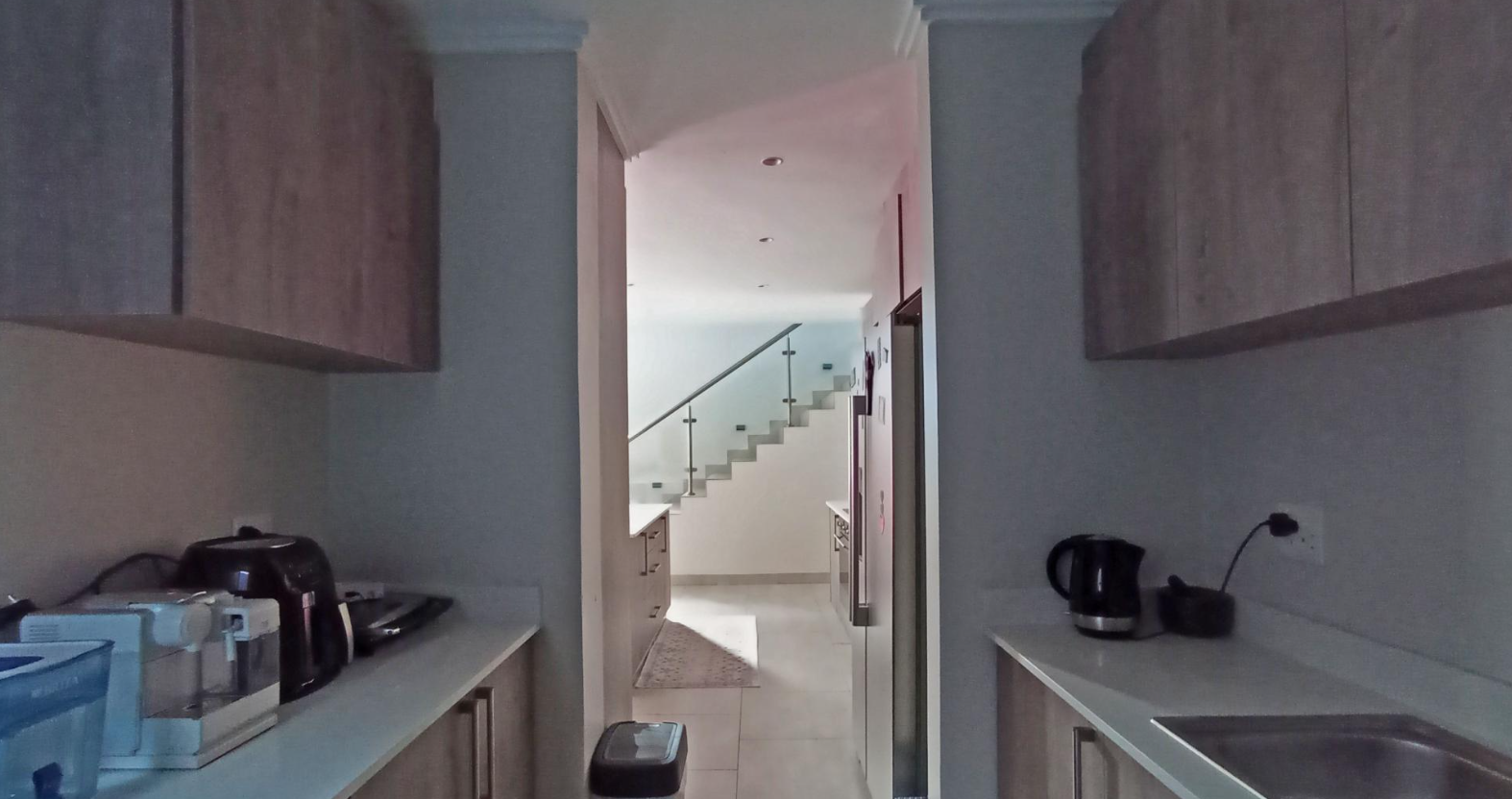 Discover an unparalleled lifestyle in this exquisite contemporary residence within a desirable Bryanston complex. The striking architectural design captivates with clean lines, a sophisticated neutral palette, and private balconies adorned with sleek glass railings. Integrated garages offer secure parking, while expansive windows and sliding doors invite abundant natural light, enhancing the home's elegant kerb appeal.