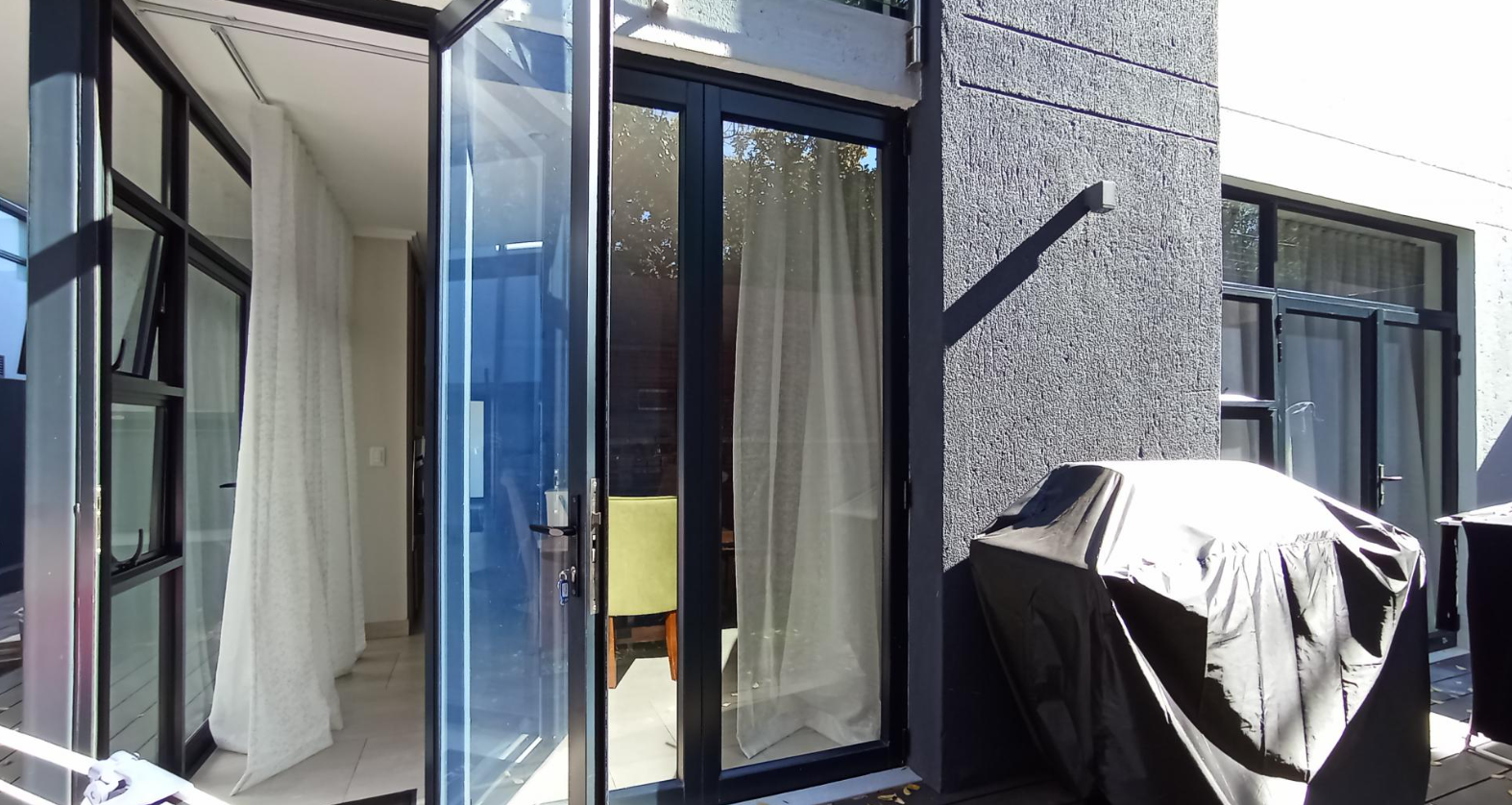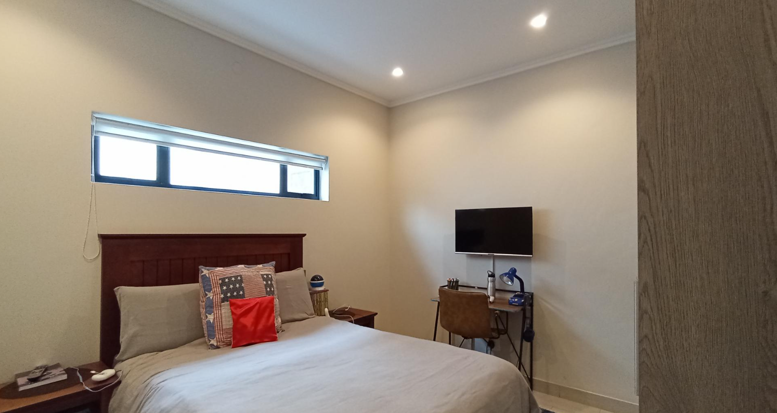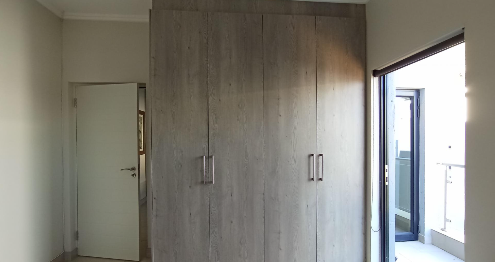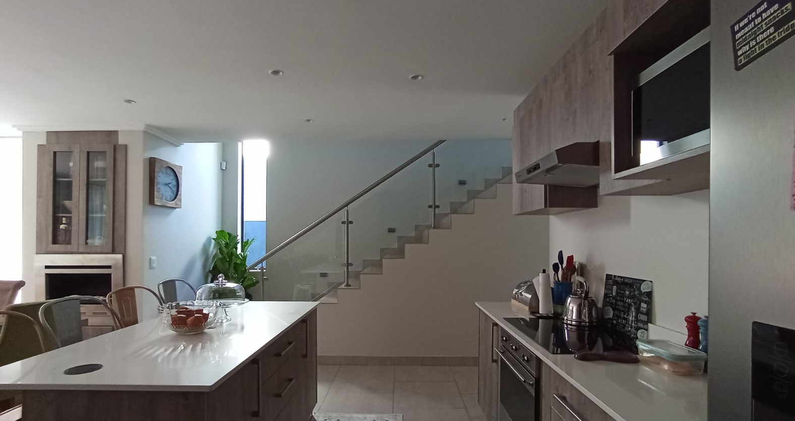 Discover an unparalleled lifestyle in this exquisite contemporary residence within a desirable Bryanston complex. The striking architectural design captivates with clean lines, a sophisticated neutral palette, and private balconies adorned with sleek glass railings. Integrated garages offer secure parking, while expansive windows and sliding doors invite abundant natural light, enhancing the home's elegant kerb appeal.