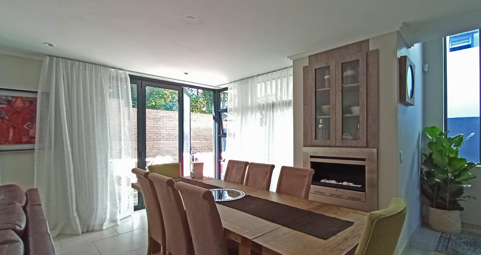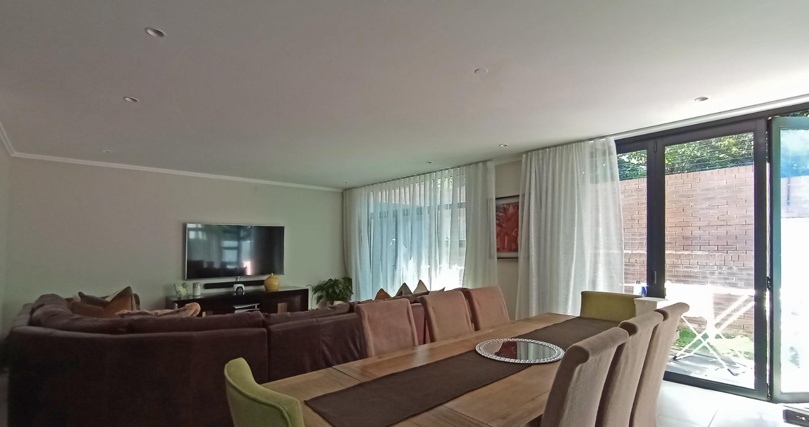 Embrace outdoor living with a private patio and garden, accessible directly from the spacious dining area, offering a serene retreat for relaxation or al fresco entertaining. The property benefits from practical paving, welcomes pets, and offers scenic views, adding to the tranquil ambiance of this sophisticated Bryanston address.