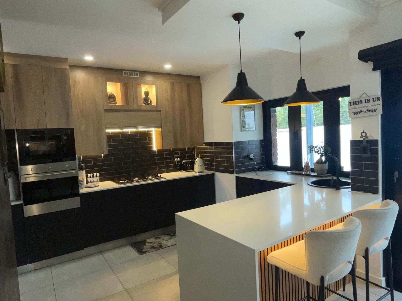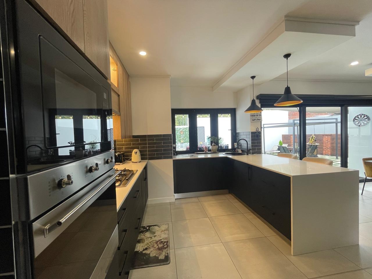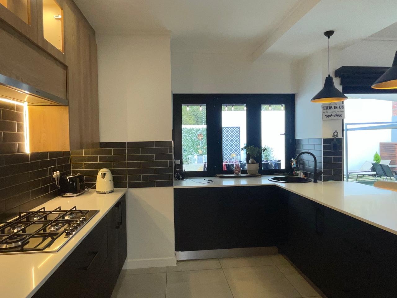 Stylish kitchen gas stove and open-plan living areas