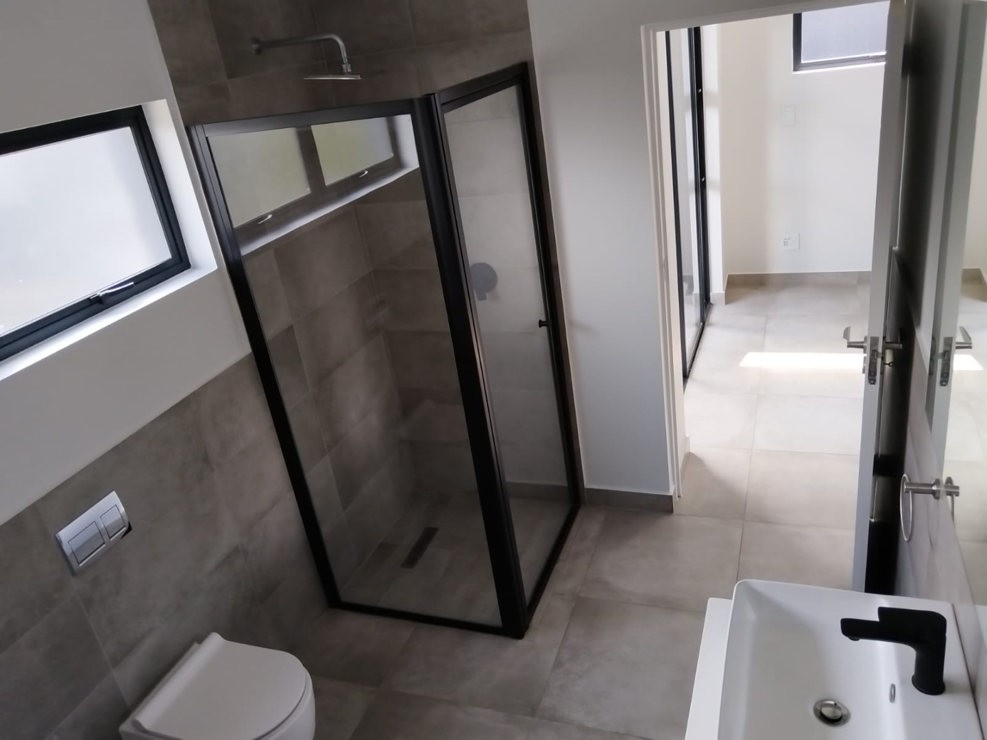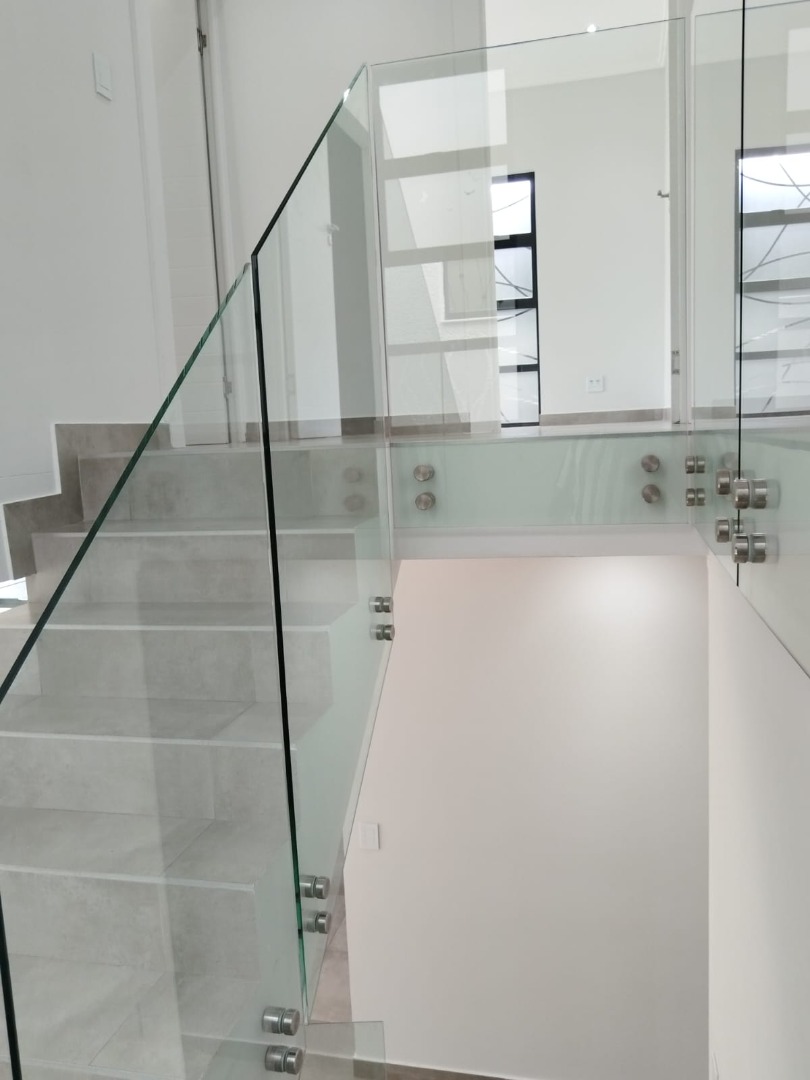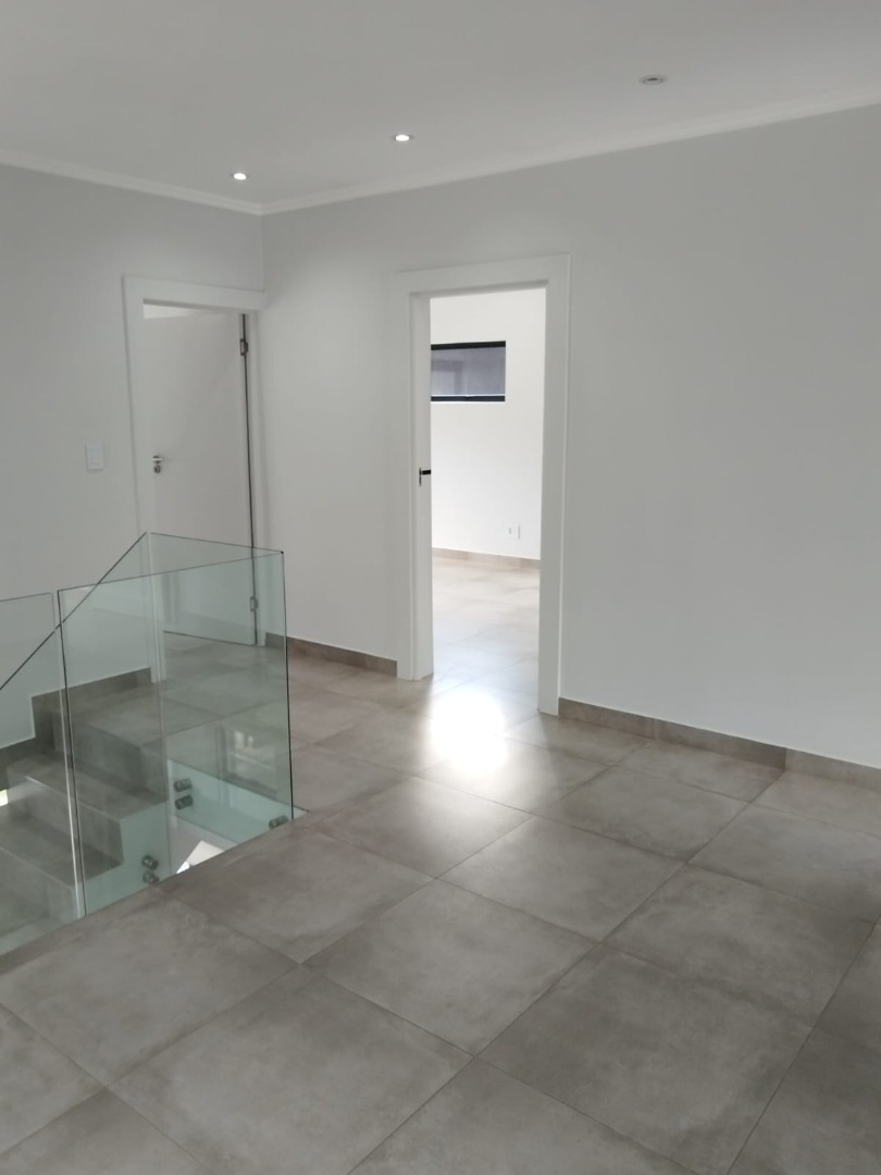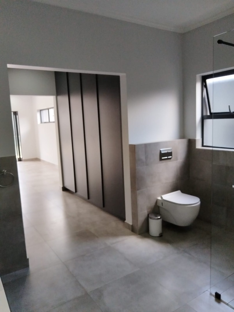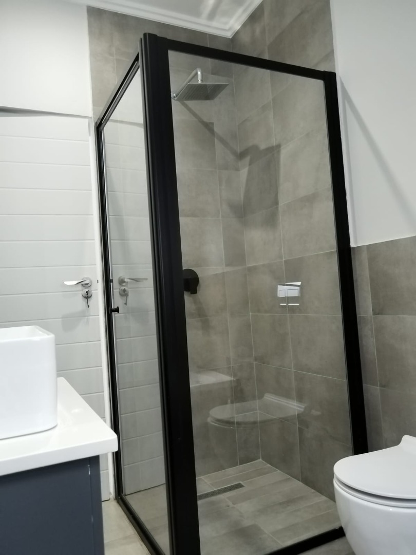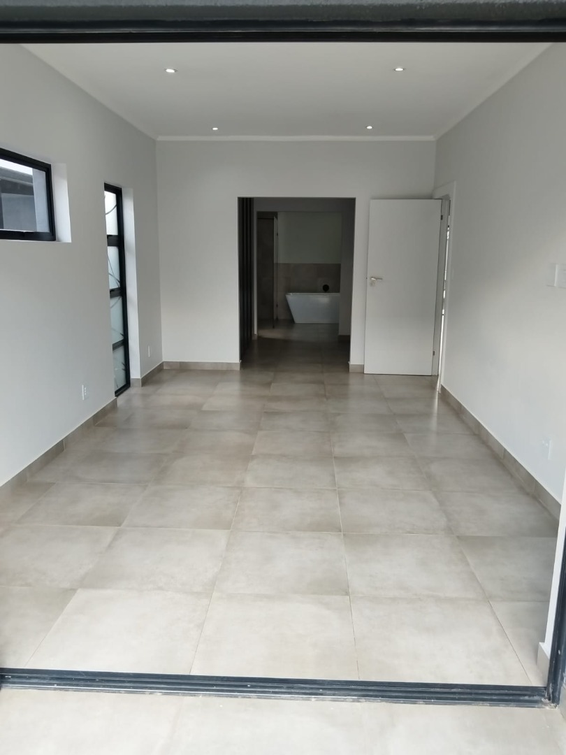 This modern residential sale property in Edenburg, Sandton, offers contemporary living within a secure estate. The sleek, dark-toned architecture provides excellent kerb appeal. Inside, you will discover an open-plan layout featuring a modern kitchen with glossy dark grey cabinets and an island with an integrated stovetop, flowing into the dining and lounge areas. This home boasts three spacious bedrooms, each with an en-suite bathroom, plus a convenient guest toilet. Enjoy outdoor living with a private patio and balconies, complemented by a garden. Security is paramount with 24-hour security, CCTV, an alarm, electric fencing, and access gates. Fibre connectivity is available. Two garages provide ample parking.