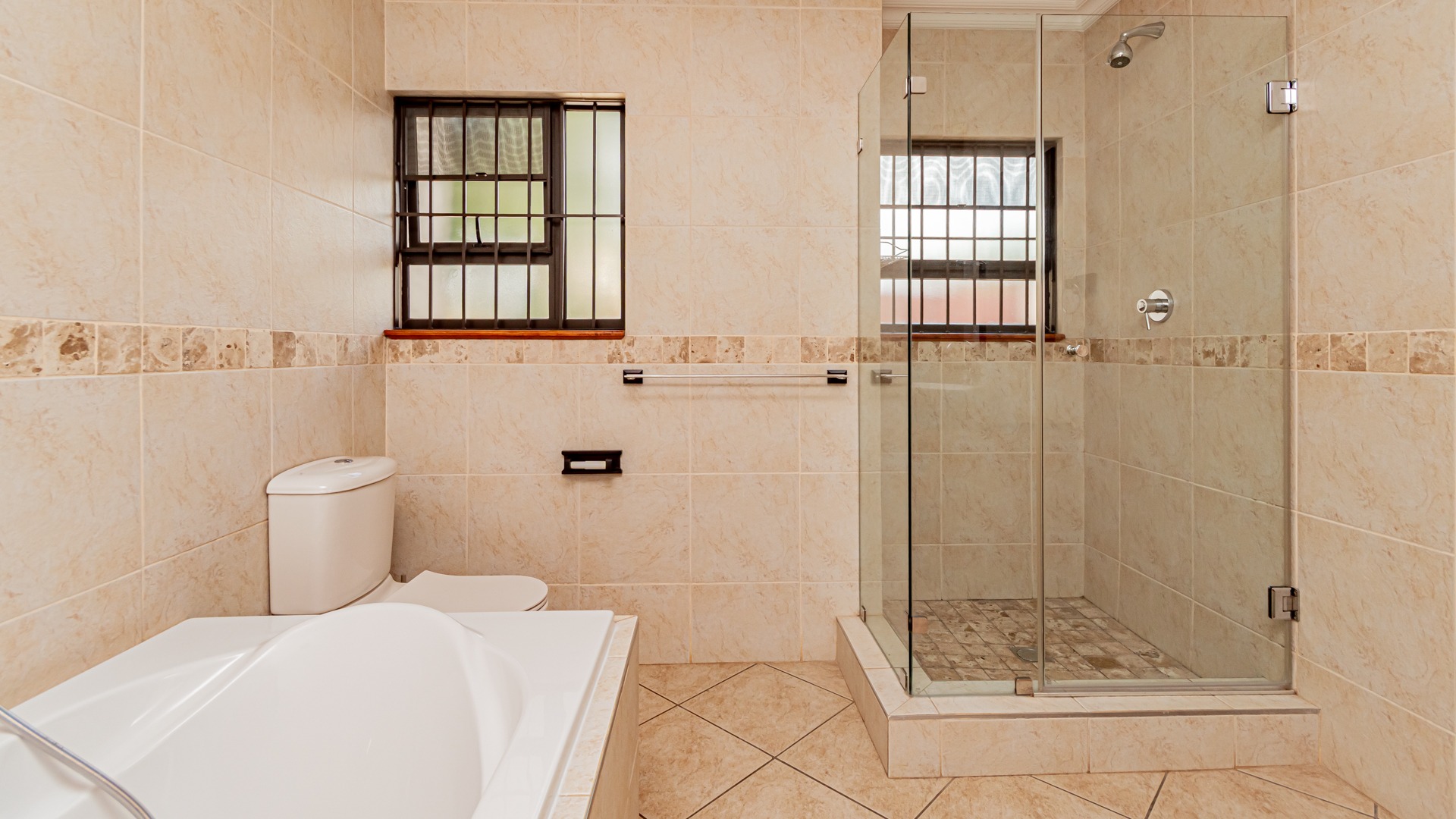 Security is paramount within this complex, featuring 24-hour security, electric fencing, and a security gate. The property includes a double garage and ample paved driveway space. Additional amenities like water tanks and fibre connectivity ensure a convenient and connected lifestyle.