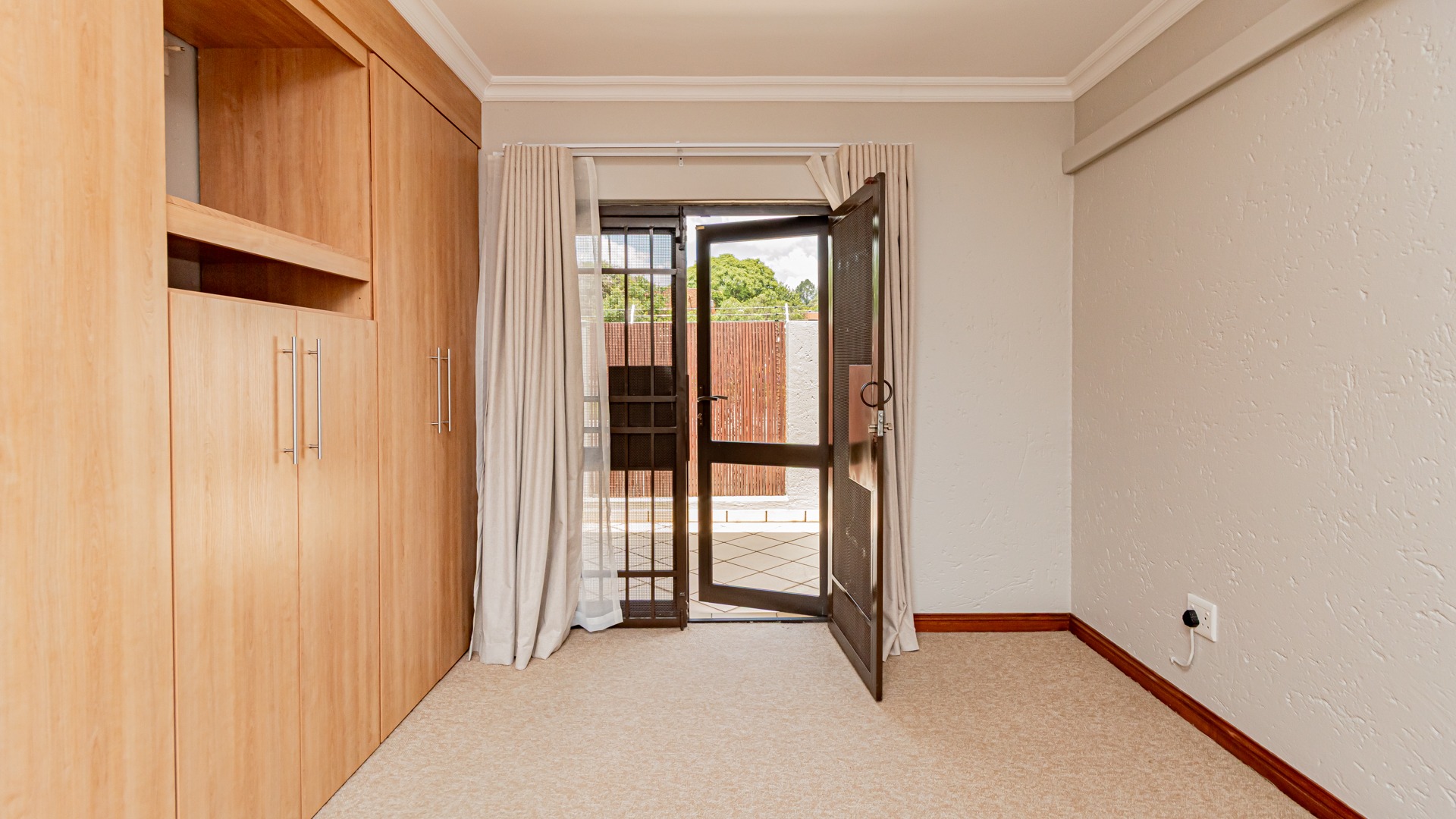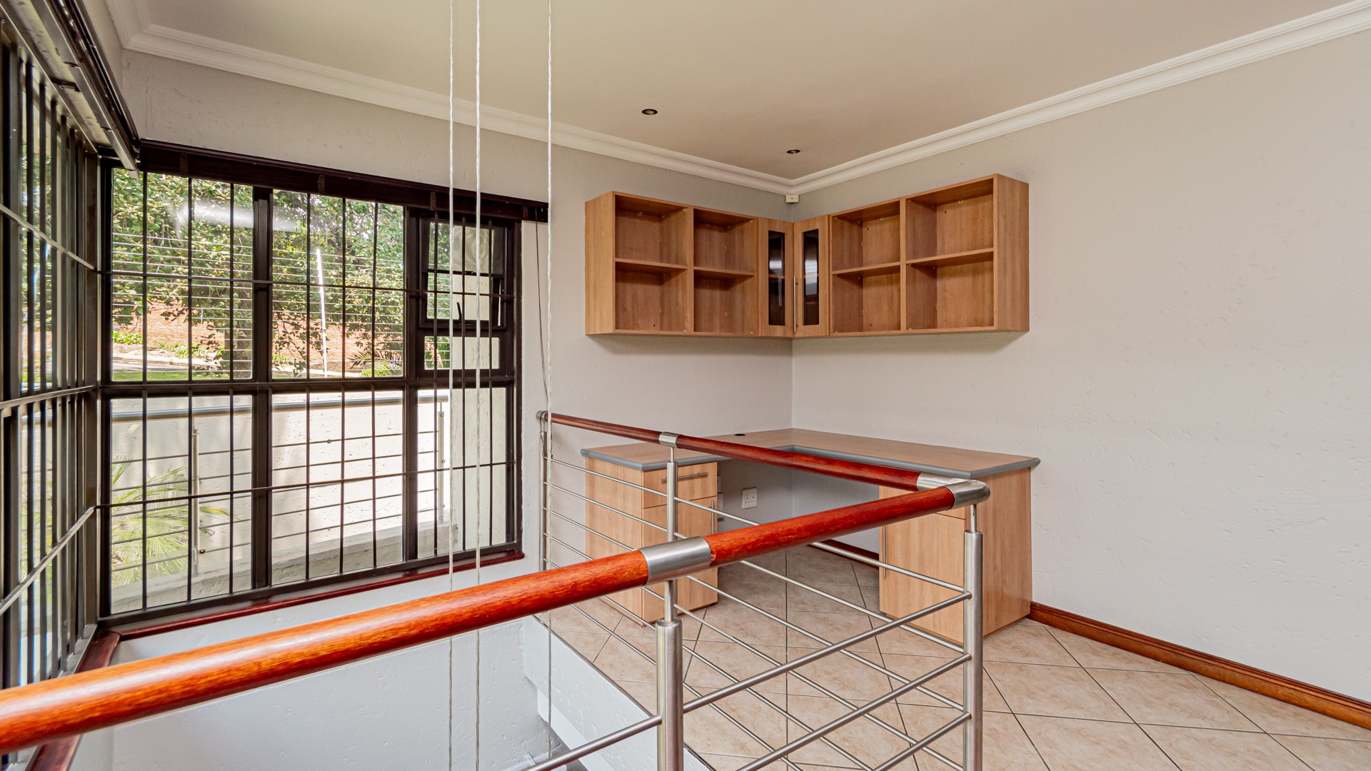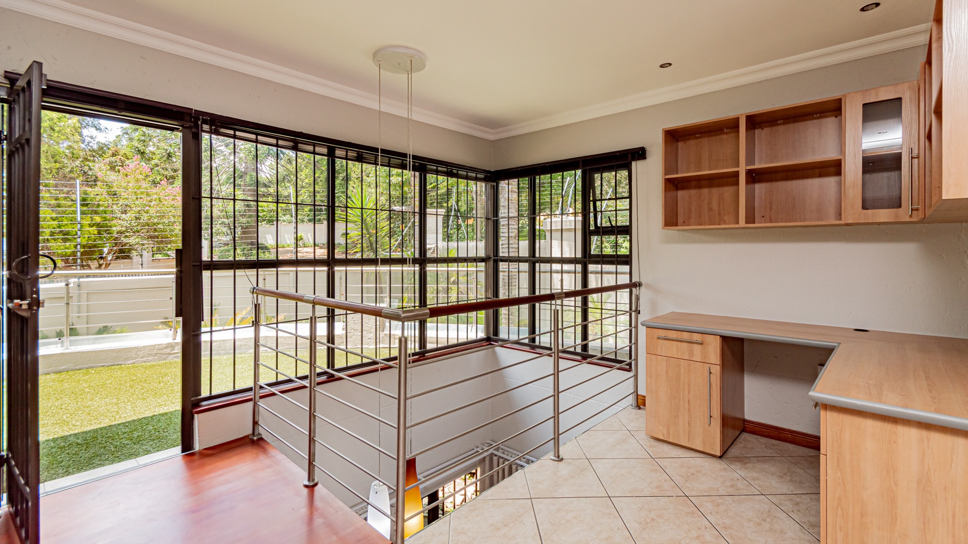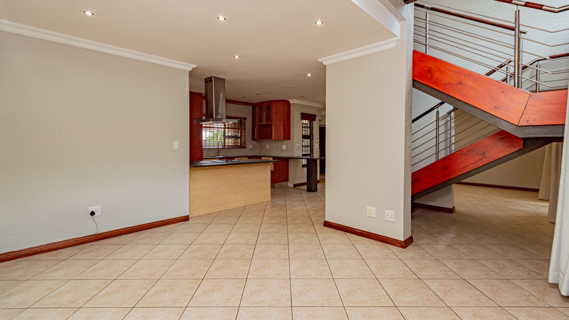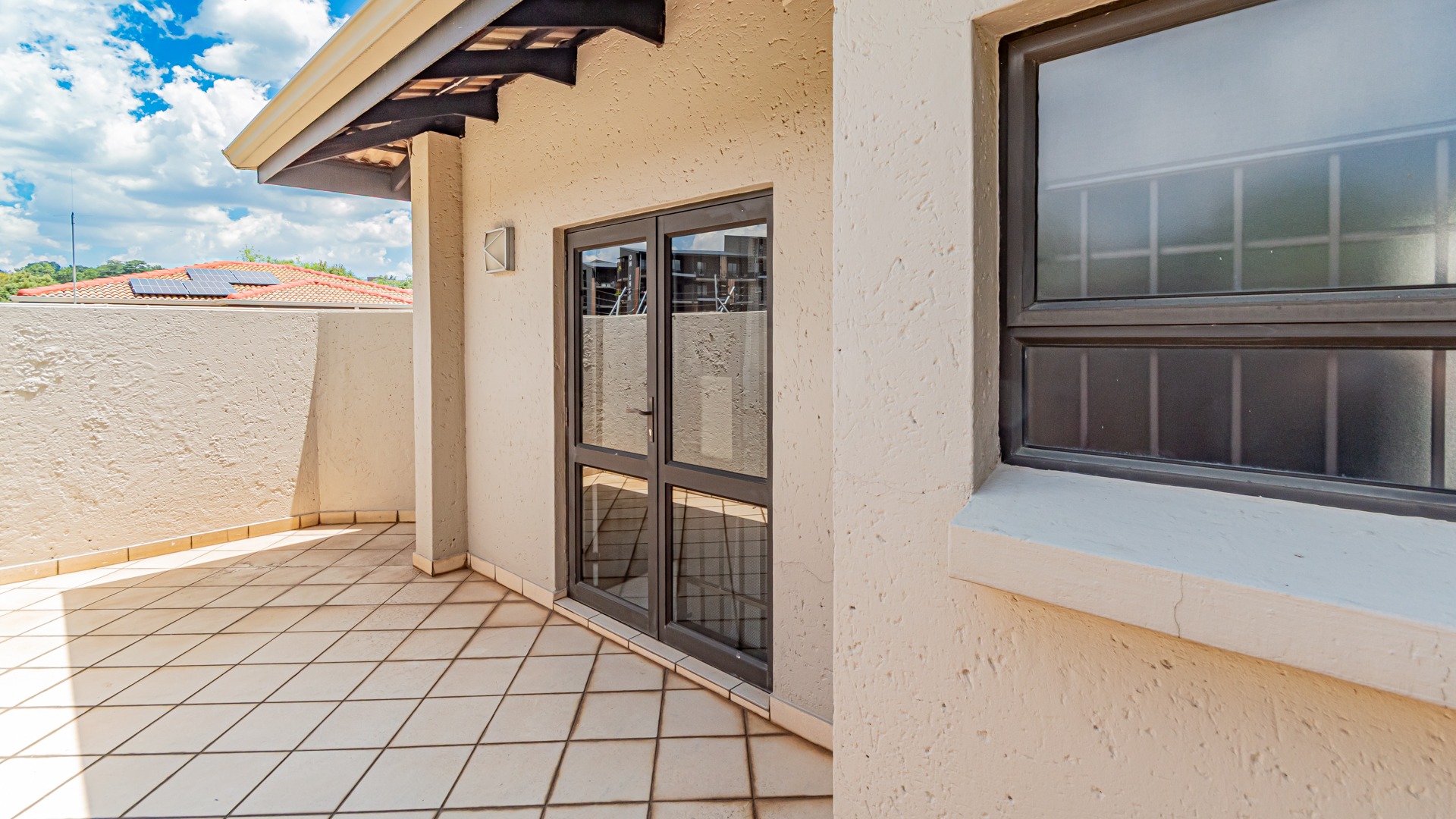 Upstairs, three well-appointed bedrooms include a luxurious en-suite bathroom, ensuring privacy and comfort. The home also features a guest toilet for convenience. Outdoor living is catered for with a private patio, deck, and a built-in braai, perfect for entertaining.