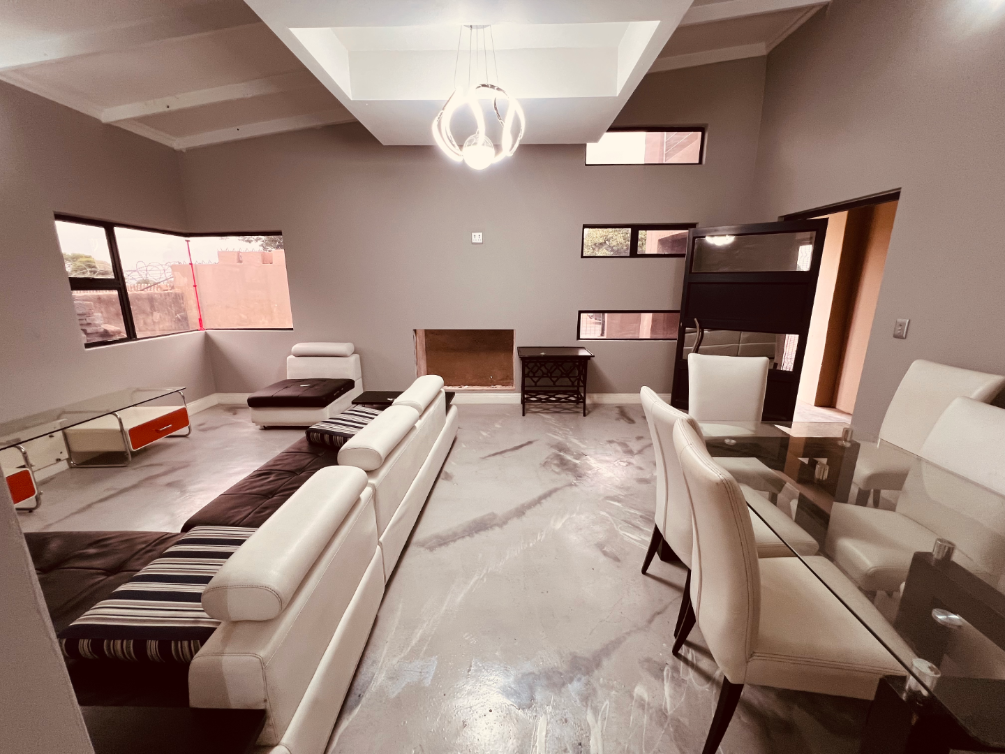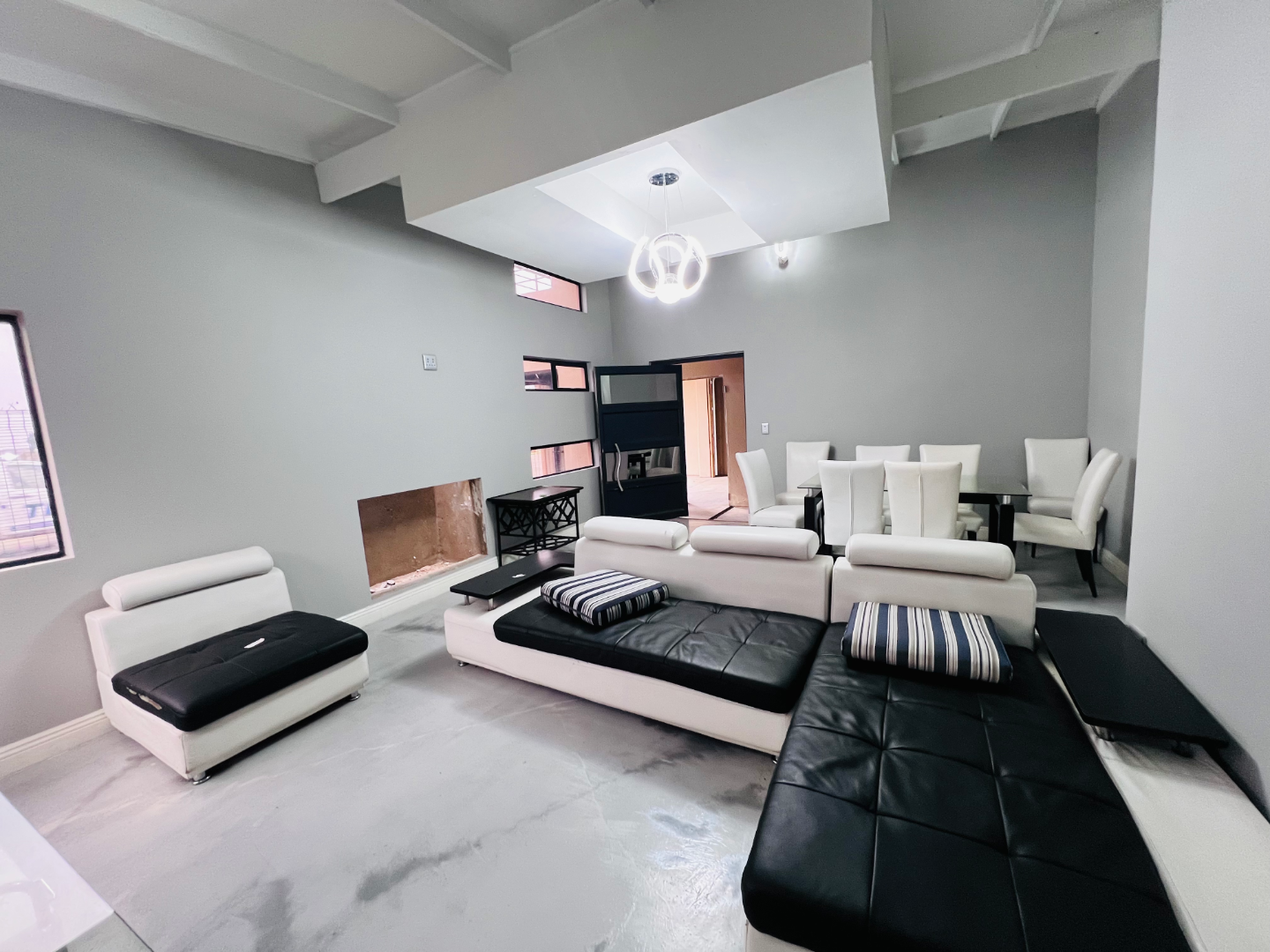 Step into your dream home, a generously-sized double-story house with a wealth of features. The expansive dining and lounge areas are graced by a thoughtfully designed fireplace, creating a warm and inviting atmosphere. It is adorned with beautiful ceramic tiles, and the distinctive doors, windows, and glasswork infuse the home with a touch of elegance.