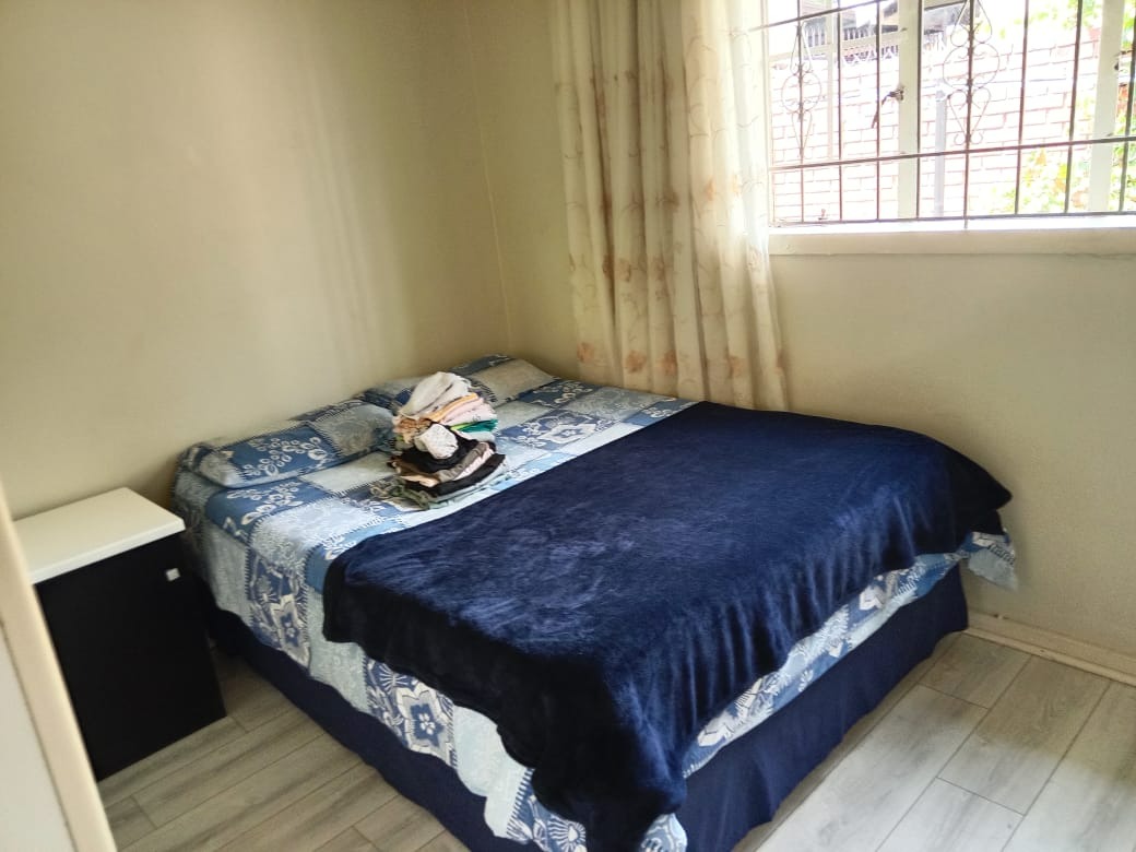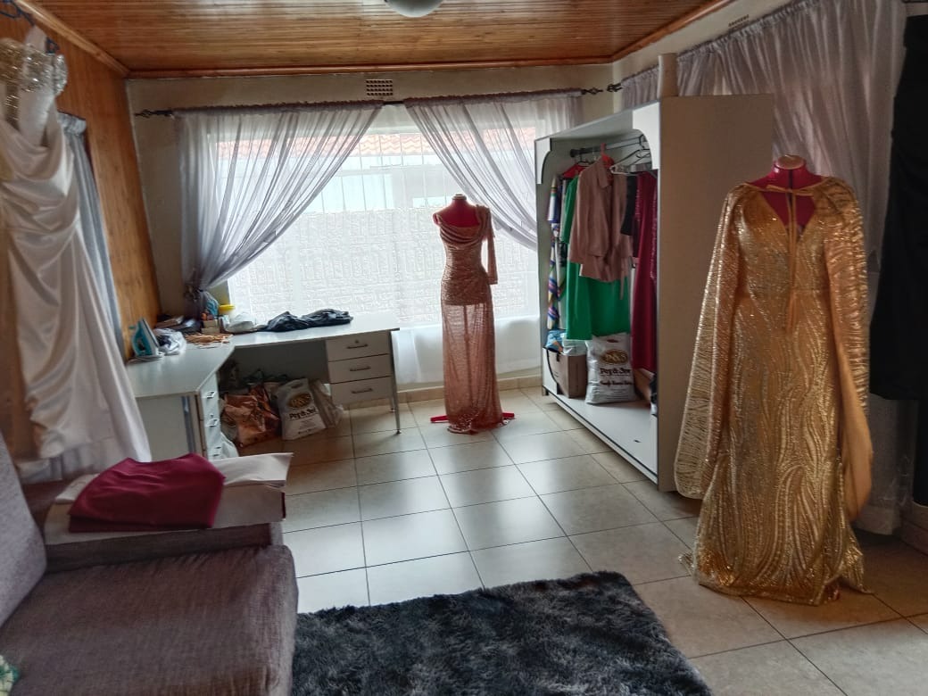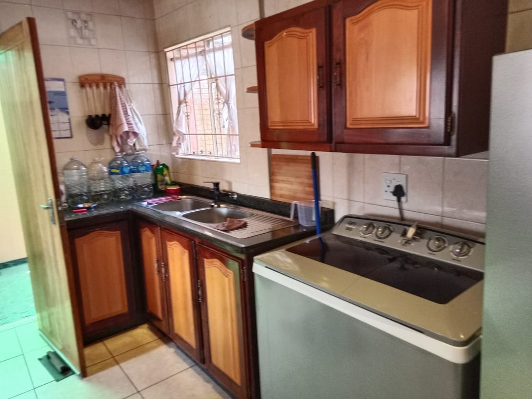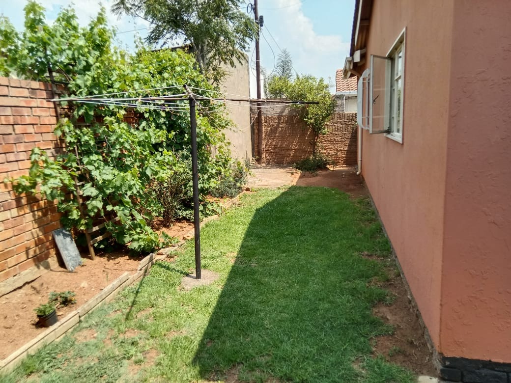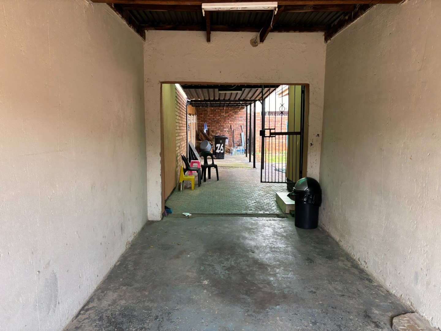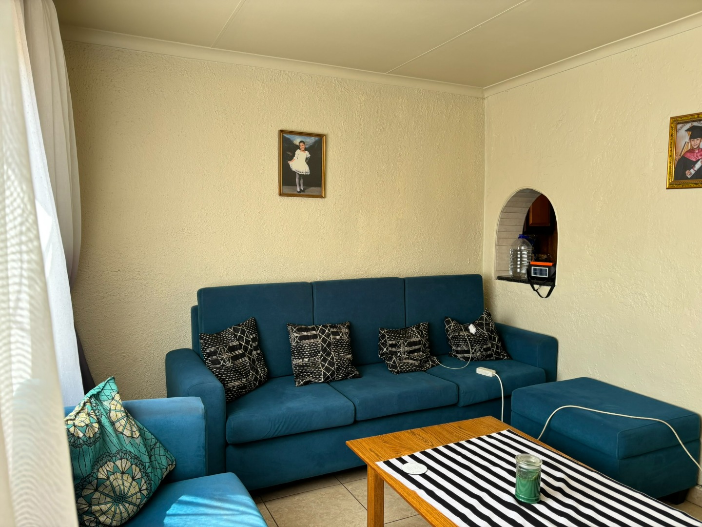 Discover this charming residential property located in Eldorado Park, Soweto, offering a blend of comfort and practical living. The home presents a robust brick exterior complemented by well-maintained perimeter walls featuring security spikes, ensuring peace of mind. A neatly landscaped front garden with raised brick planters enhances its kerb appeal, while a distinctive thatch-roofed section adds unique architectural character to the facade.