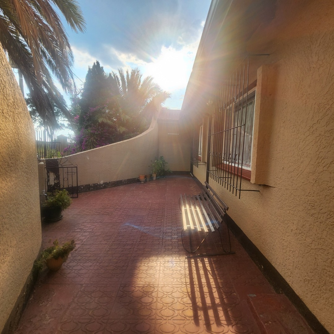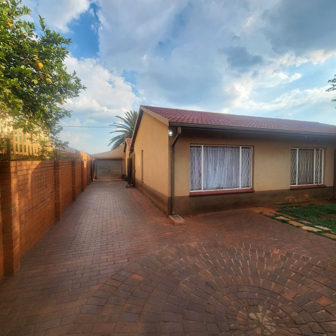 Discover this inviting four-bedroom residence nestled in the established community of Eldorado Park, Soweto. The property immediately impresses with its secure frontage, featuring a robust metal fence, concrete pillars, and secure gates, complemented by mature landscaping including prominent palm trees and paved pathways. Security is further enhanced by an alarm system and security bars on windows, ensuring peace of mind for residents. Step inside to a welcoming entrance hall that leads into the home's functional layout. The interior boasts two comfortable lounges and a dedicated dining room, providing ample space for both relaxation and entertaining. The property includes a well-appointed kitchen, designed for everyday convenience, alongside a practical utility area that offers additional space for appliances and storage. Accommodation comprises four generously sized bedrooms, including one with an en-suite bathroom, alongside an additional 1.5 bathrooms, catering to the needs of a family. The property also benefits from staff quarters, adding to its versatility and practical appeal. Outdoor living is a highlight, with an expansive 1000 sqm erf featuring a well-maintained garden with established trees, including a fruiting citrus tree, and extensive paving throughout. This pet-friendly environment is perfect for outdoor activities. A private, tiled patio area offers a sunny spot for relaxation. The property includes a double garage, providing secure parking and additional storage. Situated in the vibrant community of Eldorado Park, this home offers convenient access to local amenities and a well-established suburban lifestyle within Soweto. Key Features: * 4 Bedrooms, 2.5 Bathrooms (1 En-suite) * 2 Lounges, 1 Dining Room, 1 Kitchen * 1000 sqm Erf Size * Double Garage * Staff Quarters * Secure Perimeter with Alarm System * Paved Driveway and Garden * Pet-Friendly Environment