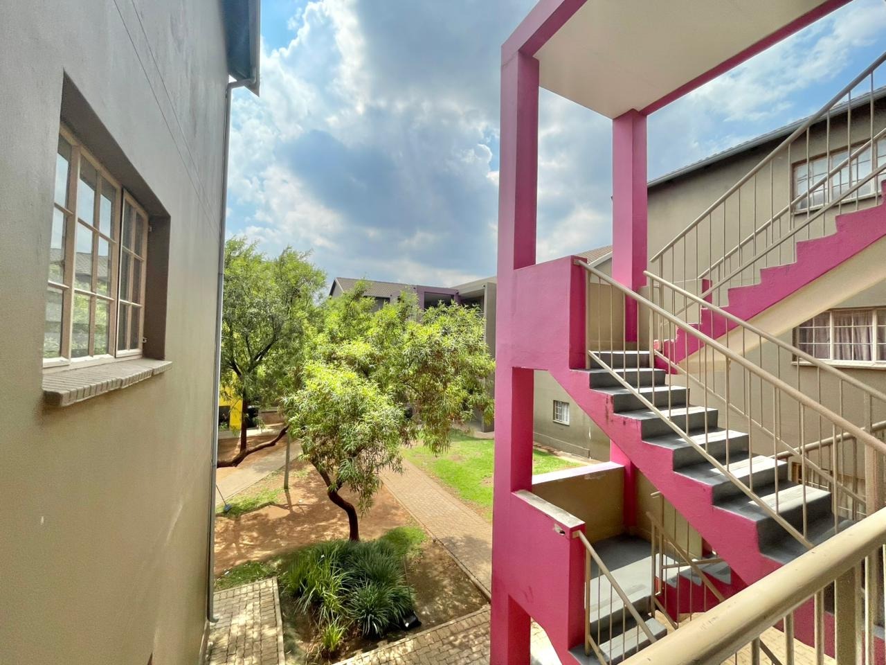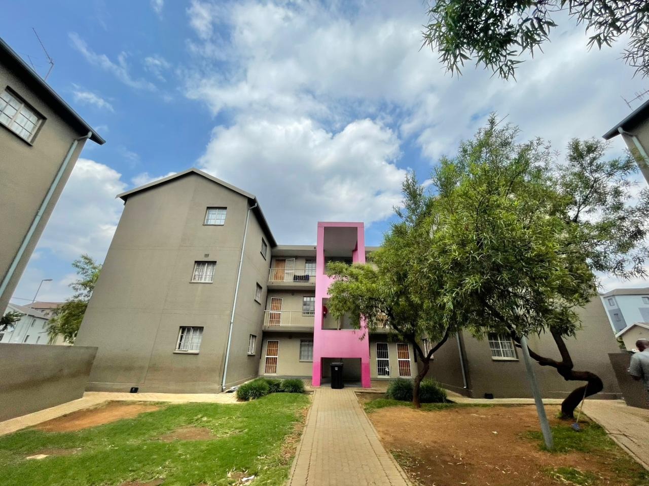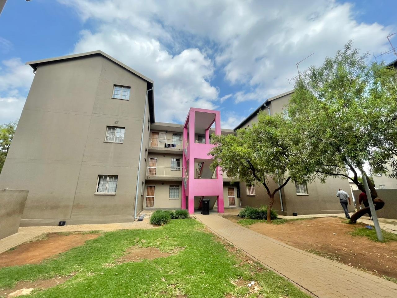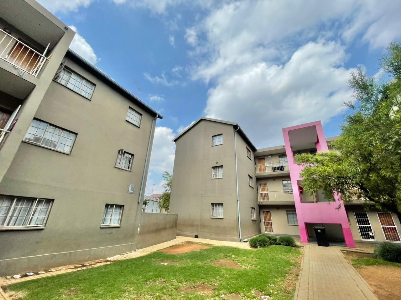 Discover this compact and functional 2-bedroom apartment, ideally situated within a secure complex in the suburban area of Jabulani, Soweto. The property features a modern grey/beige exterior complemented by a distinctive pink central stairwell, adding a unique touch to the building's aesthetic. Paved walkways and mature trees enhance the communal green spaces, offering a pleasant environment for residents. Inside, the 41 sqm apartment boasts an open-plan layout with durable tiled flooring and neutral-painted walls, providing a versatile canvas for personal customisation. The functional kitchen is equipped with a built-in hob, oven, and a double sink, benefiting from natural light through its window. This space seamlessly connects to the lounge, which can also serve as a family TV room, ensuring a practical flow for daily living. The apartment offers two comfortable bedrooms and a well-appointed bathroom, all maintained to be clean and move-in ready. Security is a key feature of this complex, which includes 24-hour security, a security post, access gates, electric fencing, burglar bars, and security gates, ensuring peace of mind. Additional amenities include a dedicated parking bay, a communal garden, and paved areas. Jabulani, located in Soweto, is a vibrant suburban neighbourhood offering convenient access to local amenities and transport links. Key Features: * 2 Bedrooms, 1 Bathroom * 41 sqm Floor Size * Open-plan Lounge and Kitchen * Tiled Flooring Throughout * Secure Complex with 24-Hour Security * Dedicated Parking Bay * Communal Garden and Paving * Wheelchair Friendly Access * Laundry and Storage Facilities